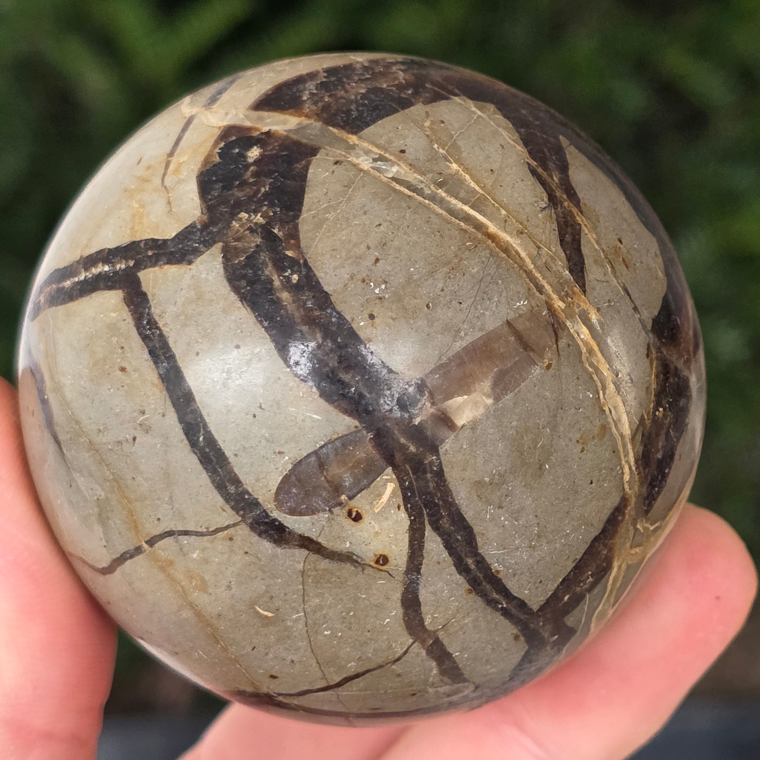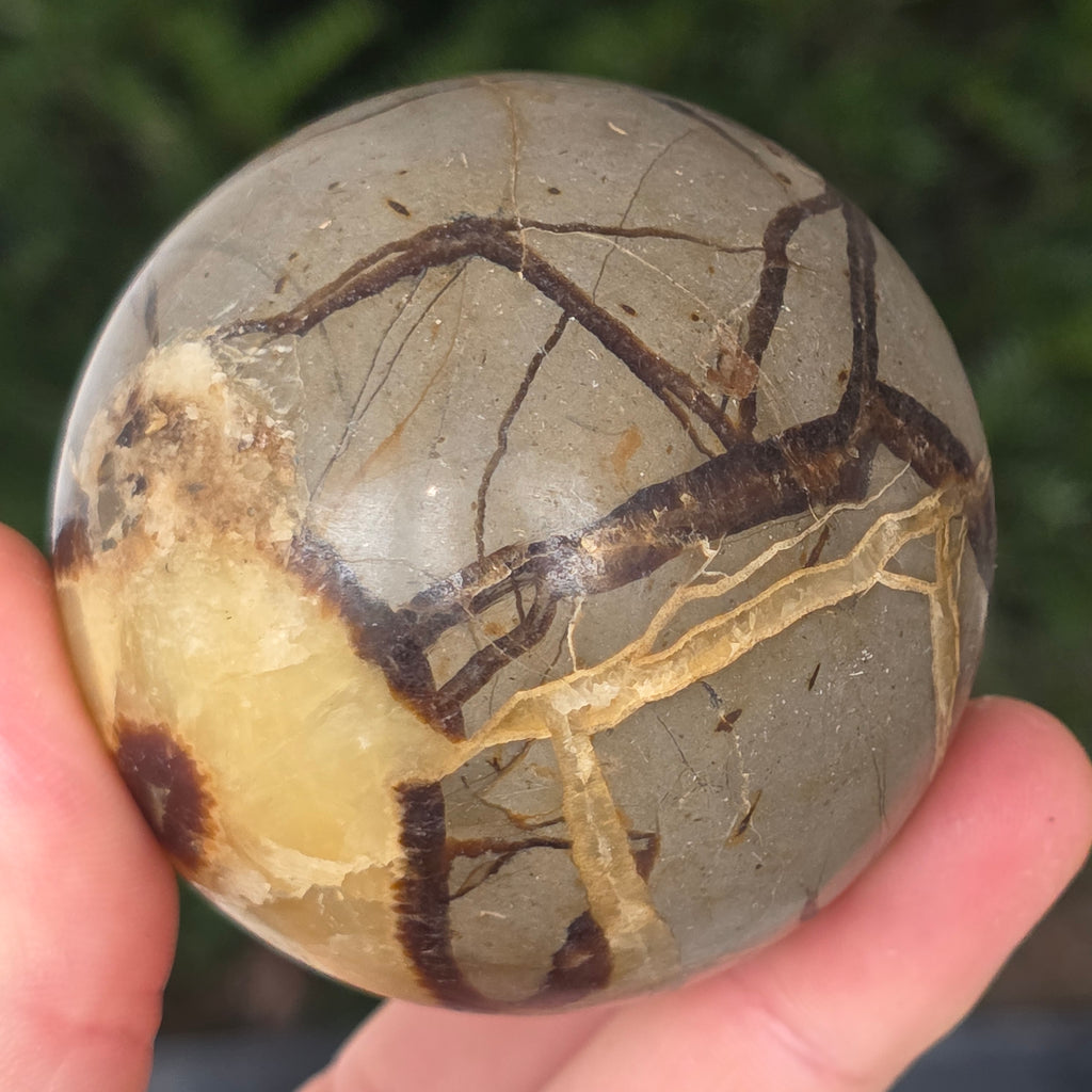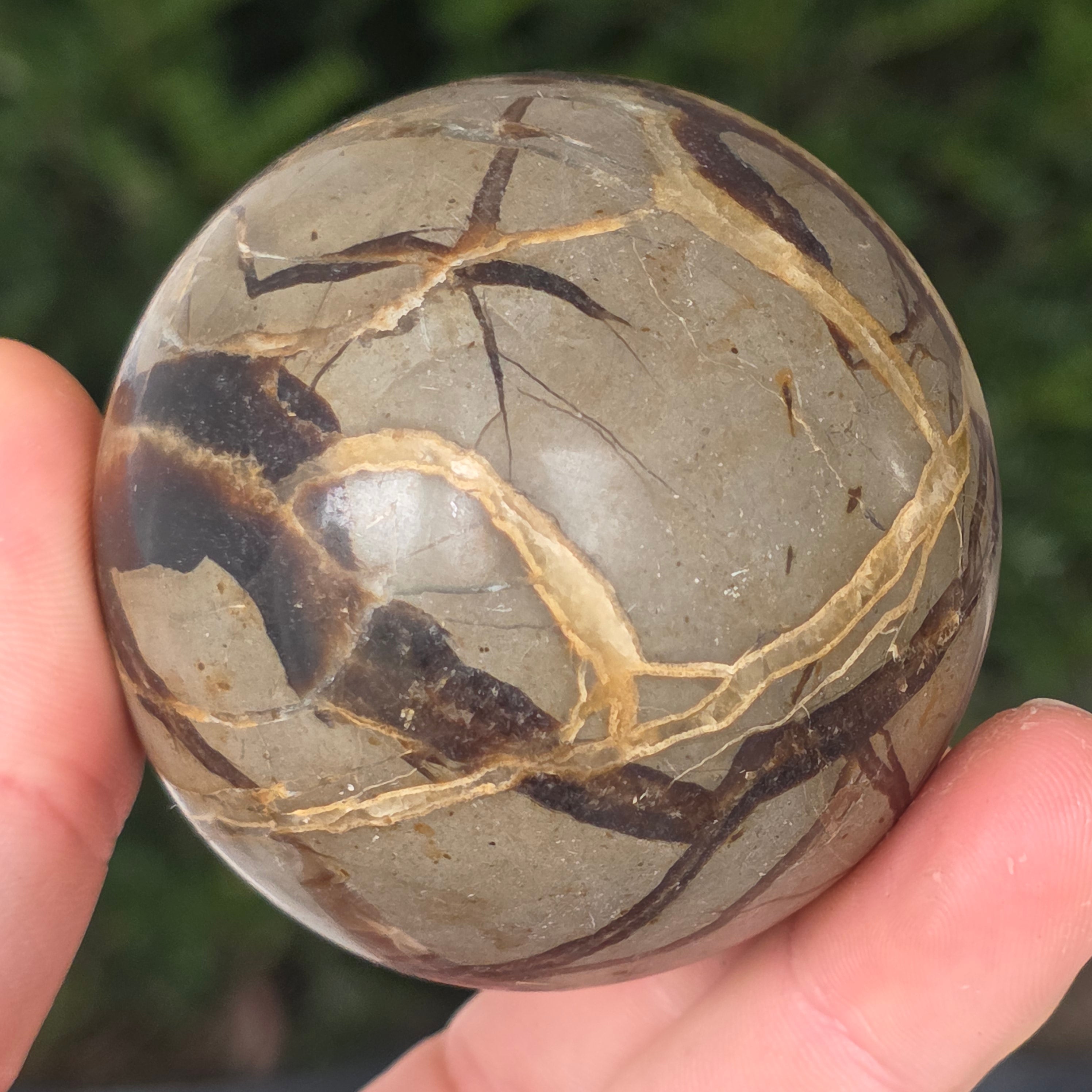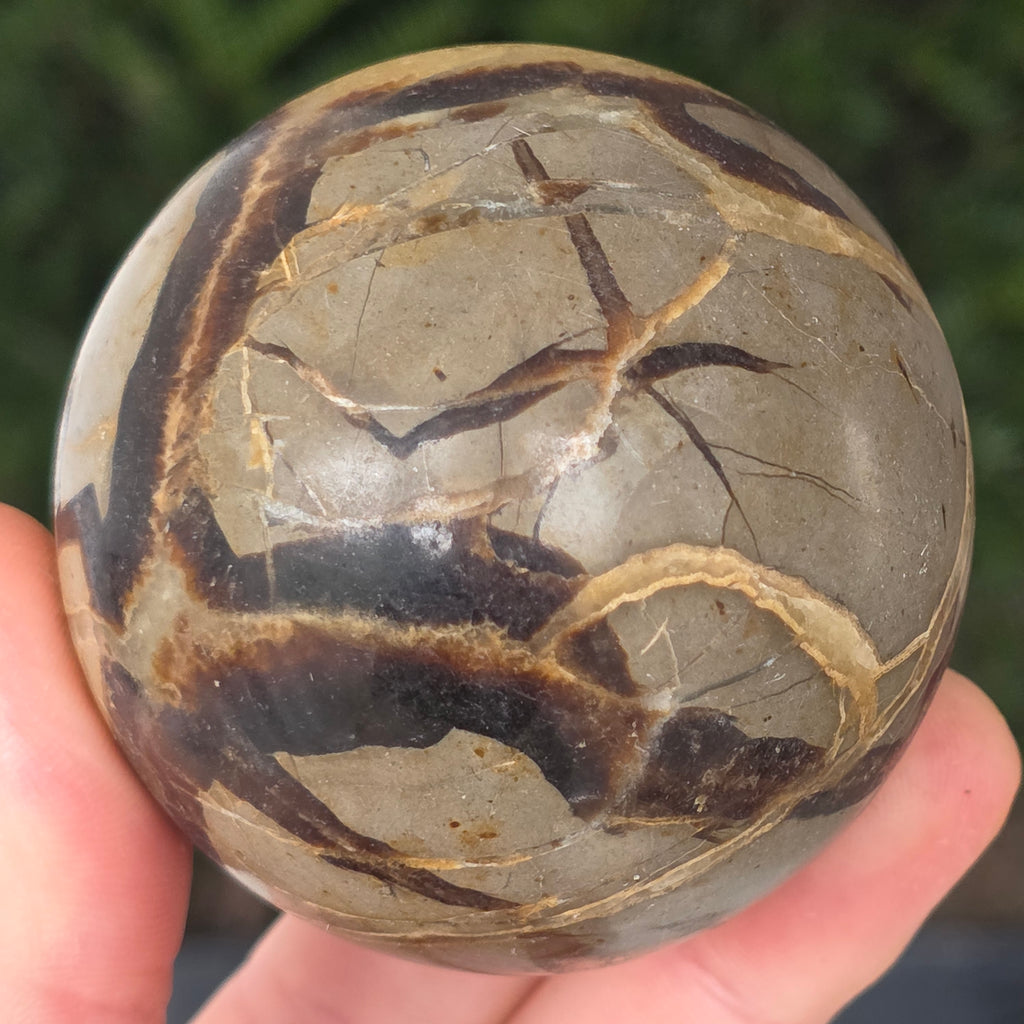 Septaria składa się z kalcytu, limonitu, gipsu i barytu, minerałów, które tworzą niepowtarzalną grę w tym kamieniu i nadają mu wyjątkowy wygląd.