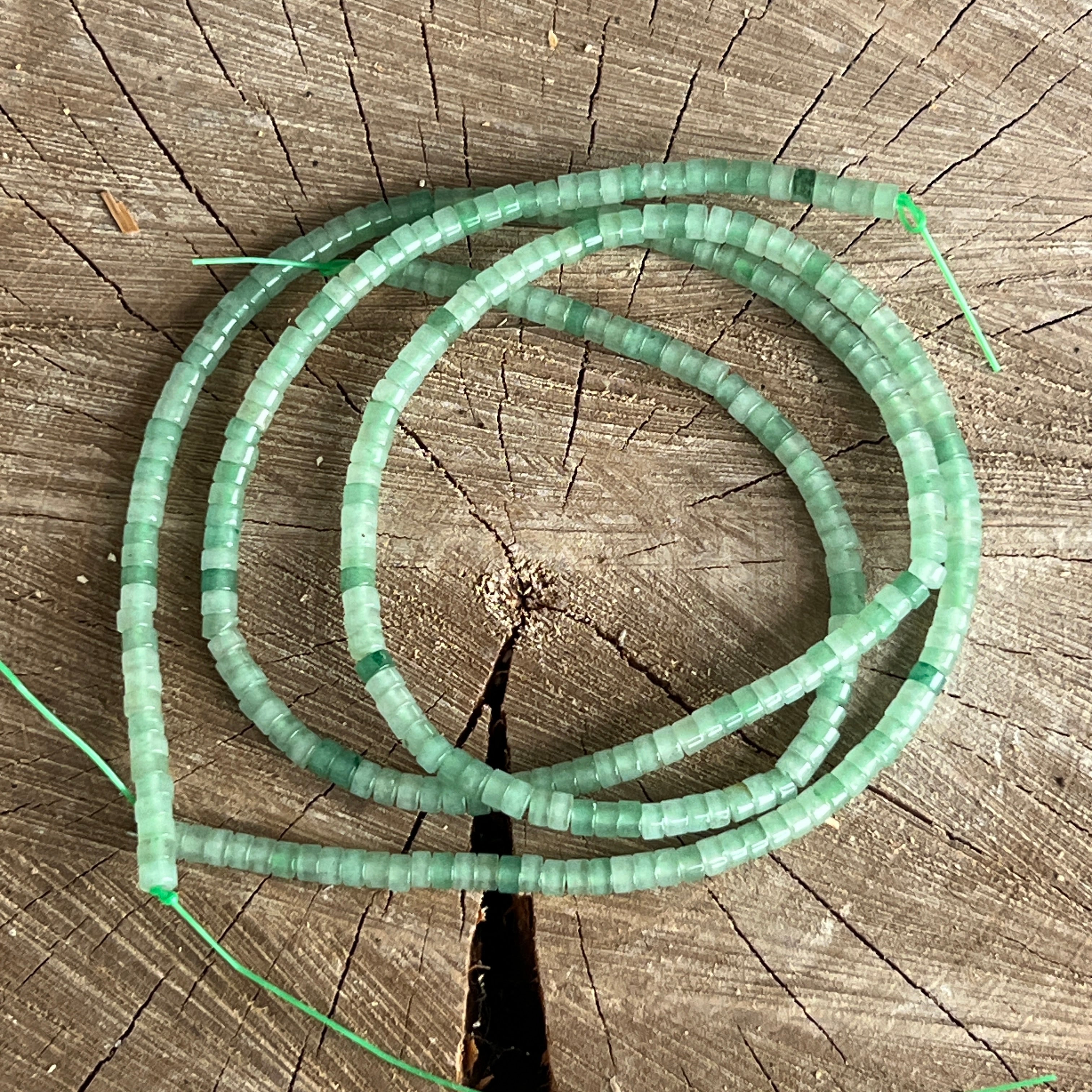 Șirag de AVENTURIN VERDE, alcătuit din discuri naturale, perfect pentru coliere, brățări sau alte bijuterii handmade.