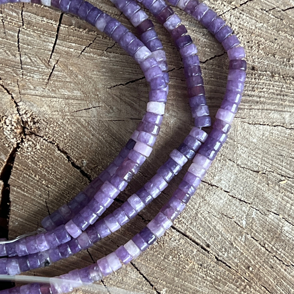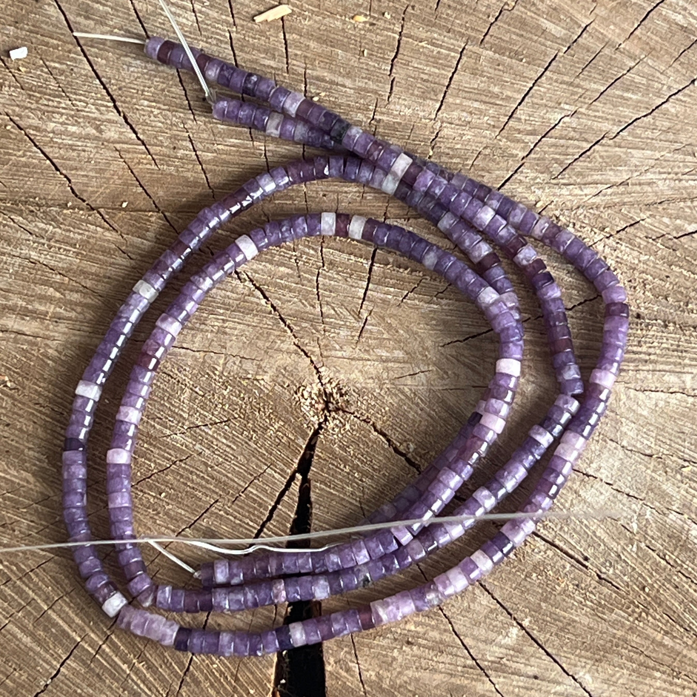 Șirag de LEPIDOLIT, alcătuit din discuri naturale, perfect pentru coliere, brățări sau alte bijuterii handmade.