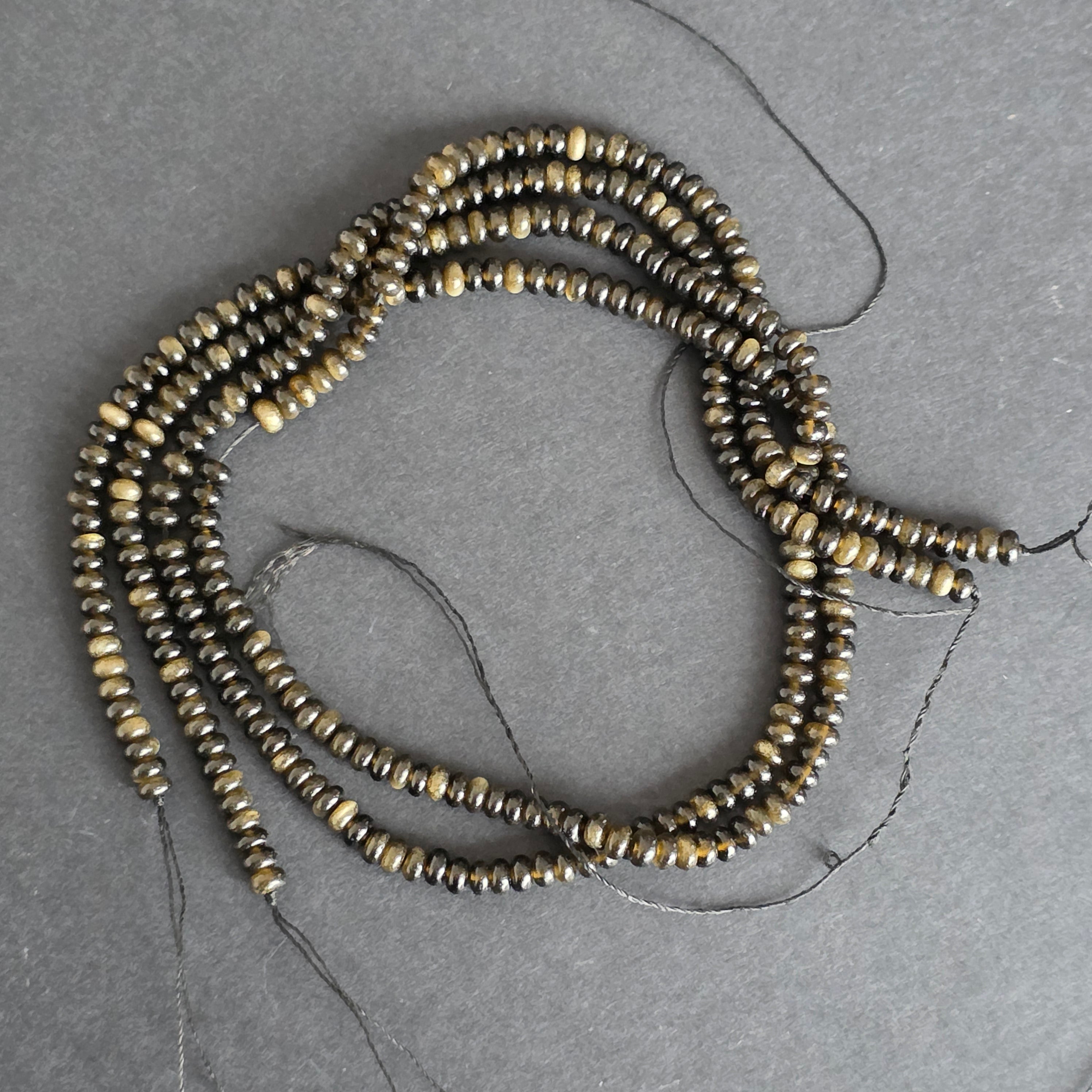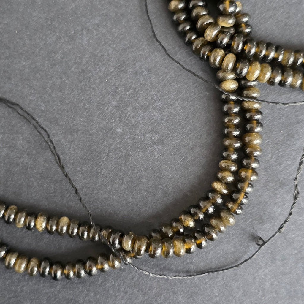 Sirag de obsidian AURIU, alcătuit din discuri naturale, perfect pentru coliere, brățări sau alte bijuterii handmade.