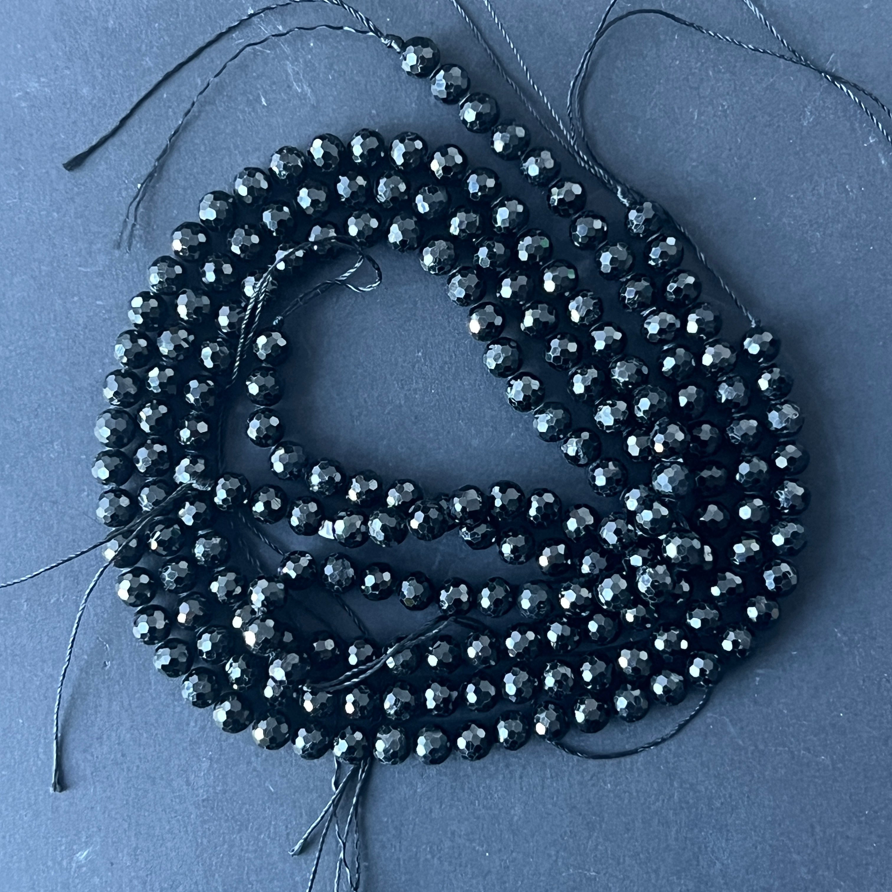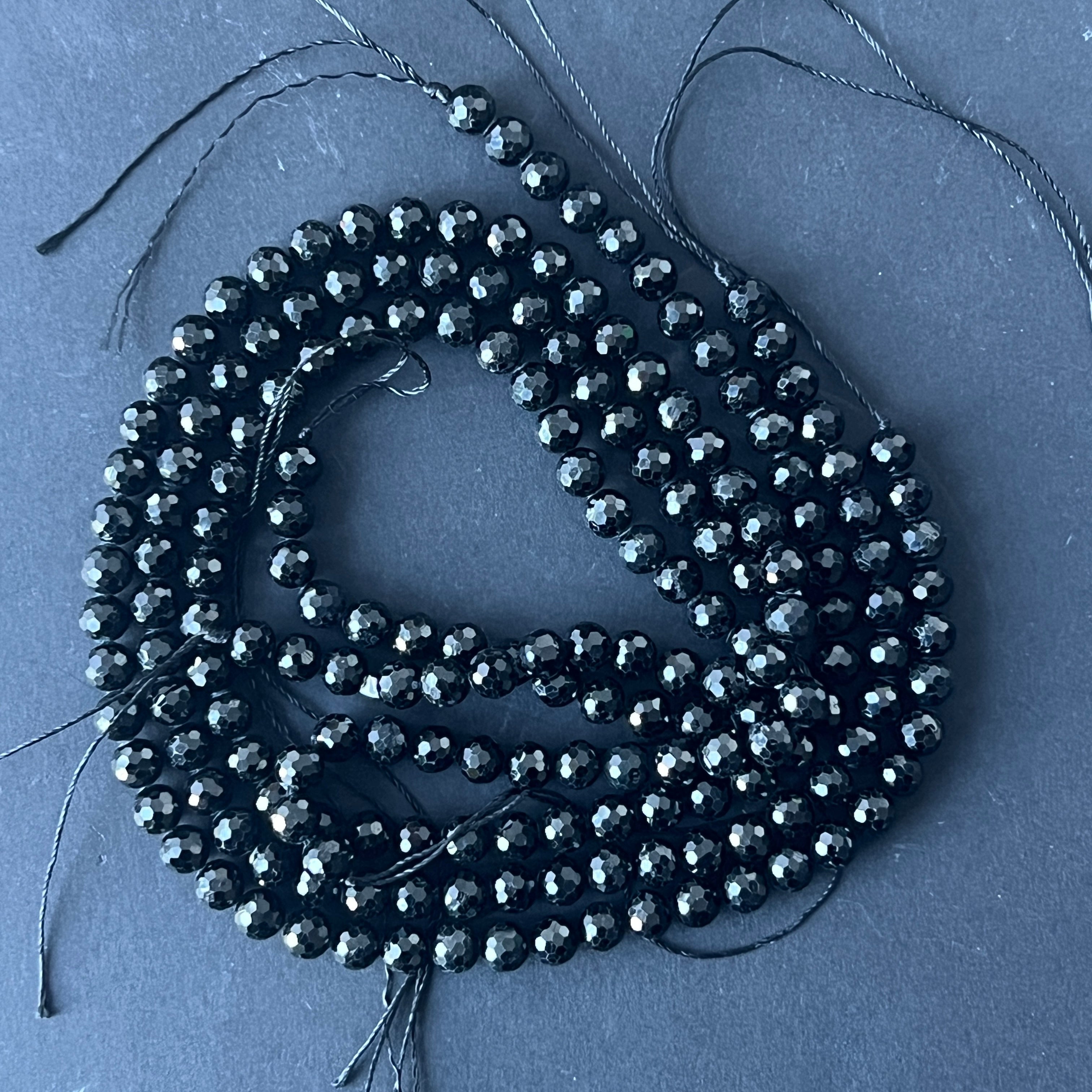 Opis - Sirag margele pietre semipretioase sfere fatetate turmalina neagra