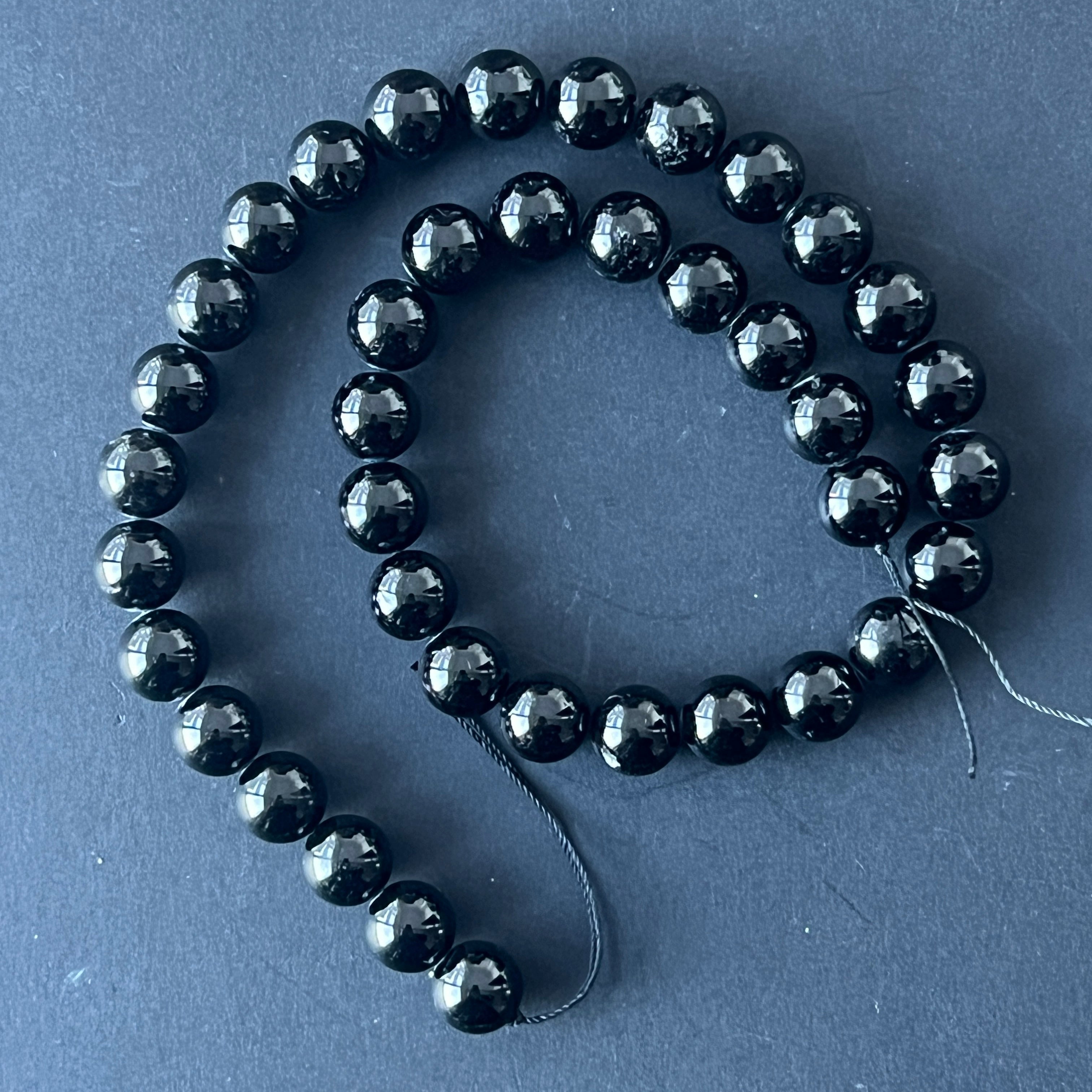 Șiragul din Turmalină Neagră naturală este o alegere rafinată pentru cei care creează bijuterii cu energie protectoare și eleganță discretă. Fiecare sferă de 10 mm este șlefuită manual pentru a dezvălui luciul profund al pietrei, o nuanță de negru care pare să absoarbă lumina și să reflecte stabilitate.