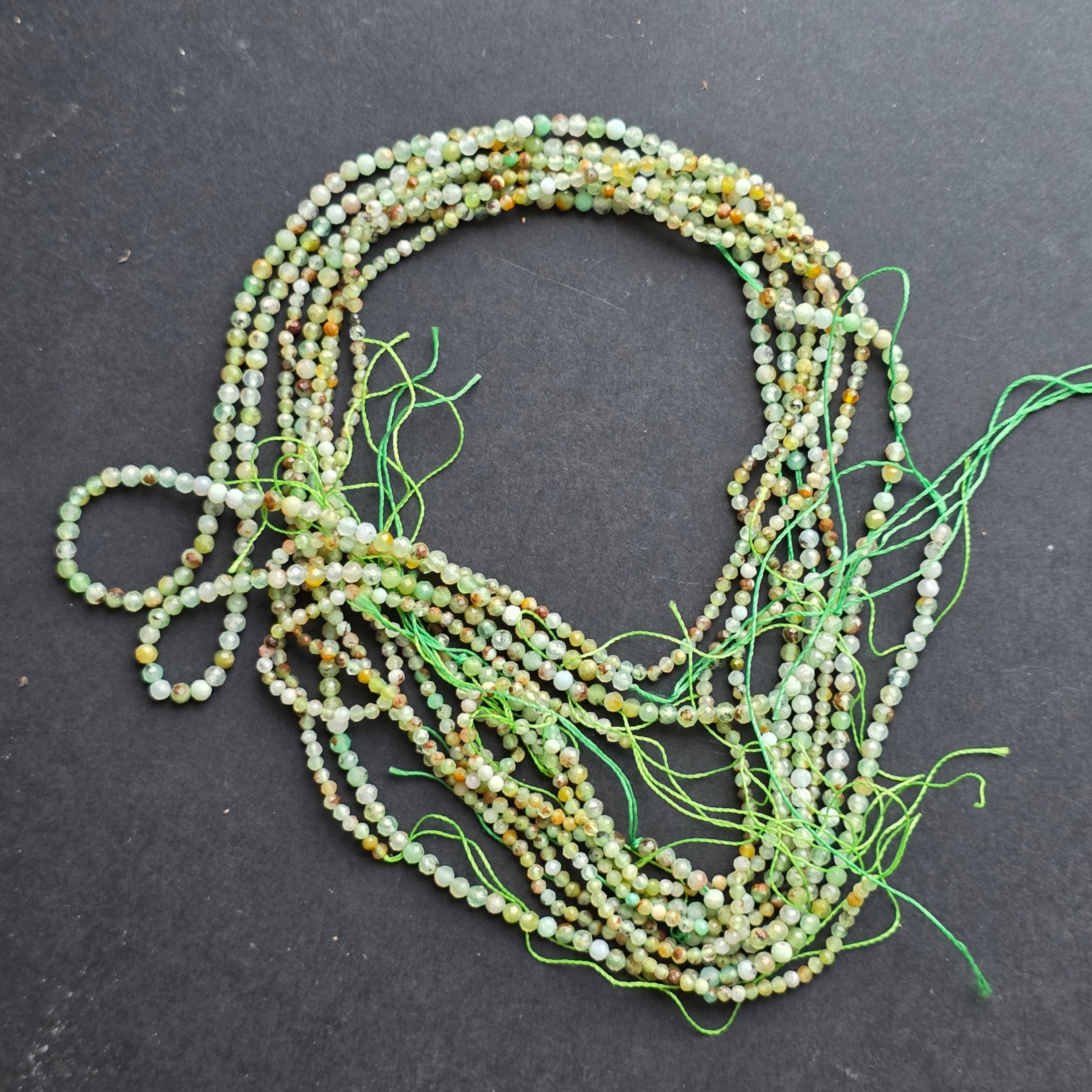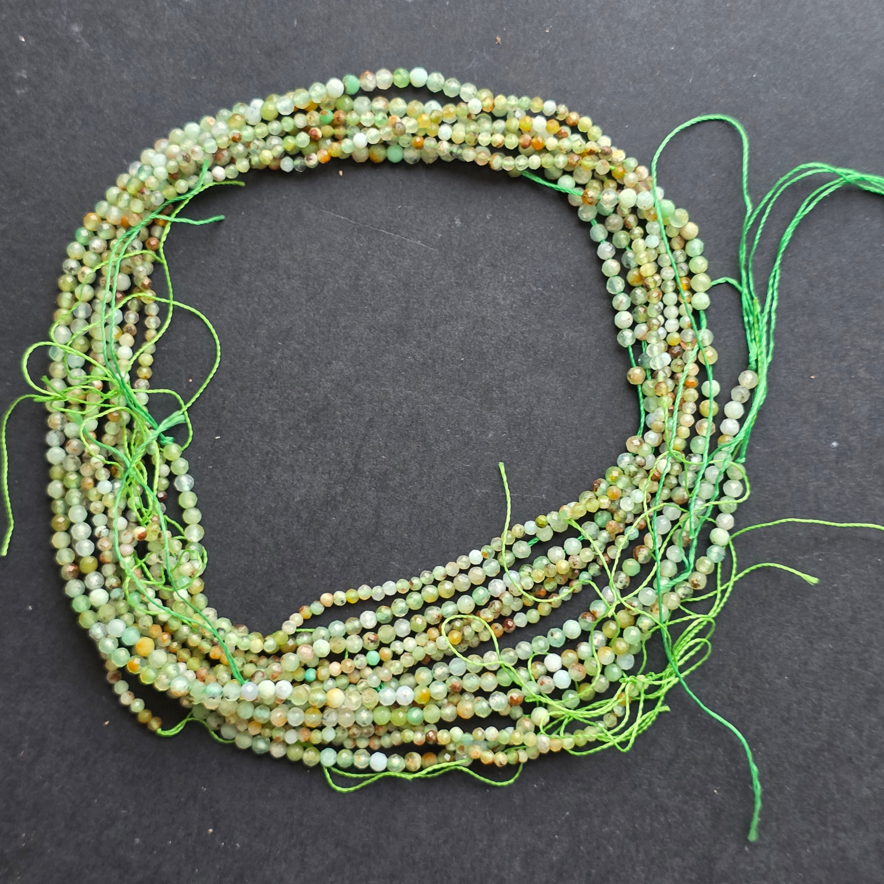 Sznurek chryzoprazowy, złożony z naturalne fasetowane koraliki kuliste, idealne do naszyjników, bransoletek lub innej ręcznie robionej biżuterii.