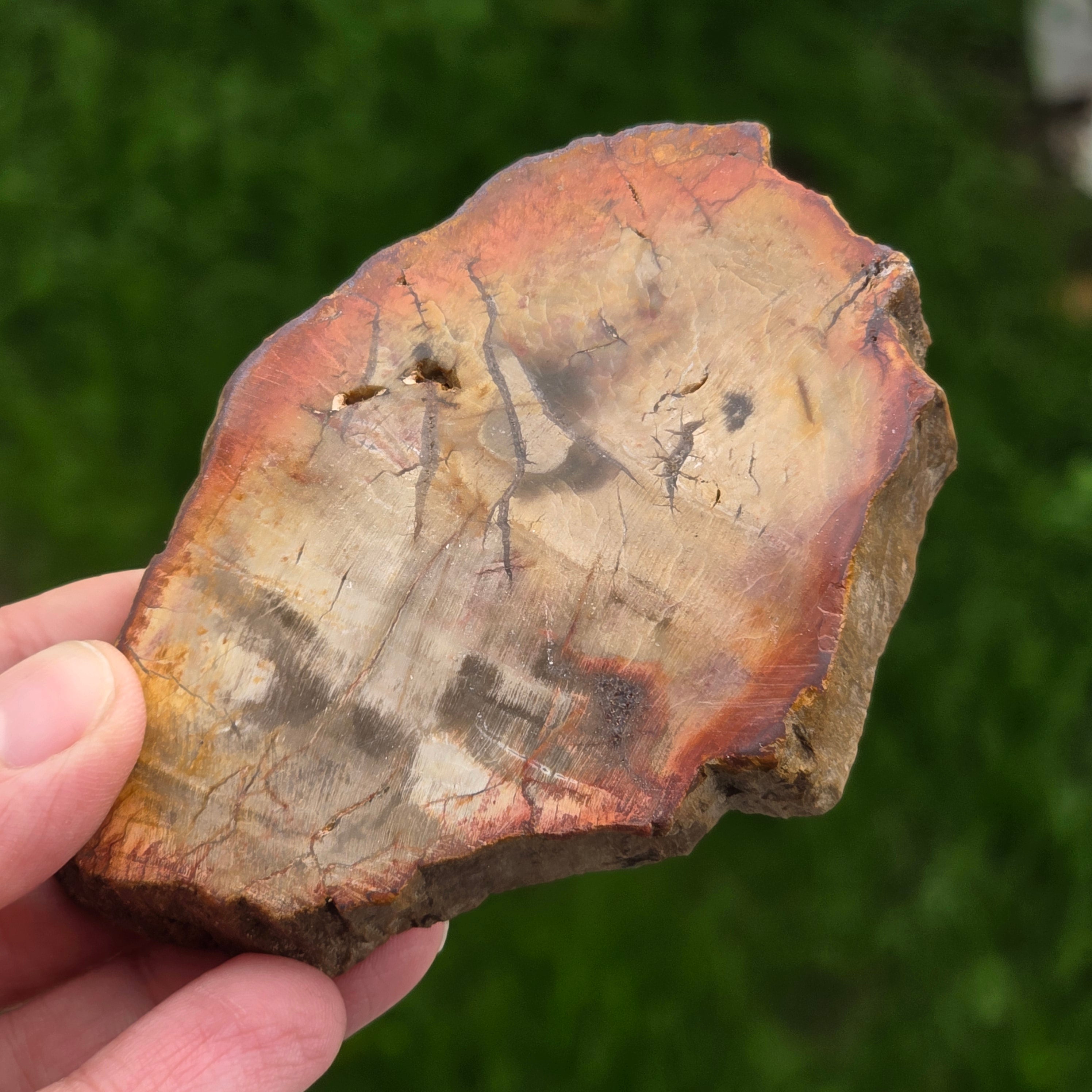 Z biegiem czasu skamieniałe kolory drewna rozwijają się z powodu zanieczyszczeń mineralnych: żelazo dodaje odcieni czerwonawych lub pomarańczowych, mangan nadaje odcienie czerni i fioletu, a miedź może wprowadzać zielonkawe lub niebieskawe akcenty. Choć na pierwszy rzut oka wygląda jak drewno, kamień ten jest całkowicie zmineralizowany, posiadający Twardość w skali Mohsa około 6,5 – 7, podobny do kwarcu.