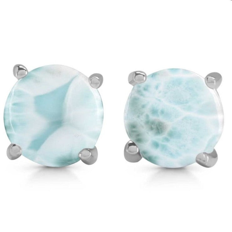 Opis - Srebrne kolczyki sztyfty larimar 6 mm Okrągłe