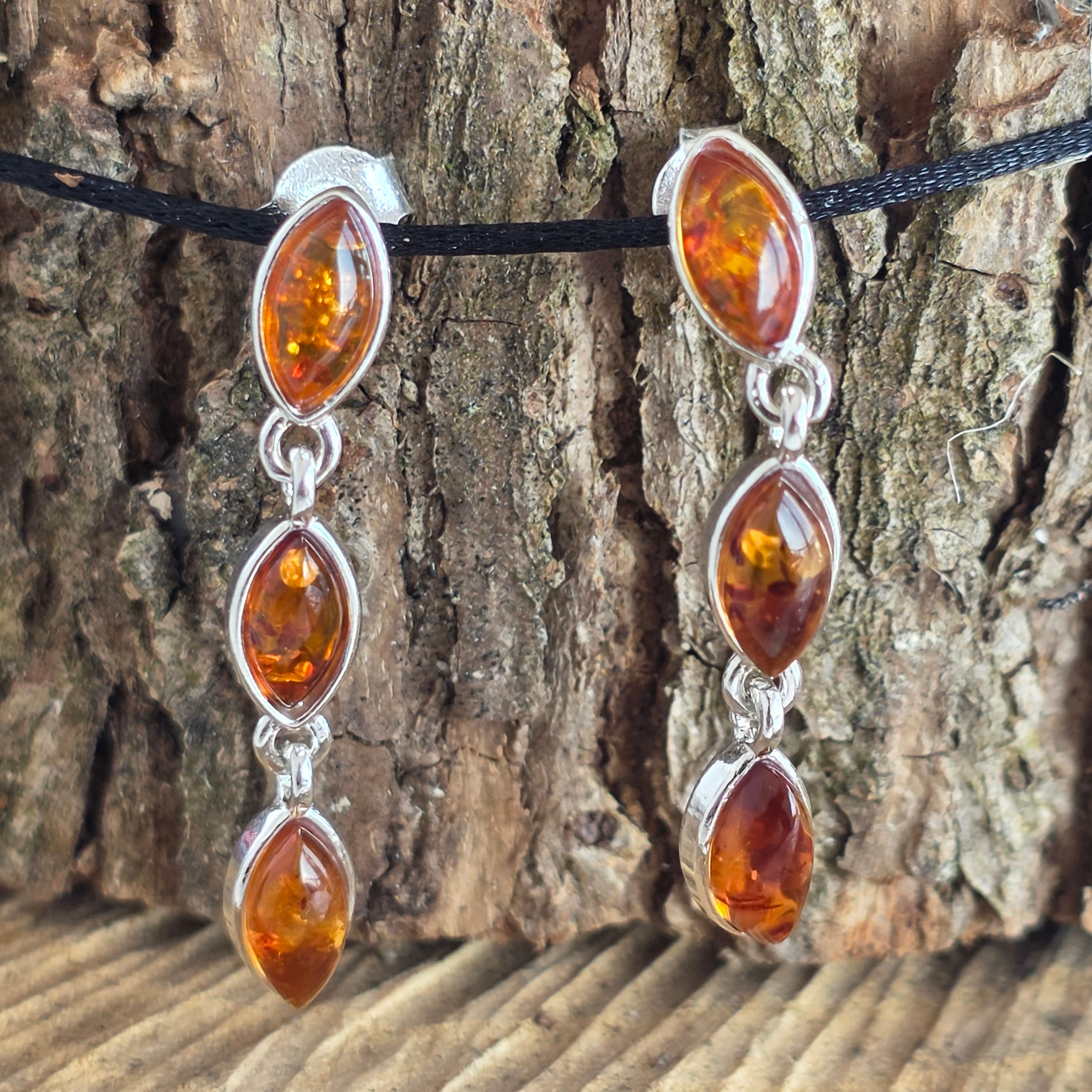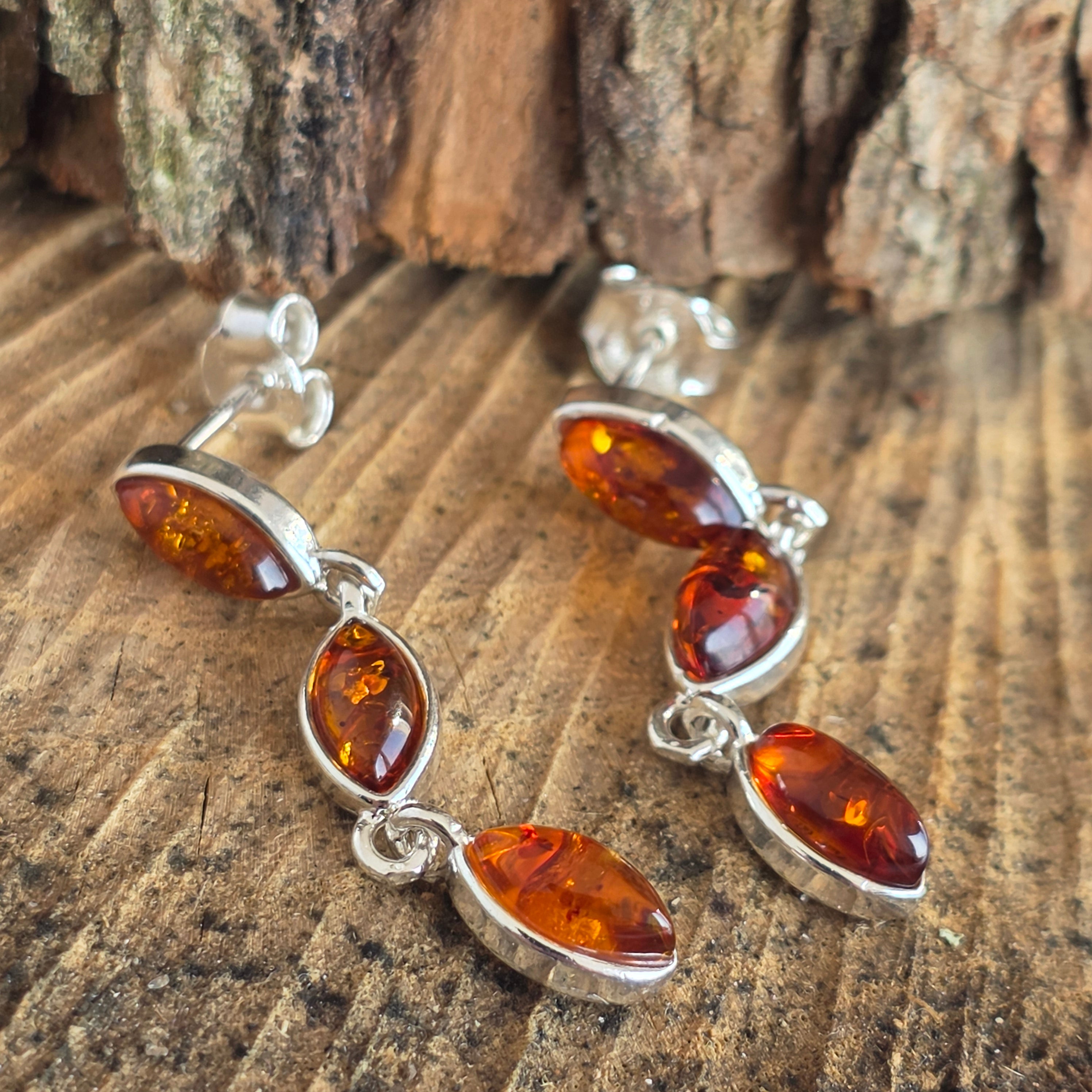 Srebrne kolczyki z bursztynem Amber13