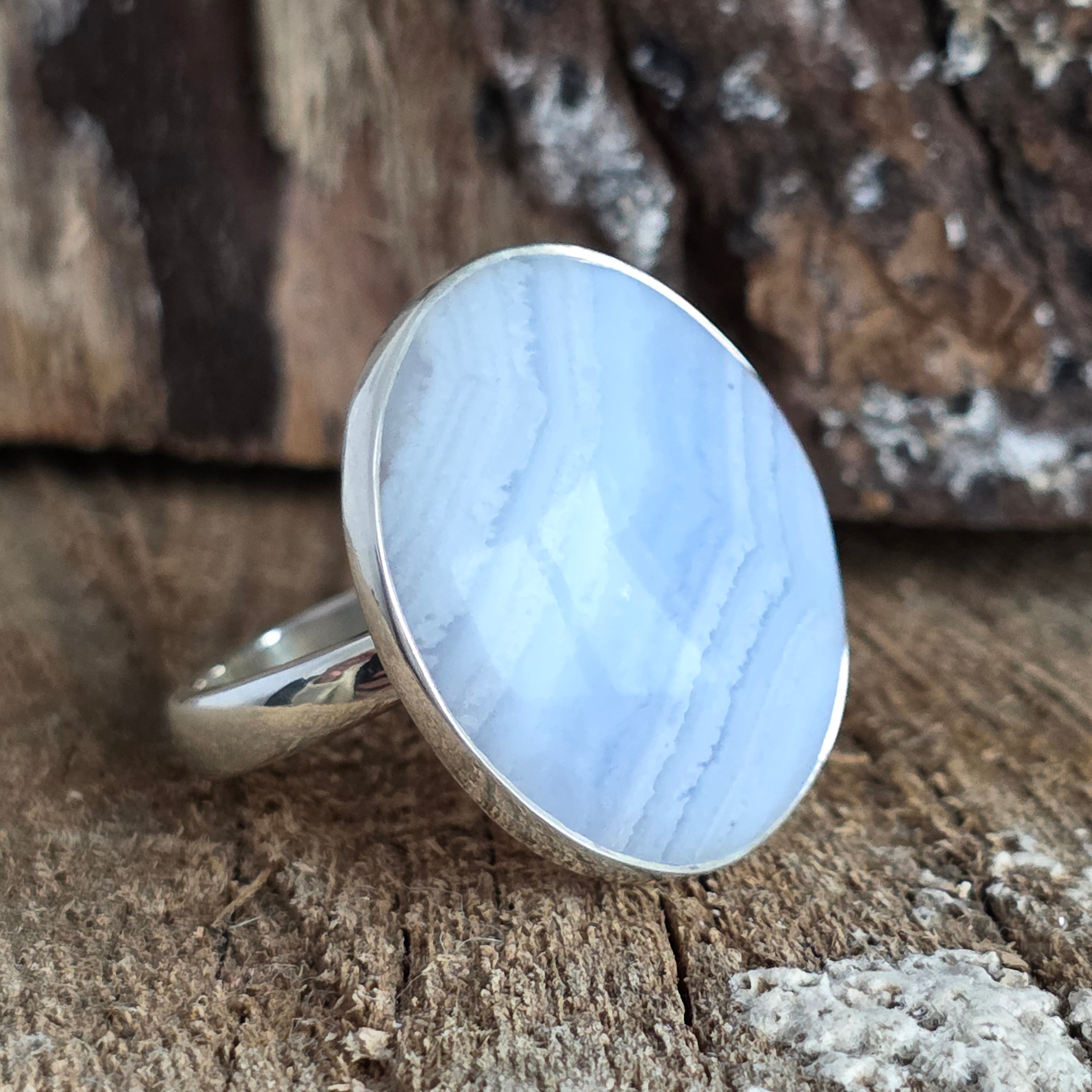 Recenzje - Srebrny, koronkowy pierścionek z niebieskim chalcedonem | Model 2