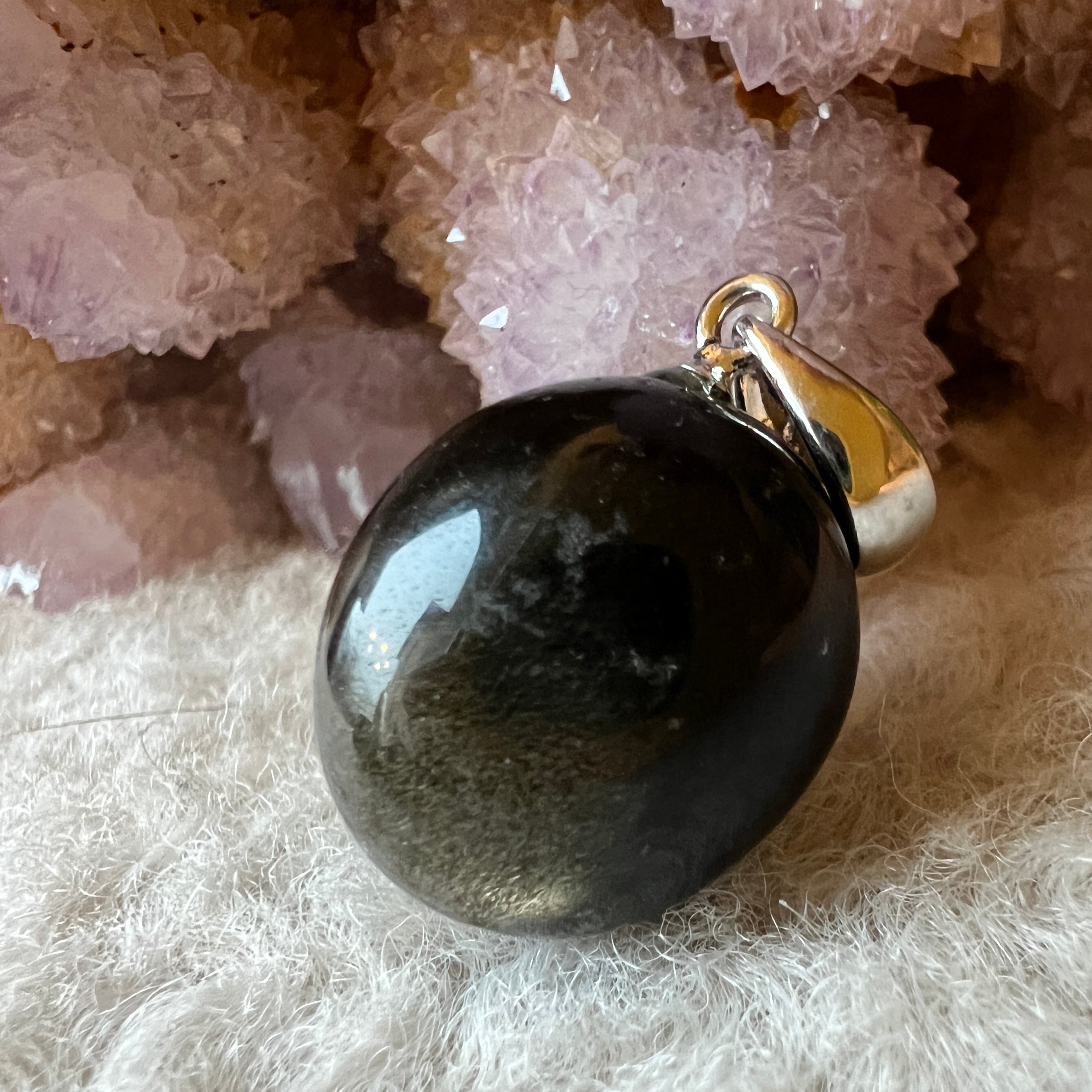 Opis - Srebrny obsydianowy wisiorek bębnowy