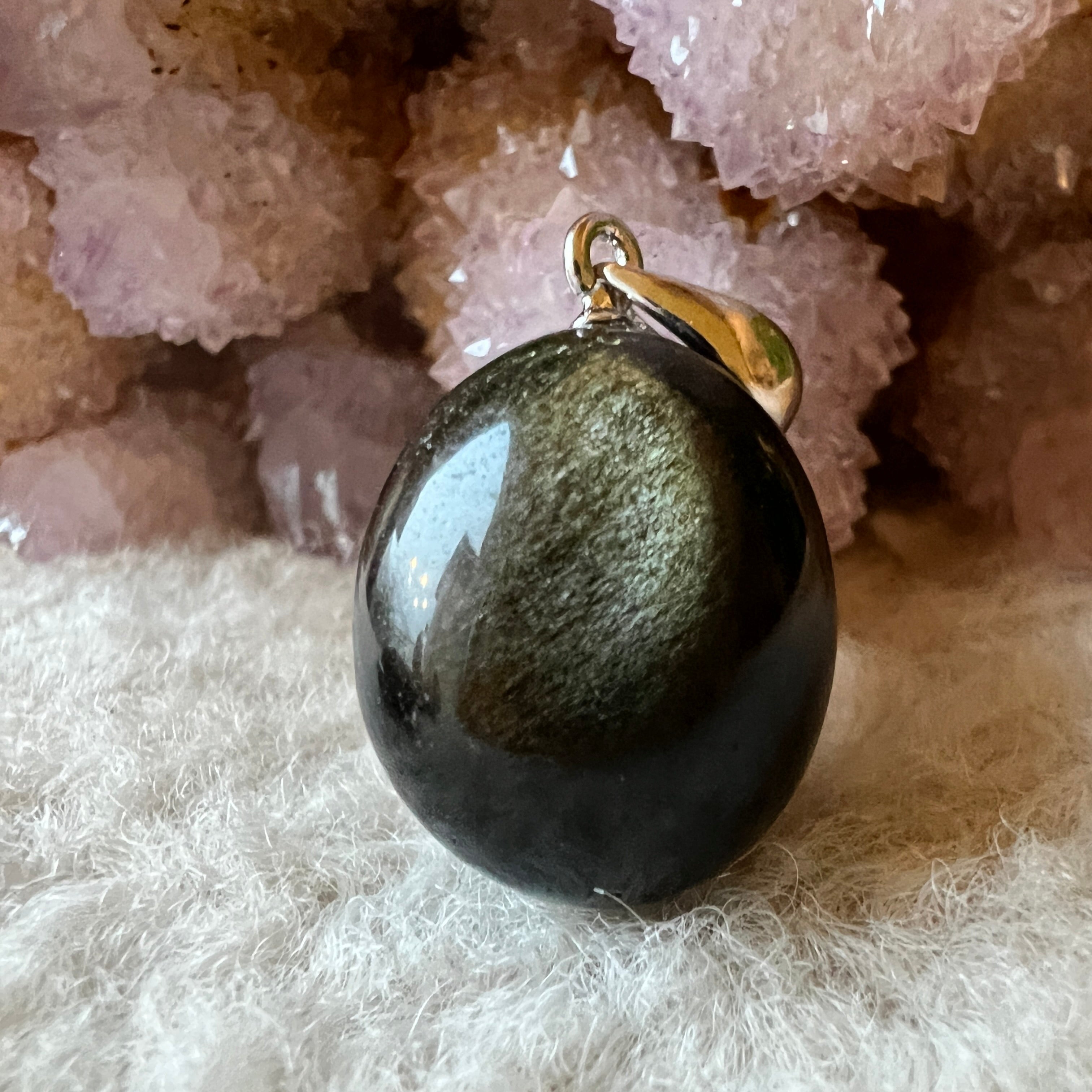 Metafizycznie srebrny obsydian jest związany z czakrą korony (czakrą 7), która reprezentuje duchowe połączenie i wyższą mądrość. Uważa się, że srebrny obsydian może wspierać jasność umysłu, introspekcję i uwalnianie negatywnych energii.