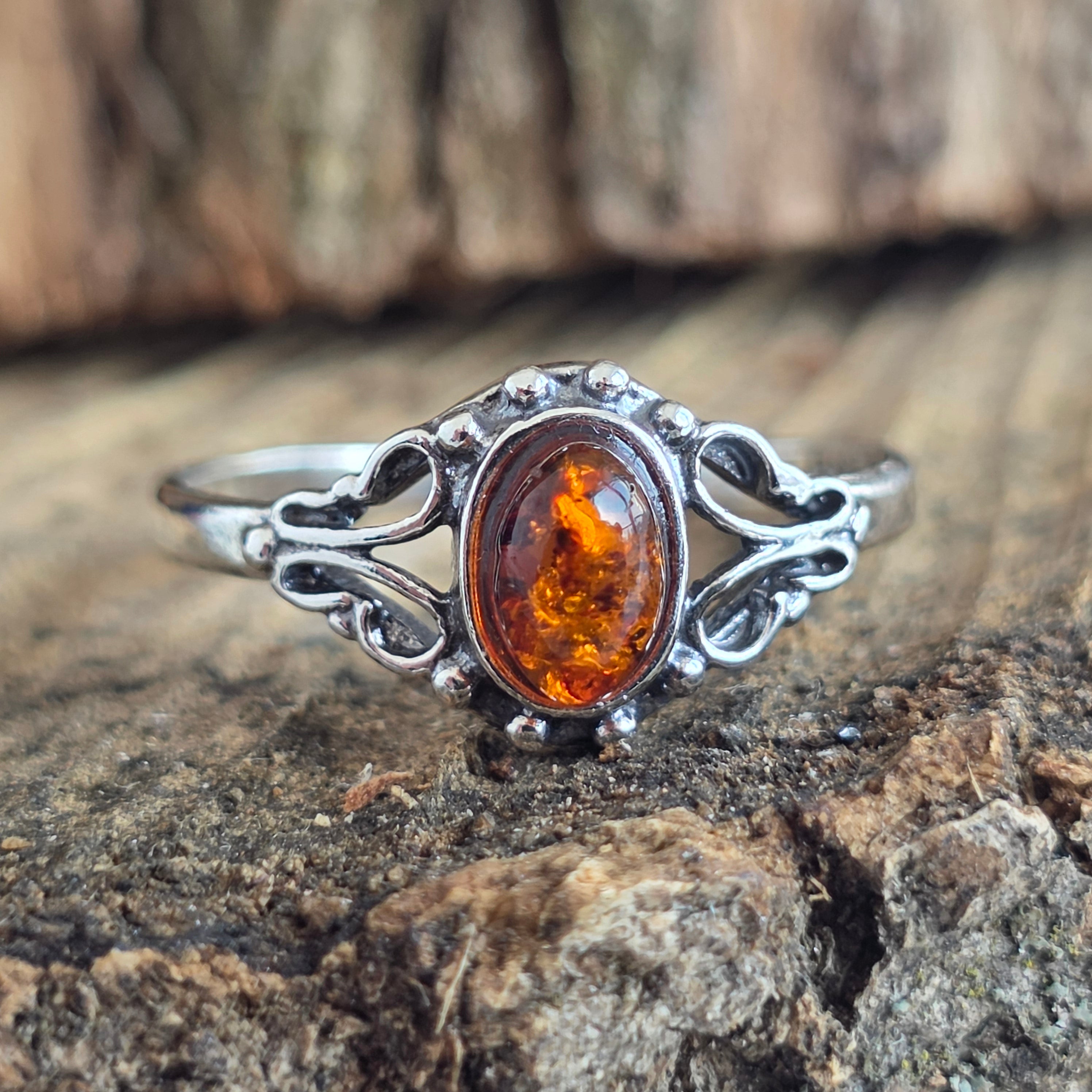 Srebrny pierścień z bursztynem 14 bursztyn