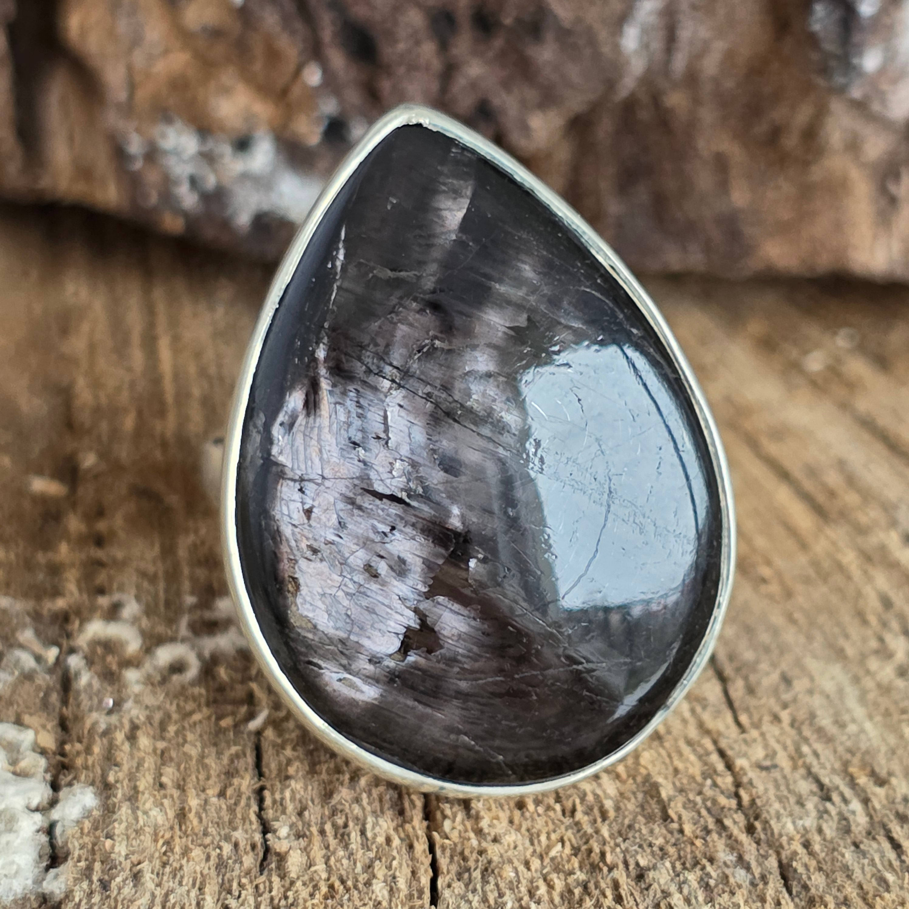 Wybierz ten pierścionek z naturalnym hiperstenem, aby nosić ze sobą symbol klarowności i siły wewnętrznej – unikalną biżuterię stworzoną przez naturę i wykończoną w srebrze.