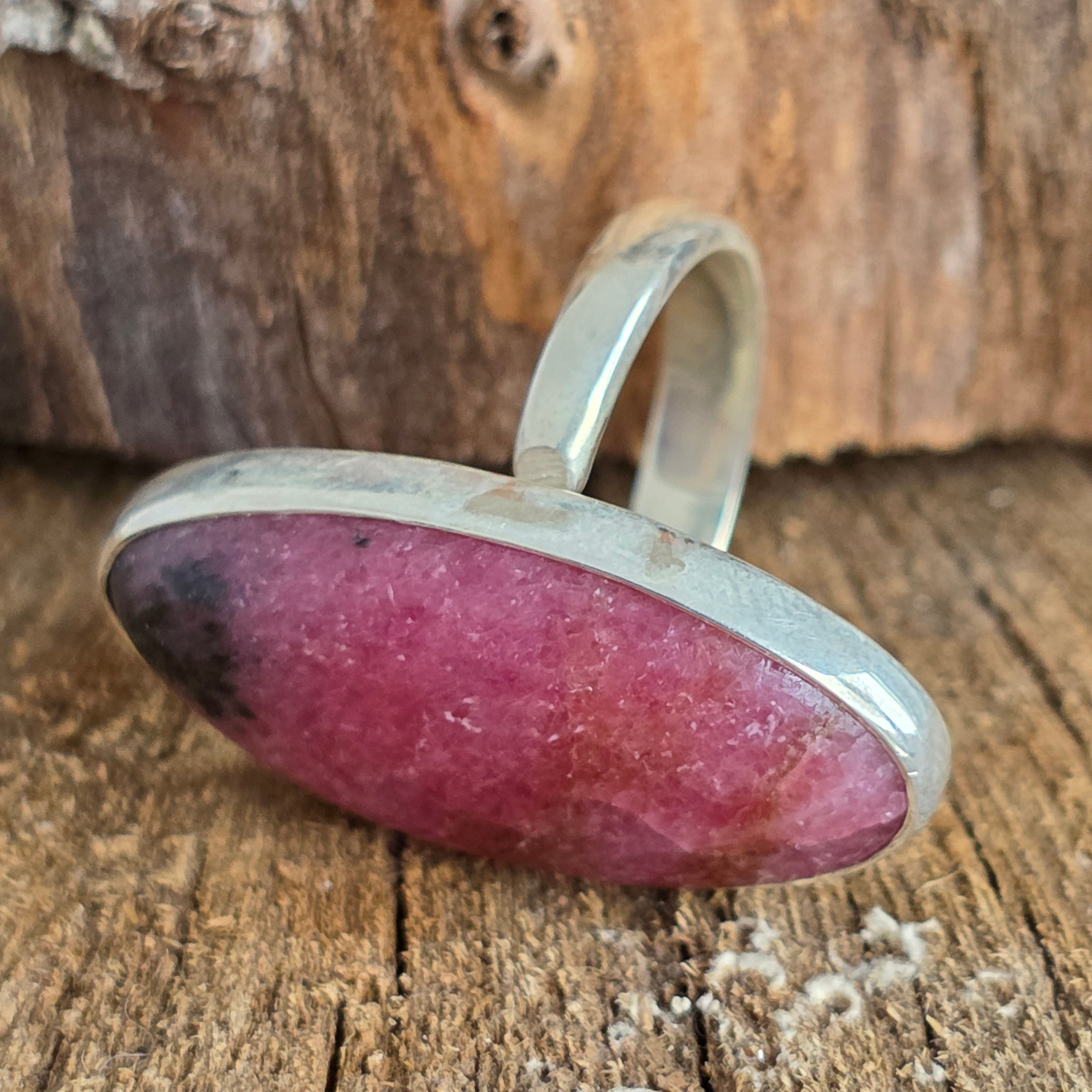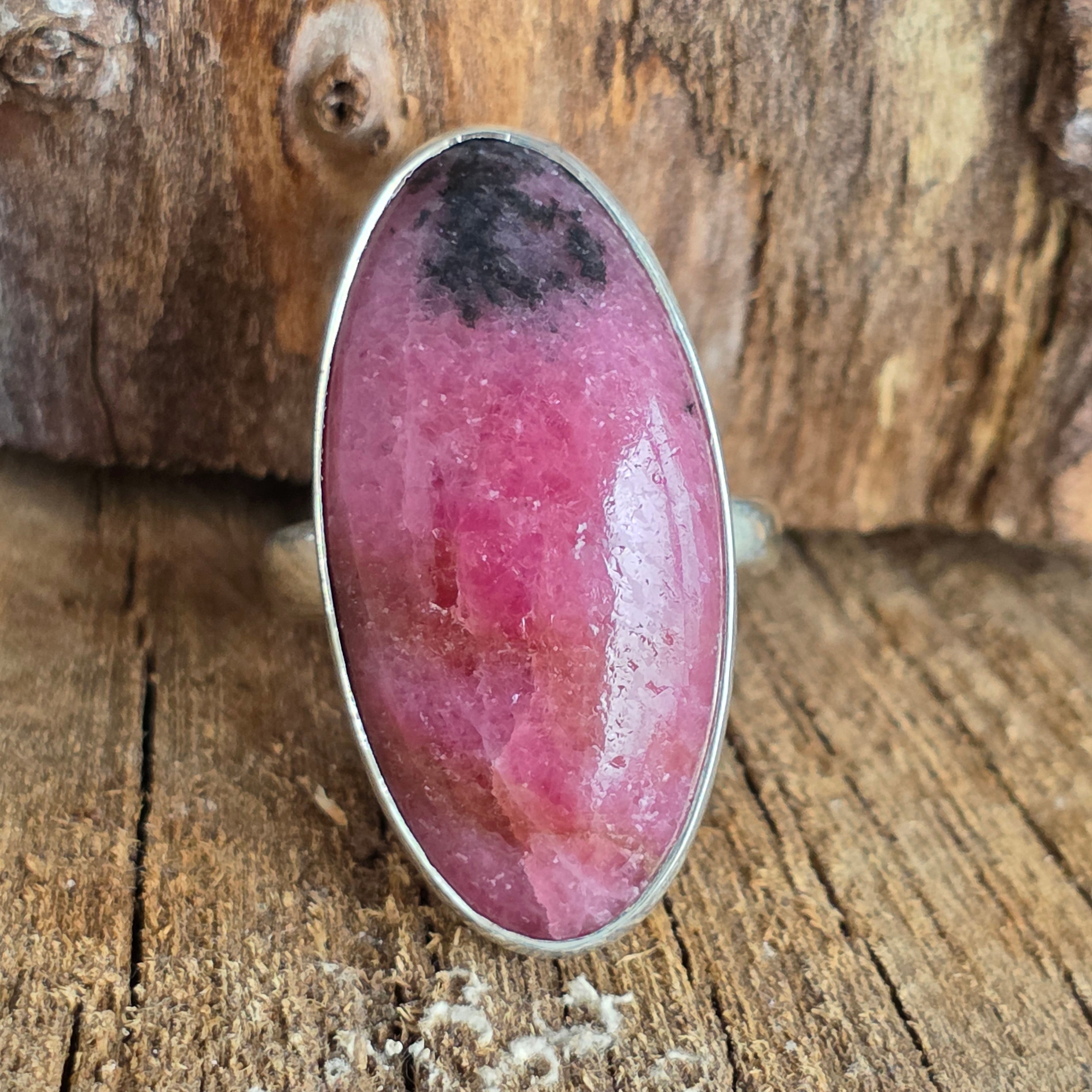 Noś ten pierścionek z rodonitem, aby dodać swojemu życiu elegancji i harmonii - wyjątkowa biżuteria stworzona dla dusz kochających naturalne piękno i uzdrawiającą energię kryształów.