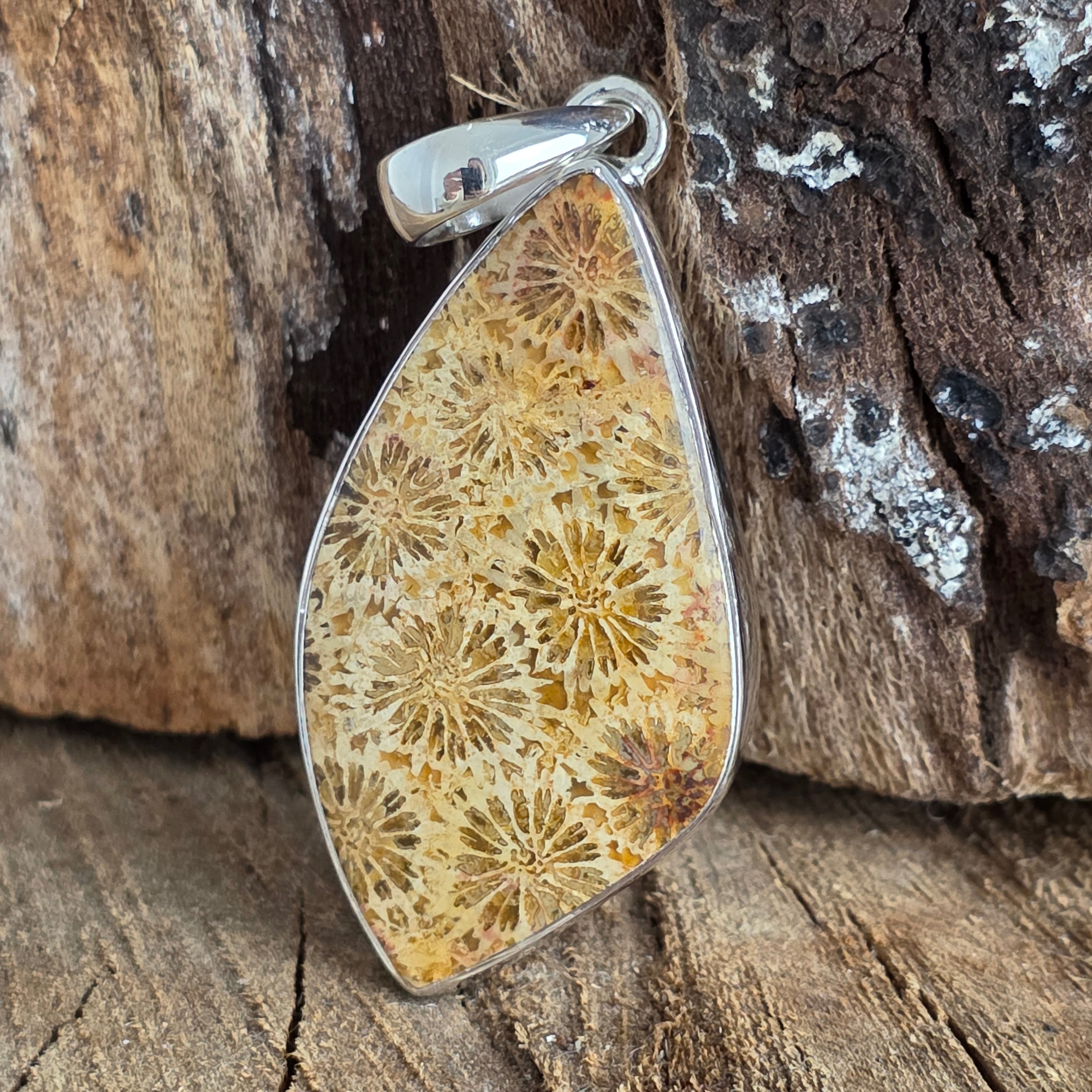 Srebrny skamieniał zawieszka koralowa | Model 1