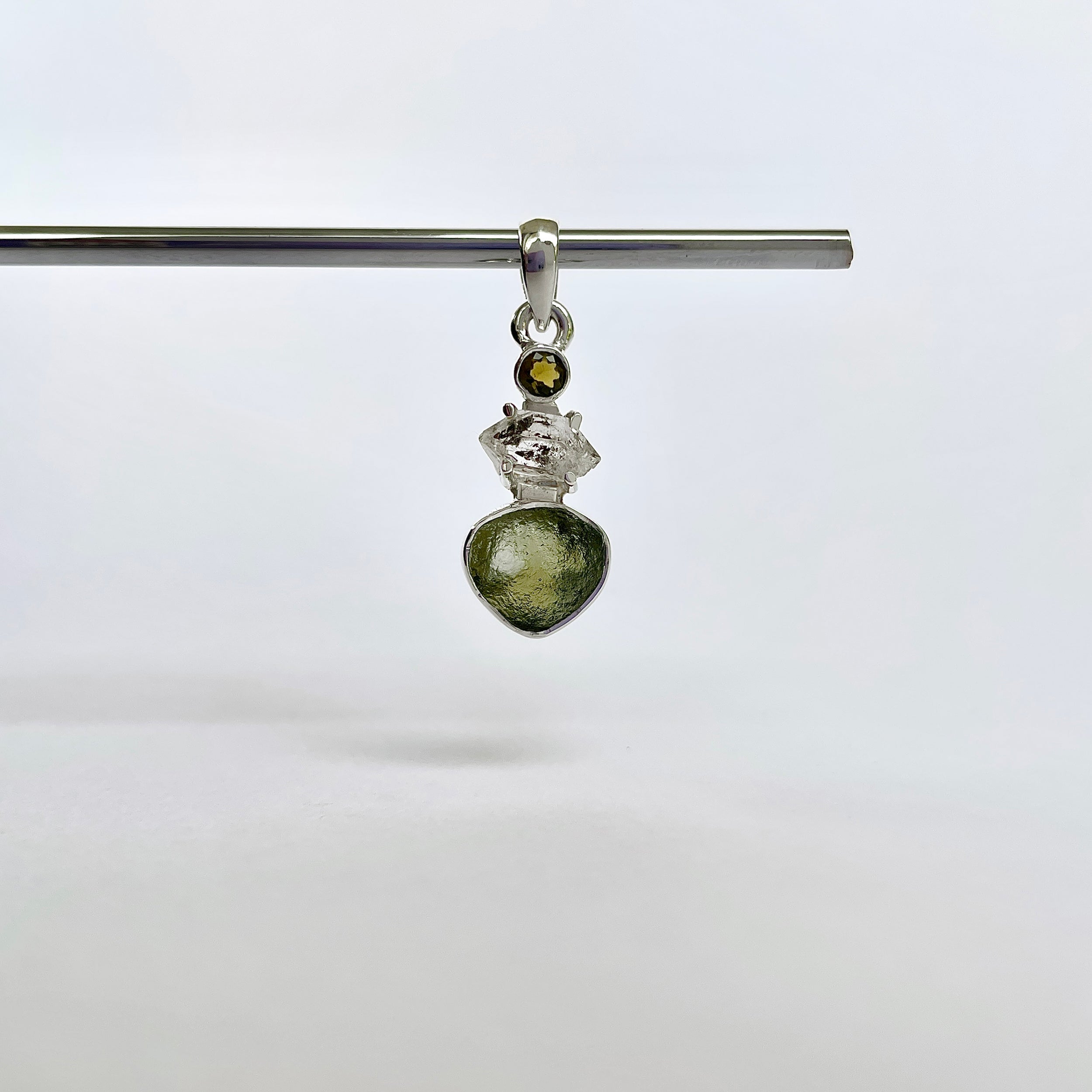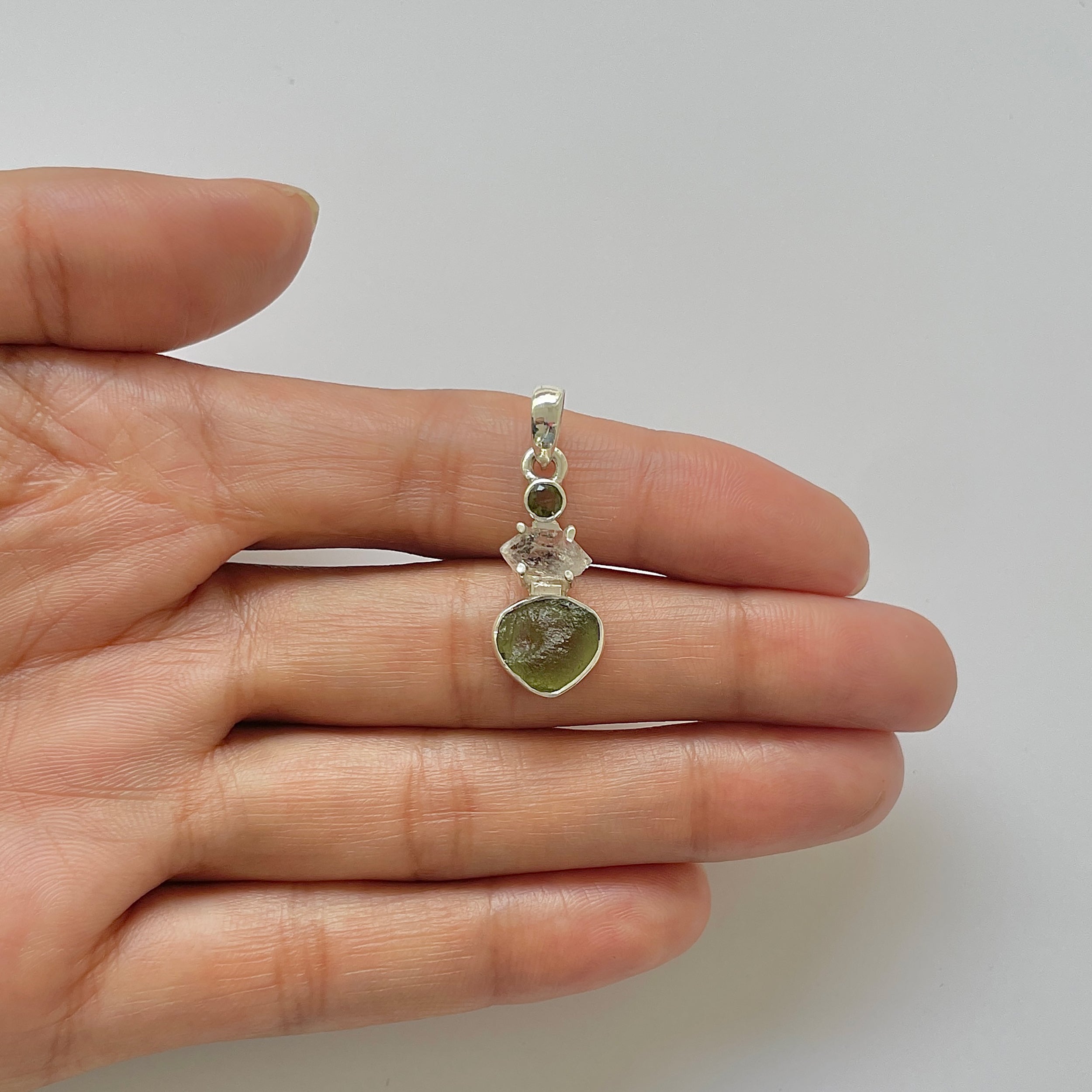Rozmiar kamienia: Mołdawit ~ 1,1 x 0,9 cm, Herkimer ~ 1,1 x 0,6 cm