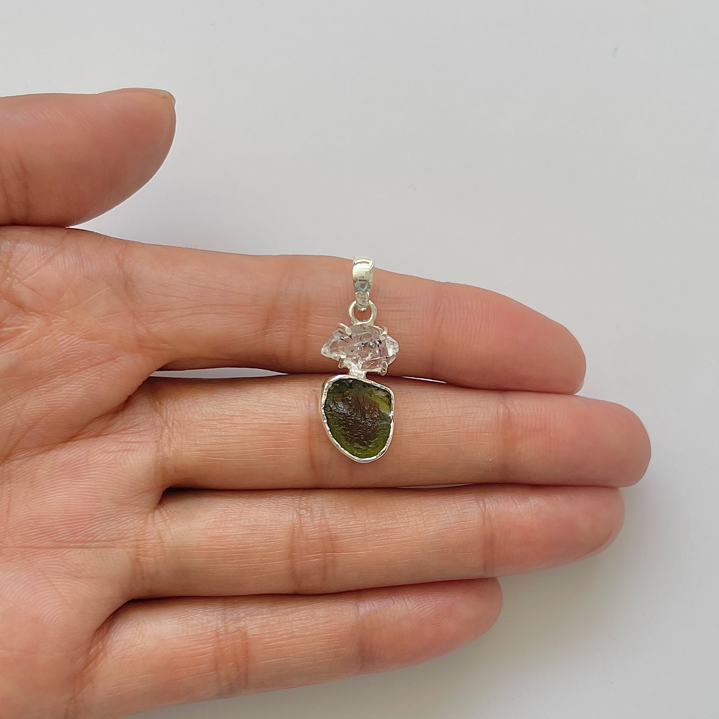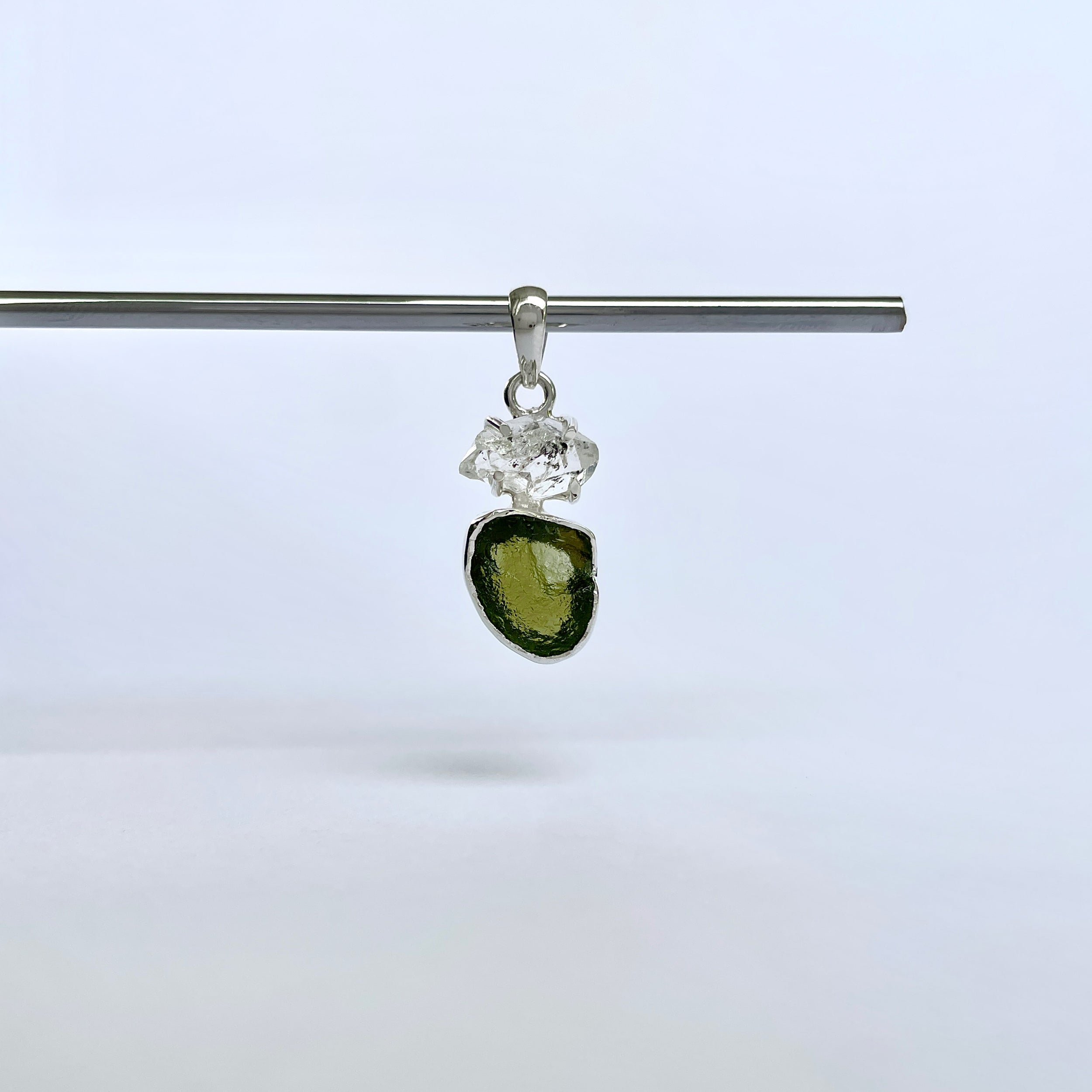 Rzadki i autentyczny wisiorek, wykonany z Moldavit brutto, elegancko zamontowany 925 srebro.