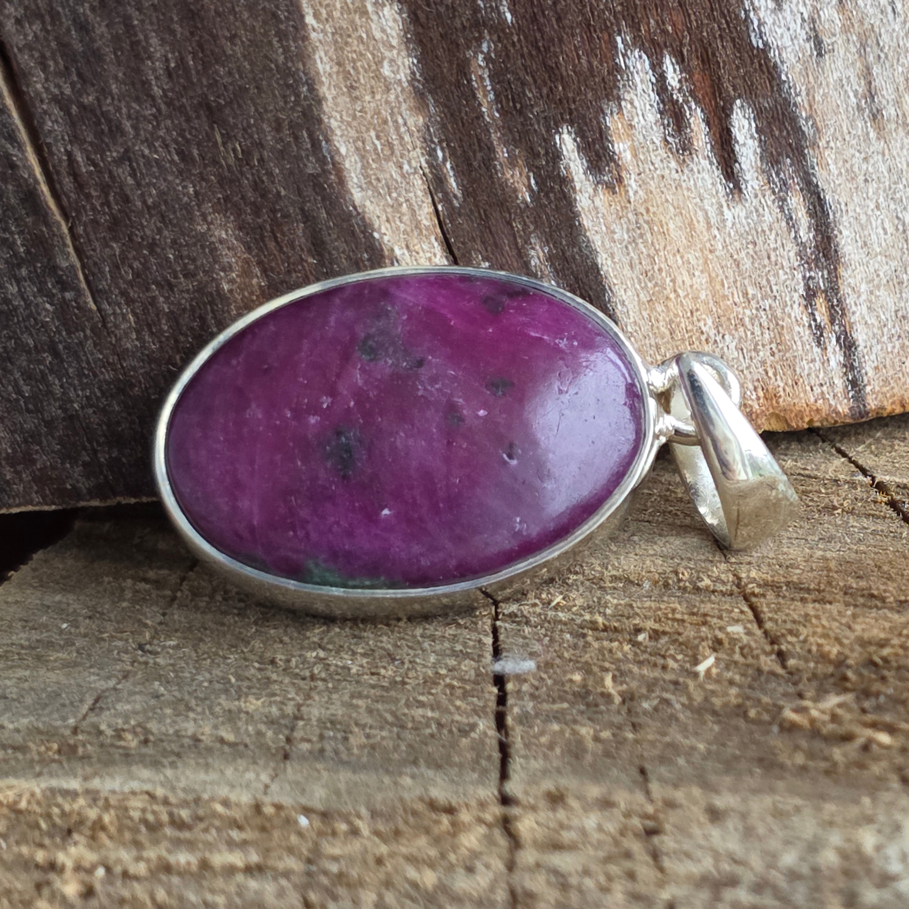 Srebrny wisiorek rubinowy 3,5 cm owalny