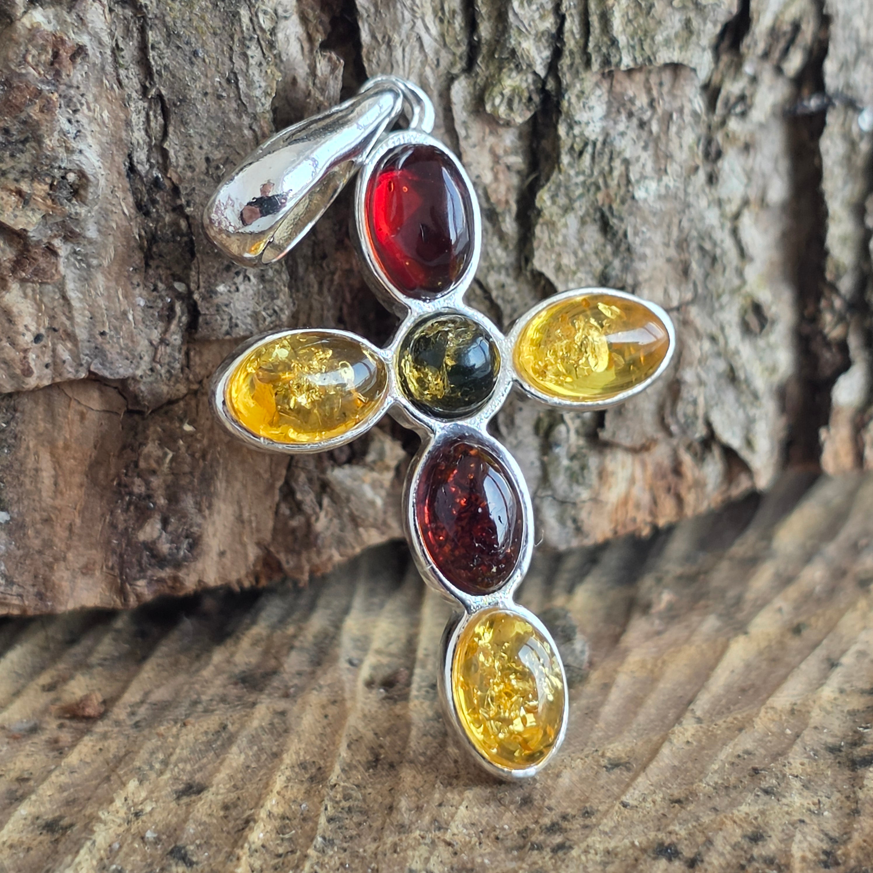 Srebrny wisiorek w kształcie bursztynowego krzyża Bursztyn31