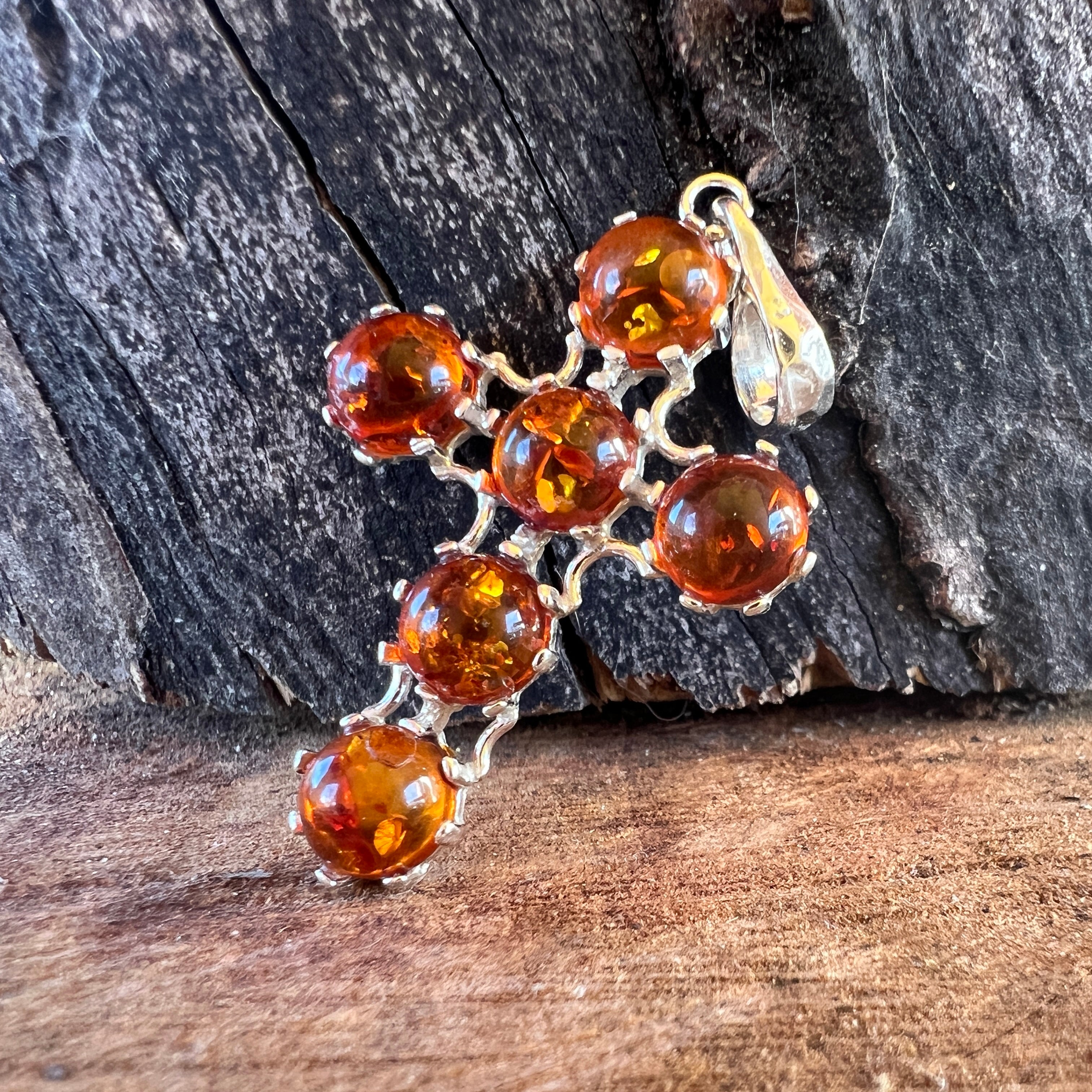 Srebrny wisiorek z bursztynowym wałkiem krzyżowym29