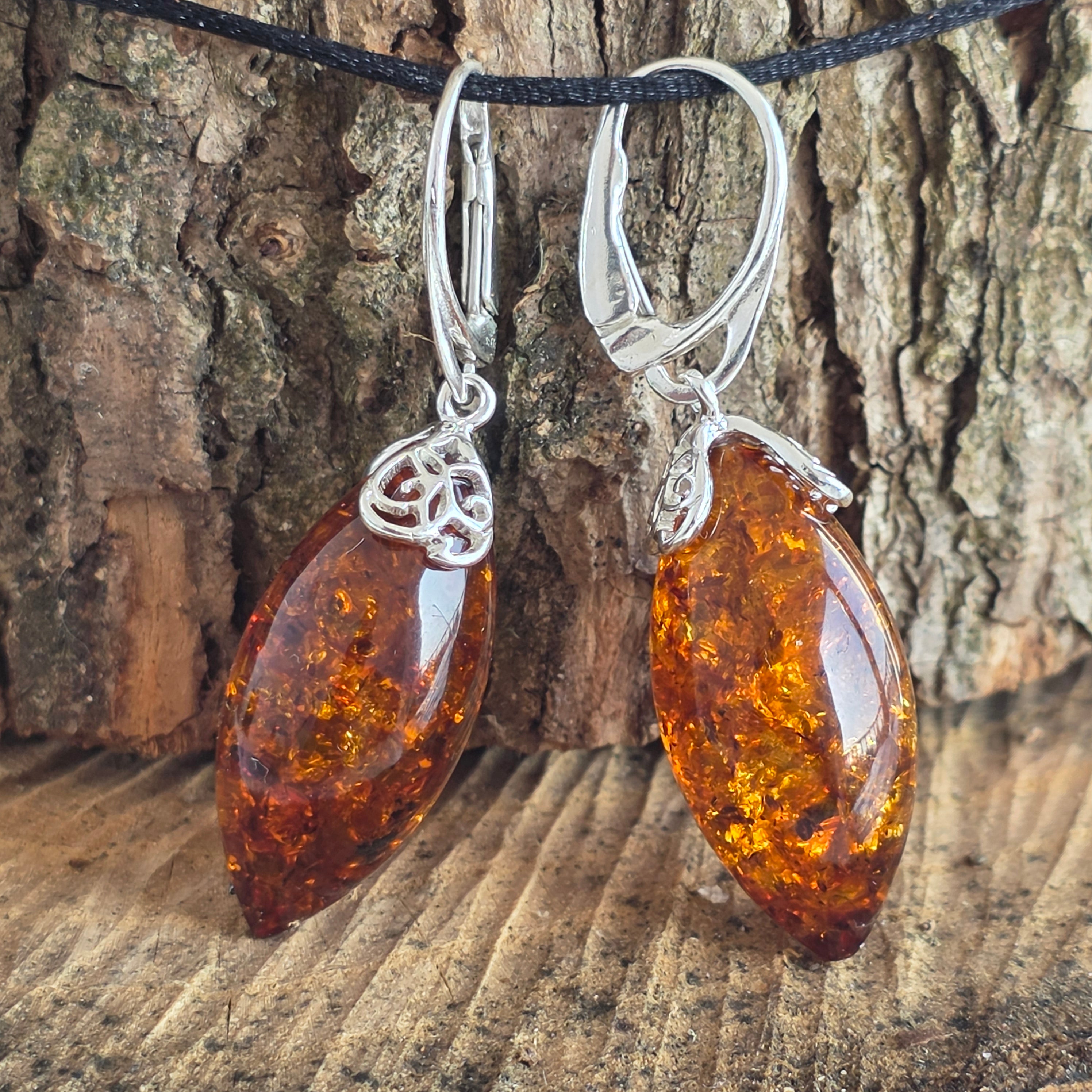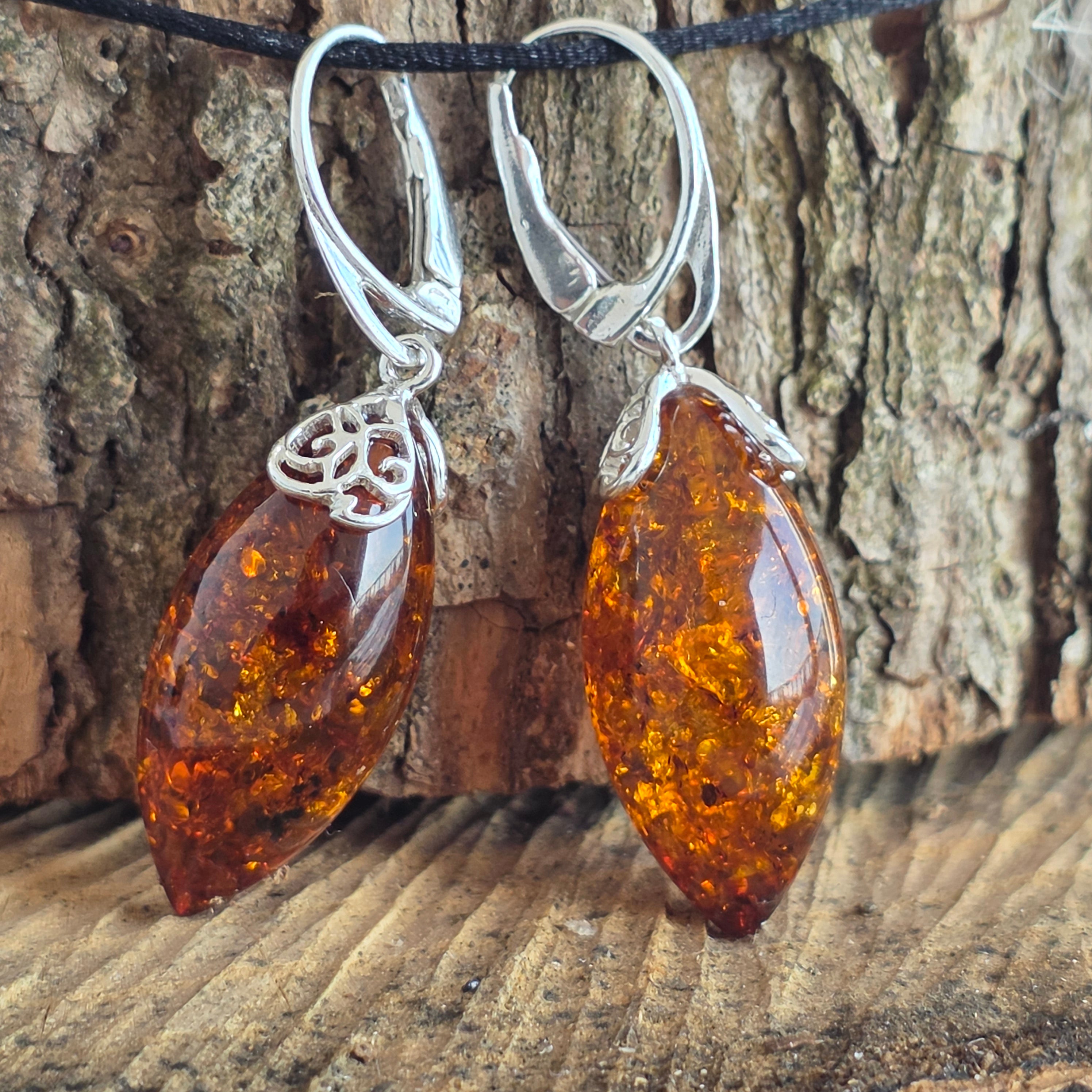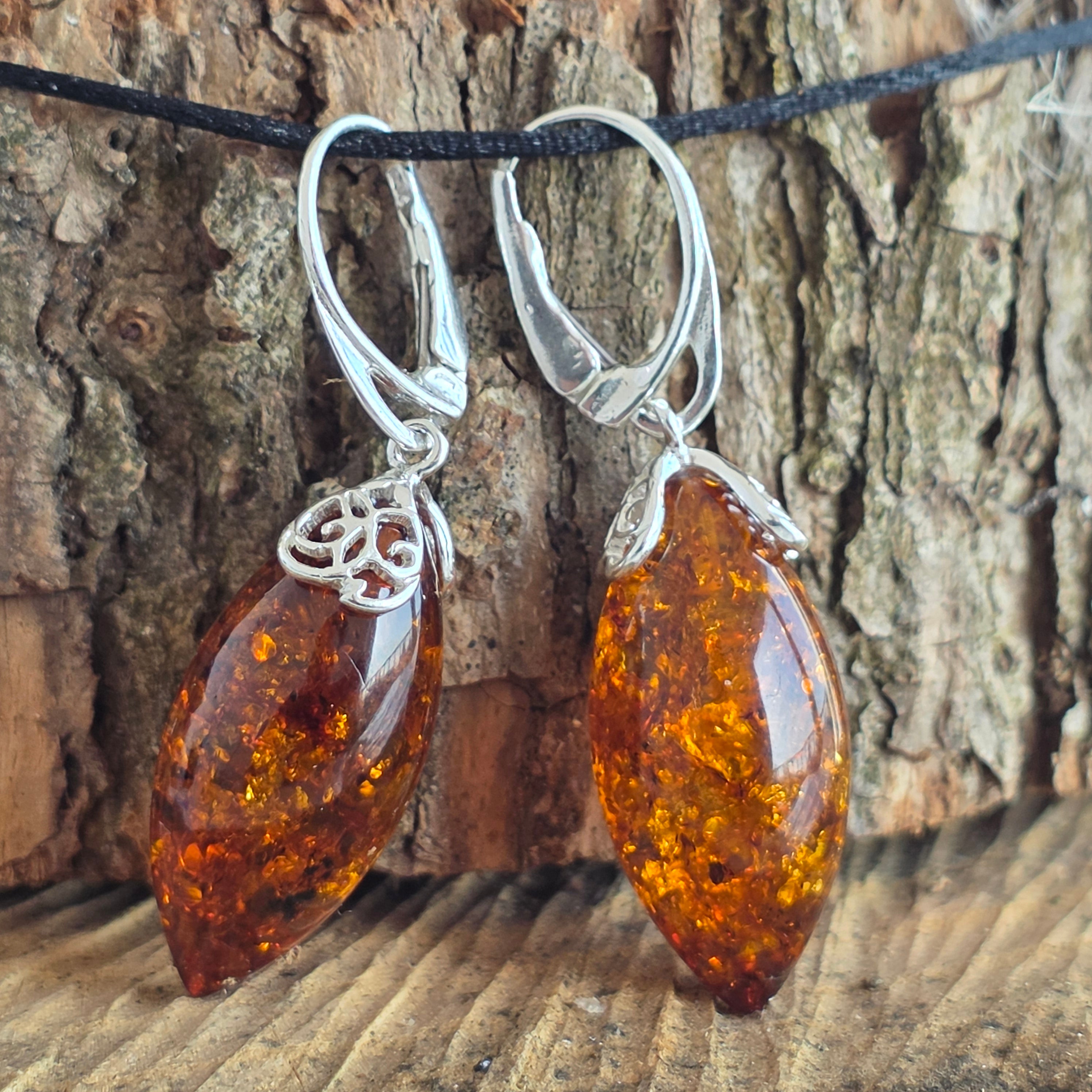 Opis - Srebro z bursztynowymi kolczykami Bursztyn7