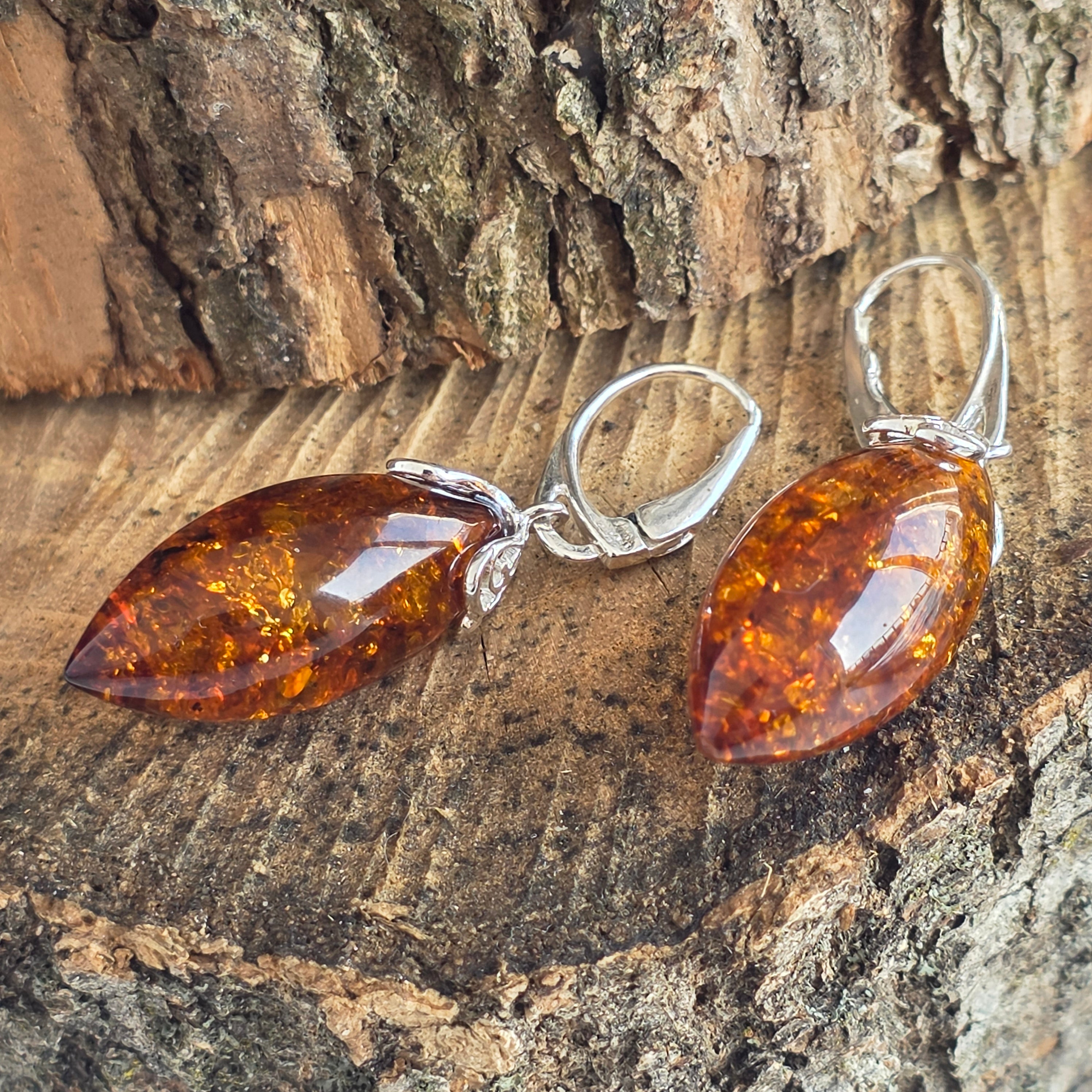 Srebrne kolczyki z bursztynem Amber7