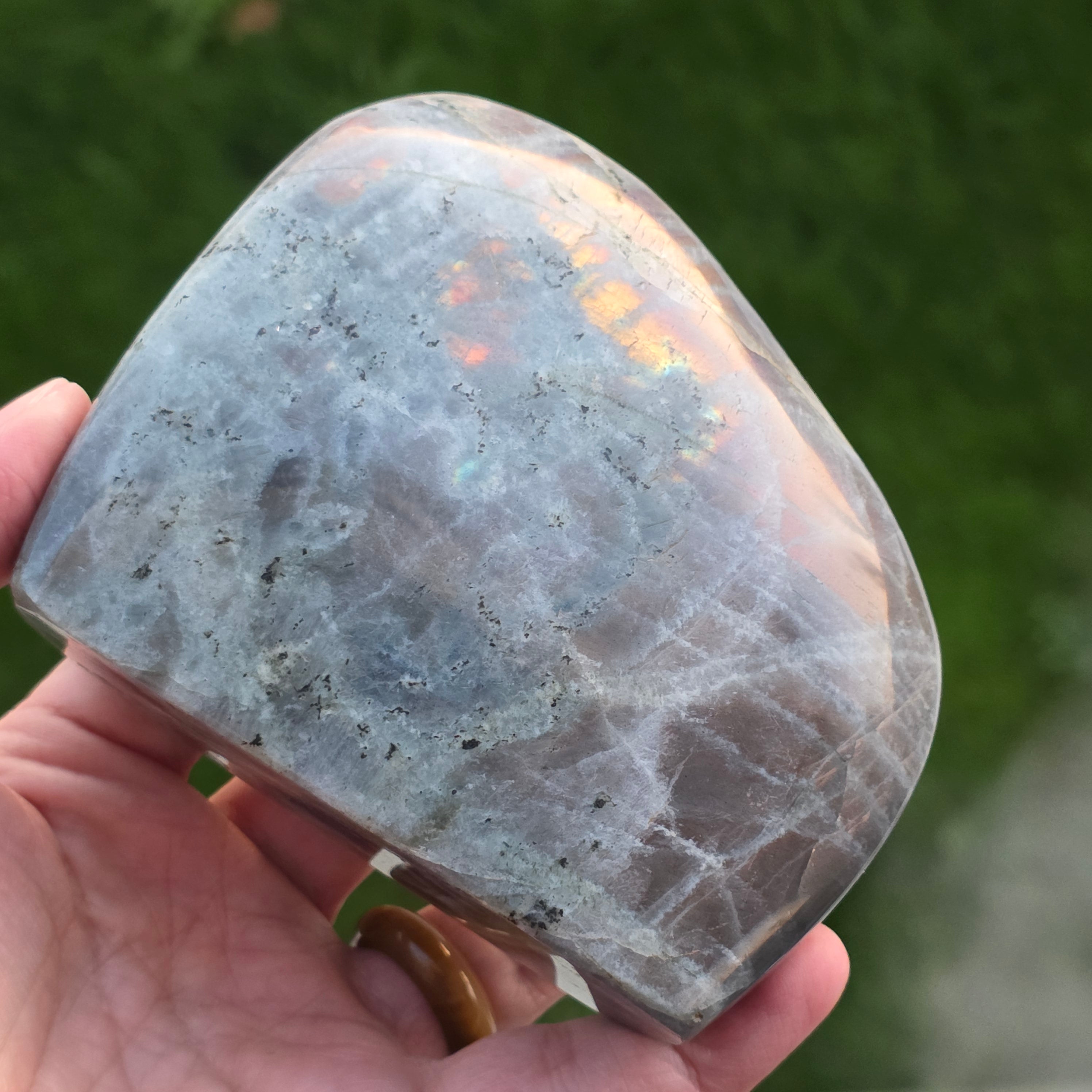 Labradorit uważany jest za kamień jasnowidzenia i intuicji, jest kluczowym kamieniem w kolekcji. Działa jak ochronna tarcza, pomaga nam pamiętać, jak jesteśmy silni.