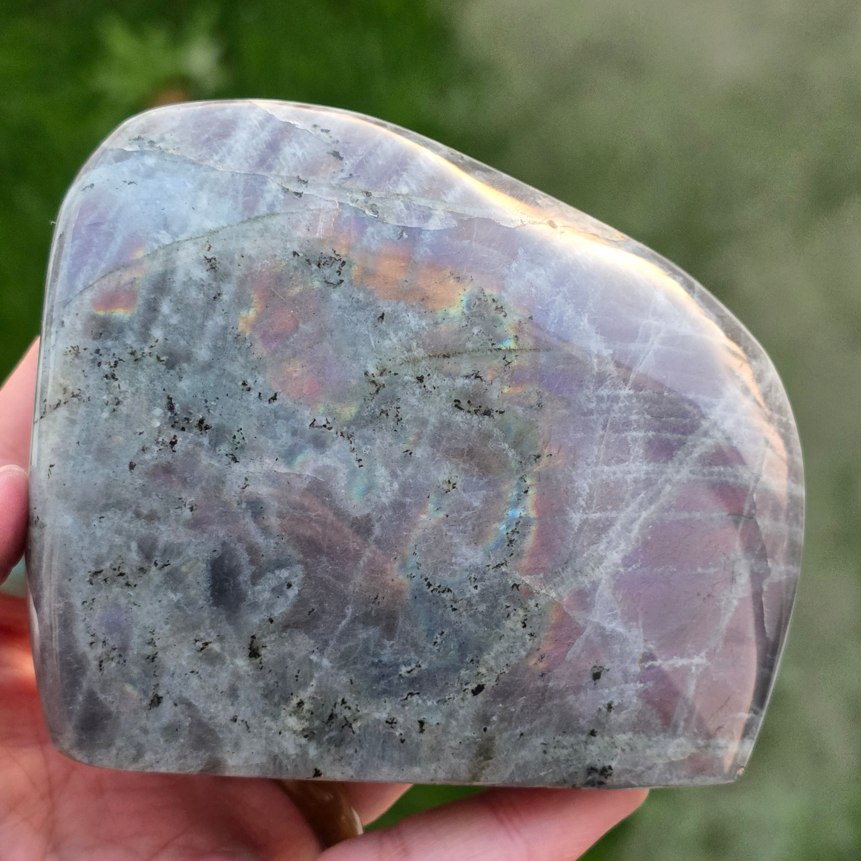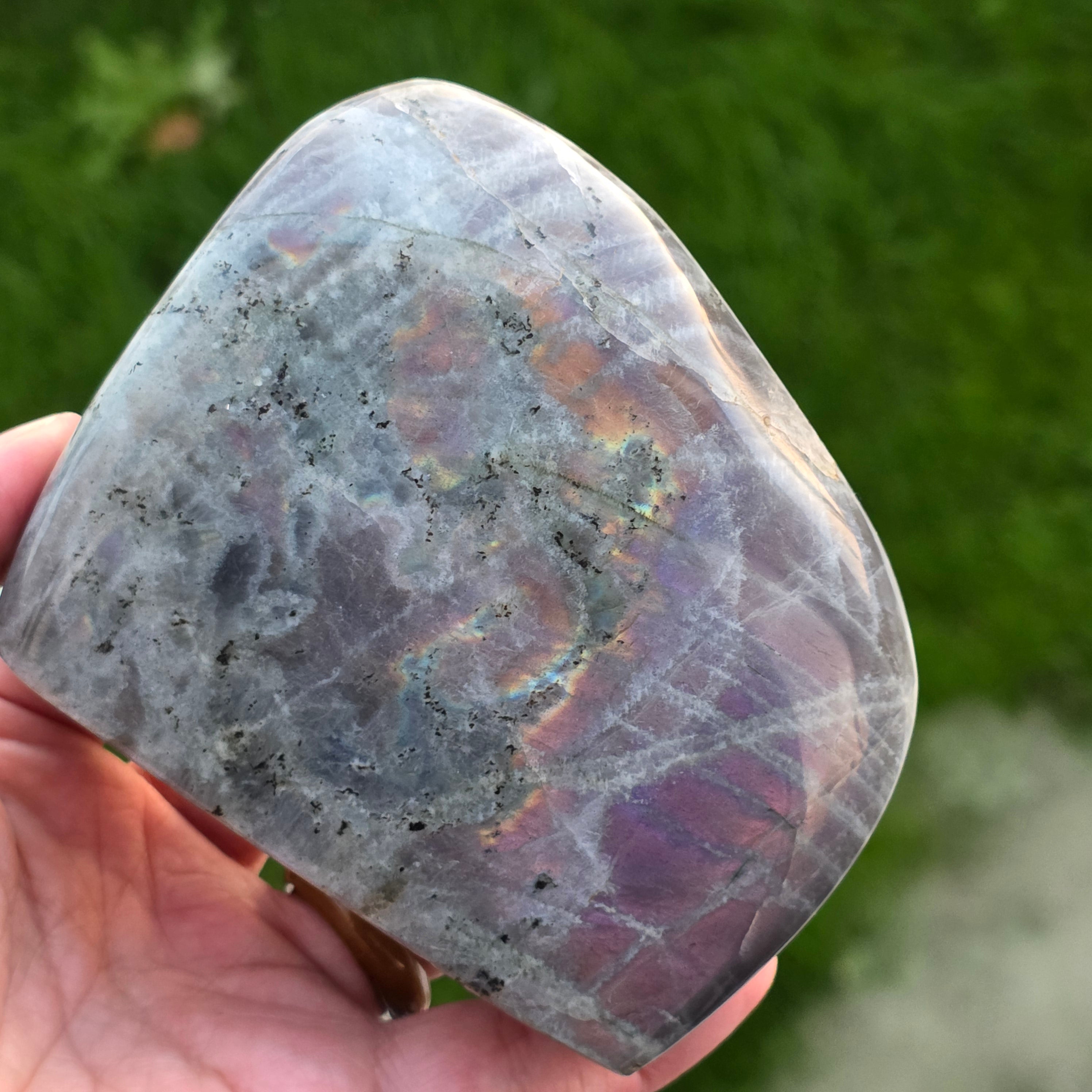 Labradorit to kamień półszlachetny, którego kolorystyka zmienia się w zależności od kąta patrzenia.