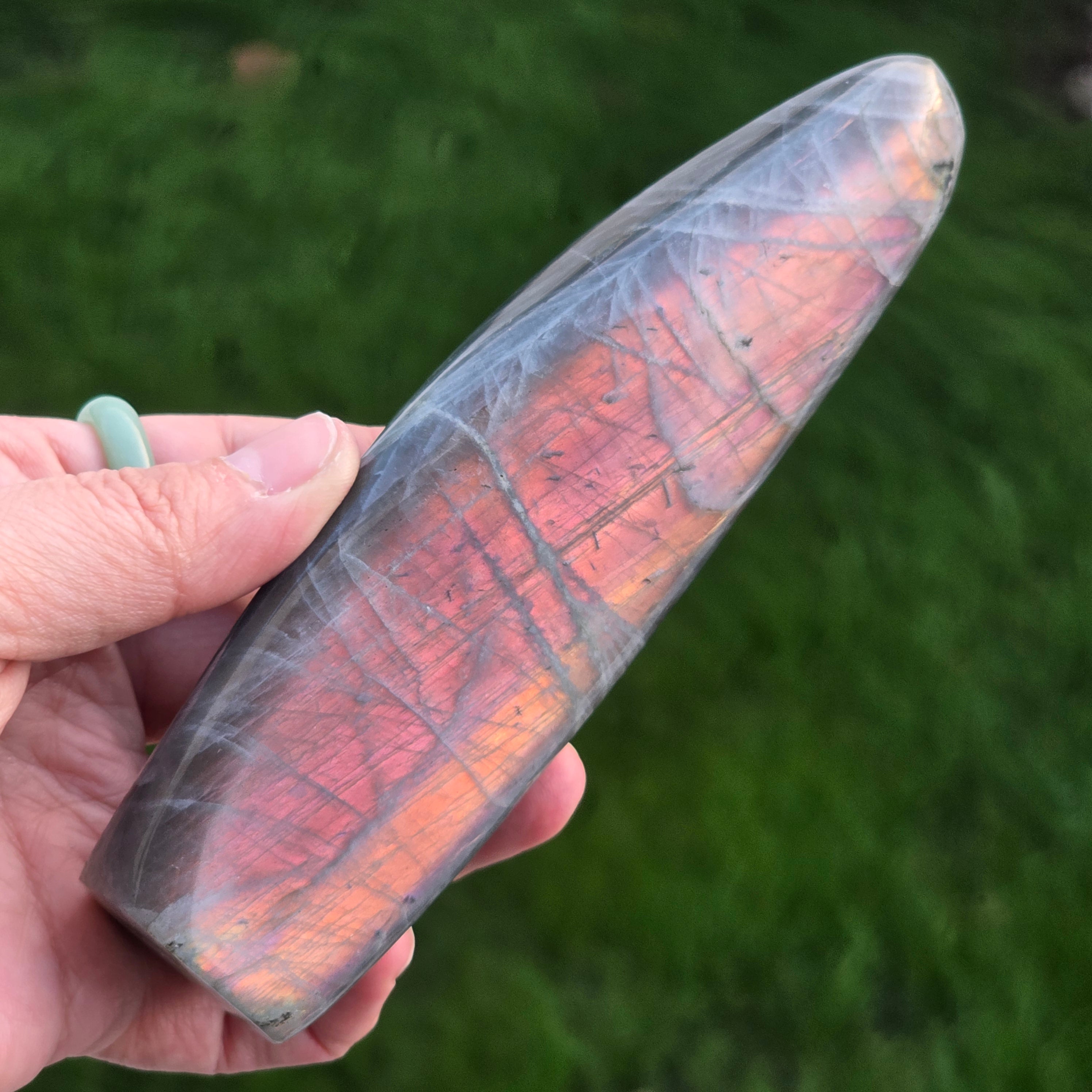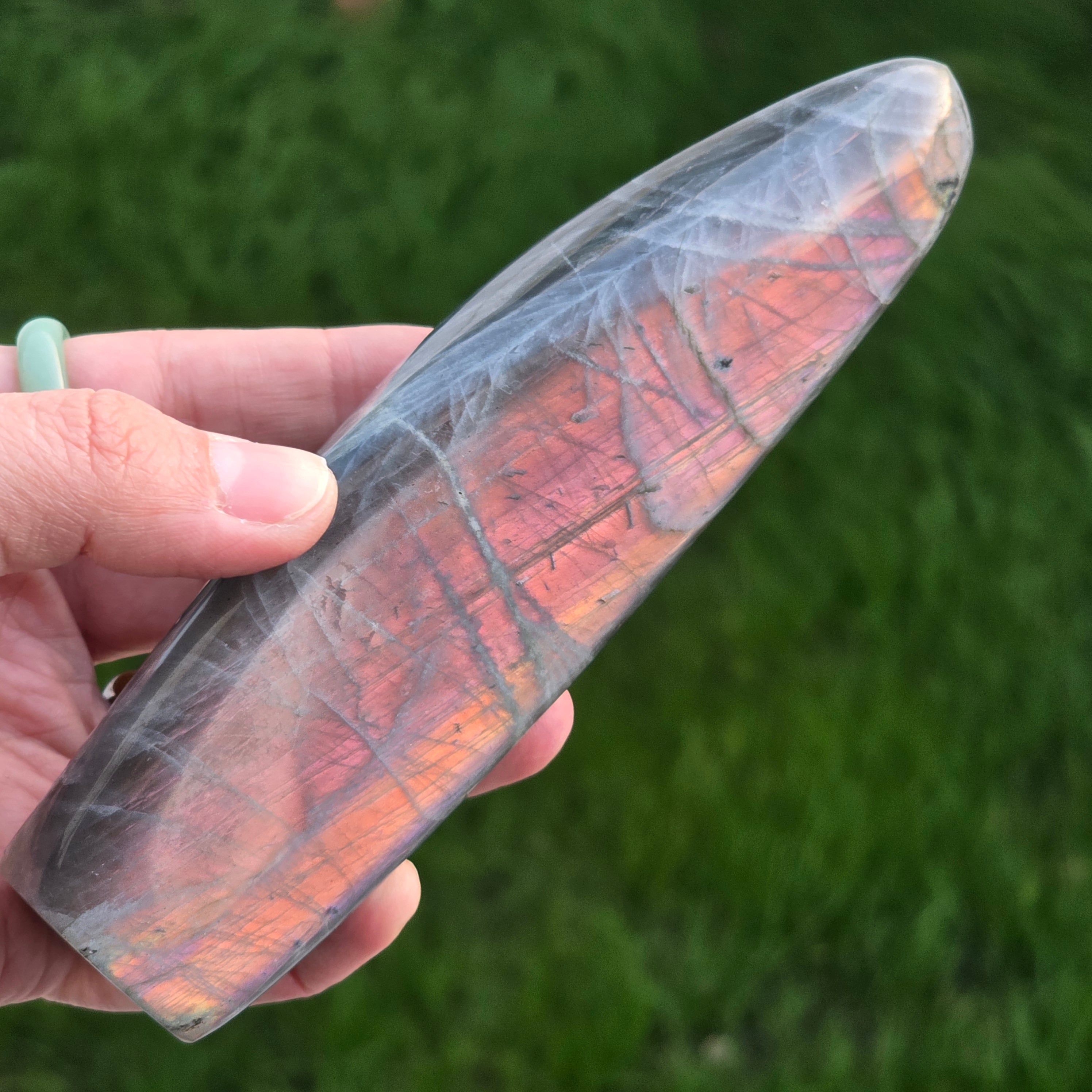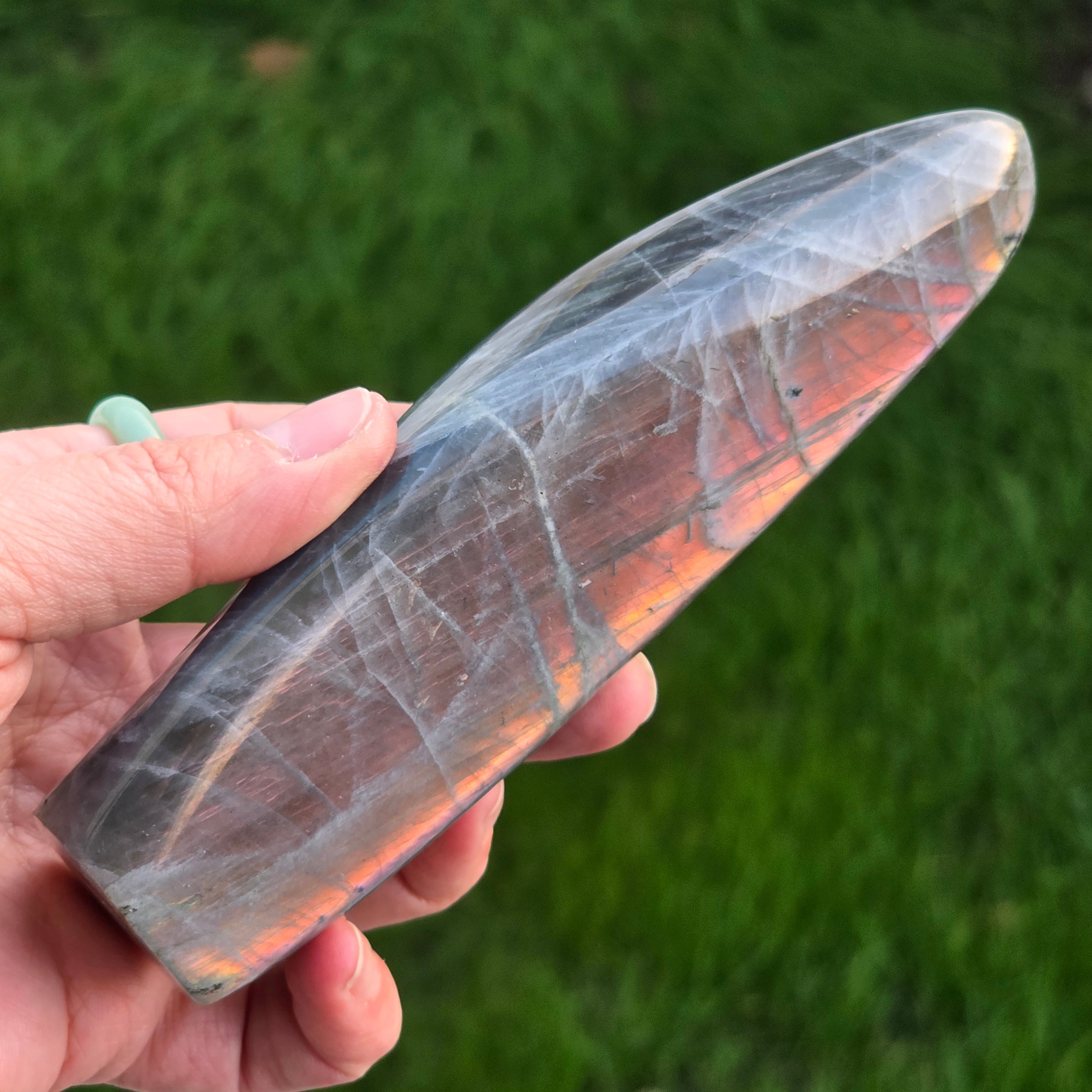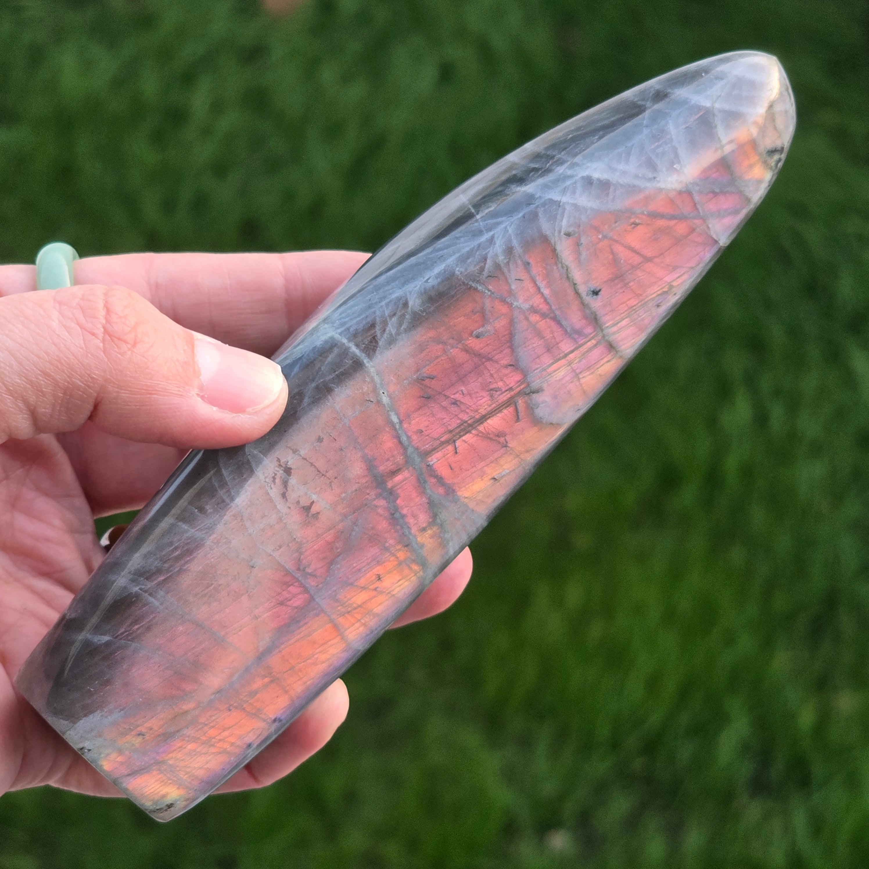 Labradorit uważany jest za kamień jasnowidzenia i intuicji, jest kluczowym kamieniem w kolekcji. Działa jak ochronna tarcza, pomaga nam pamiętać, jak jesteśmy silni.