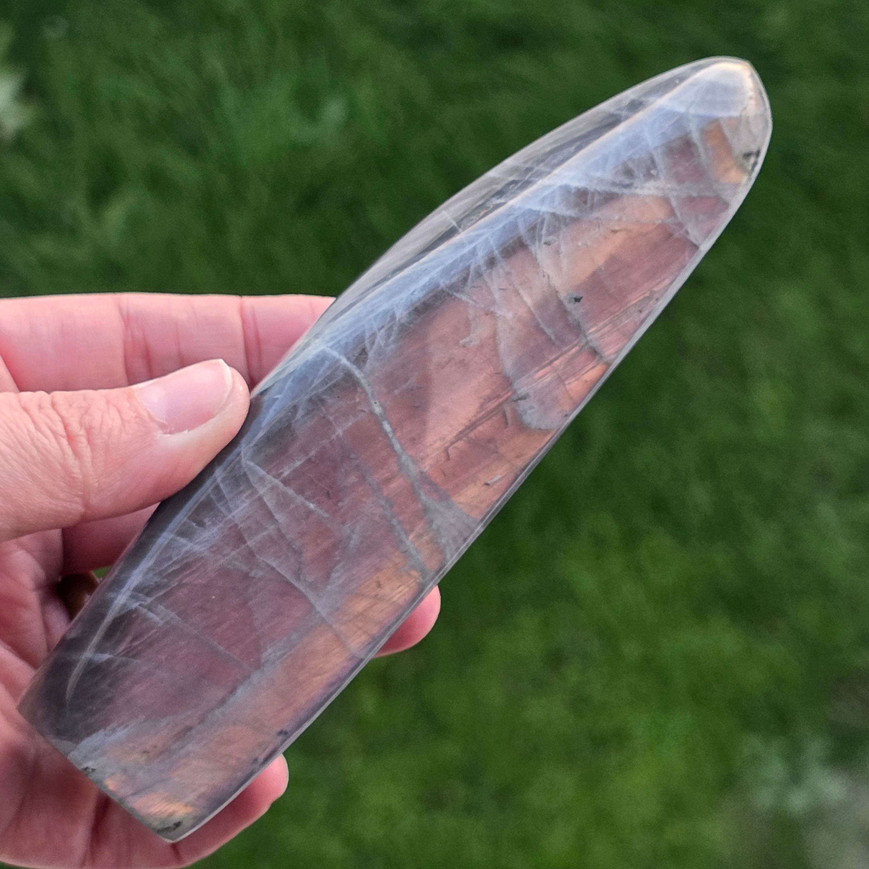 Labradorit to kamień półszlachetny, którego kolorystyka zmienia się w zależności od kąta patrzenia.