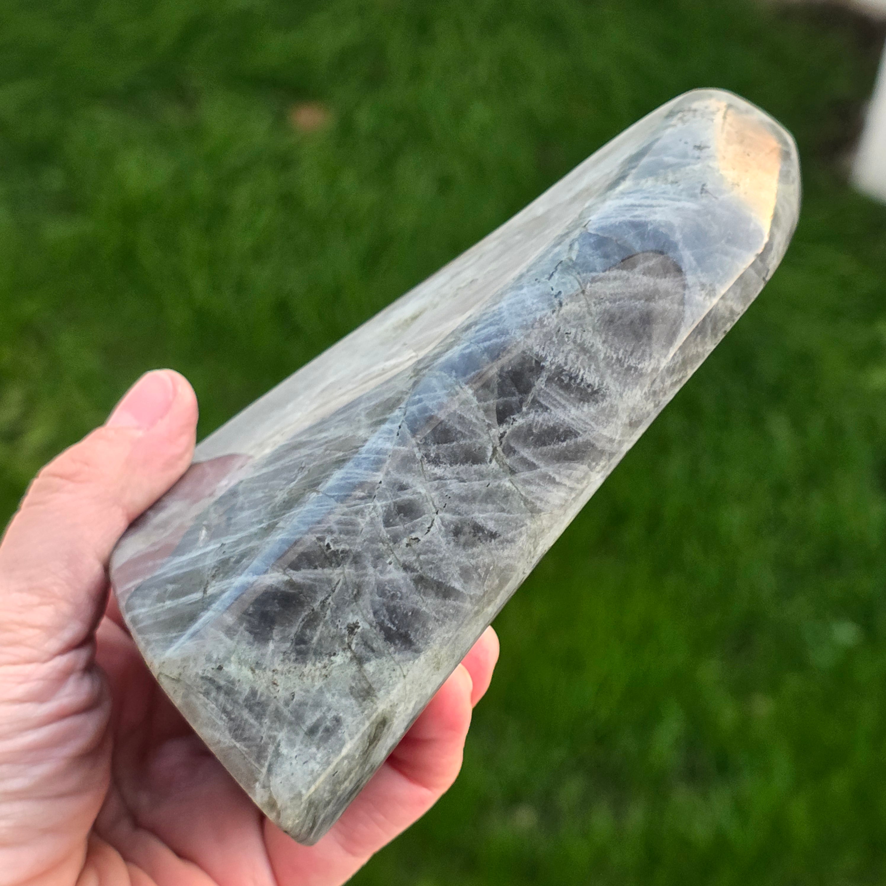 Labradorit uważany jest za kamień jasnowidzenia i intuicji, jest kluczowym kamieniem w kolekcji. Działa jak ochronna tarcza, pomaga nam pamiętać, jak jesteśmy silni.