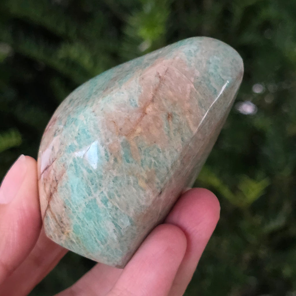 Amazonit nazywany jest również zwiastunem pokoju. Uważa się, że jest to kamień równowagi, który może pomóc uspokoić nerwowość, emocje i zachęcić do autentycznej ekspresji oraz poprawić relacje z otaczającymi Cię osobami.