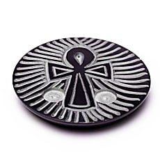 Realizat manual, acest suport pentru bețișoare și conuri parfumate poartă simbolul Ankh – cunoscut în Egiptul antic drept cheia vieții, un semn al energiei vitale și al uniunii dintre spirit și materie.