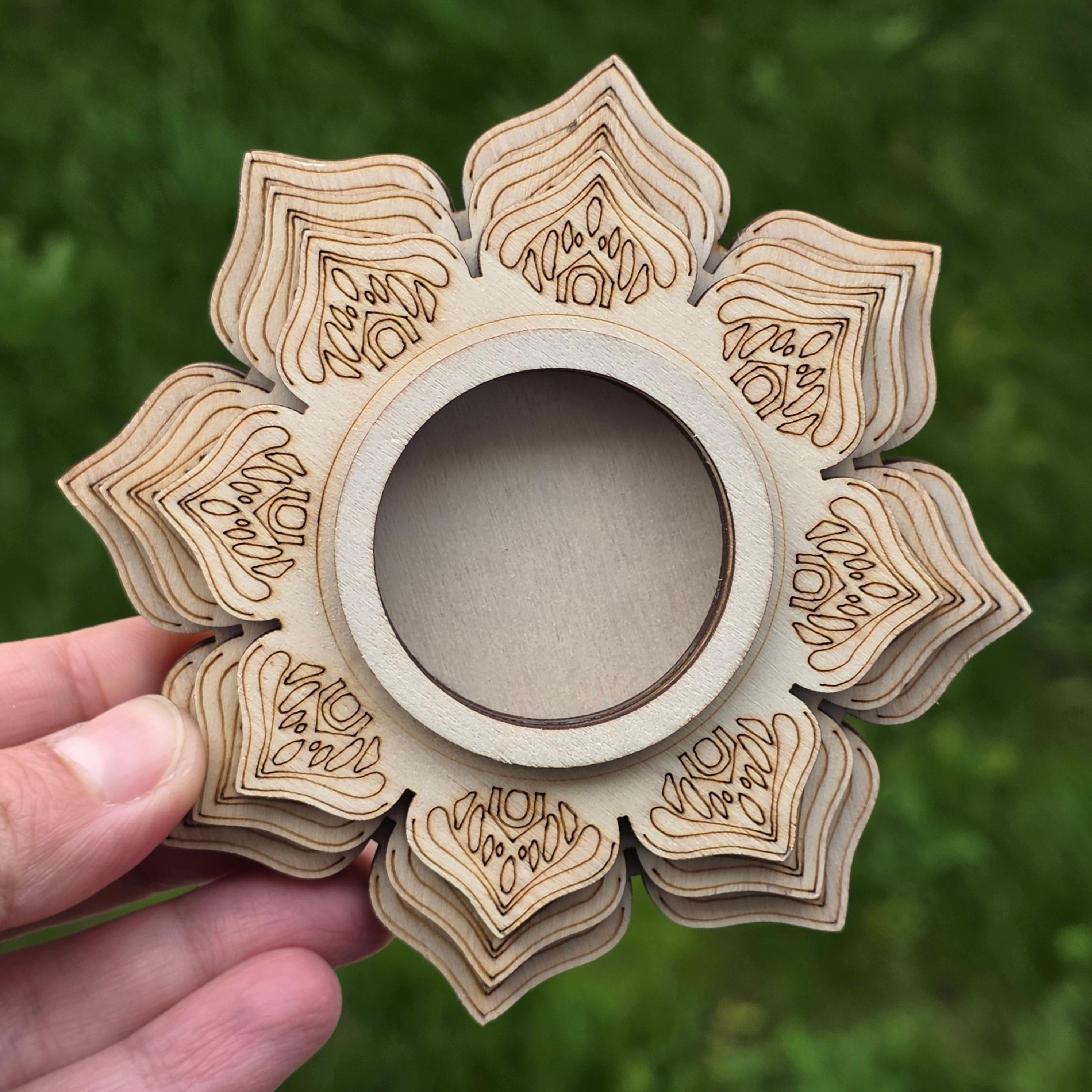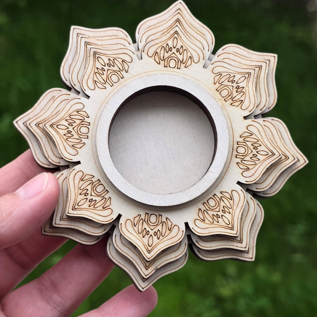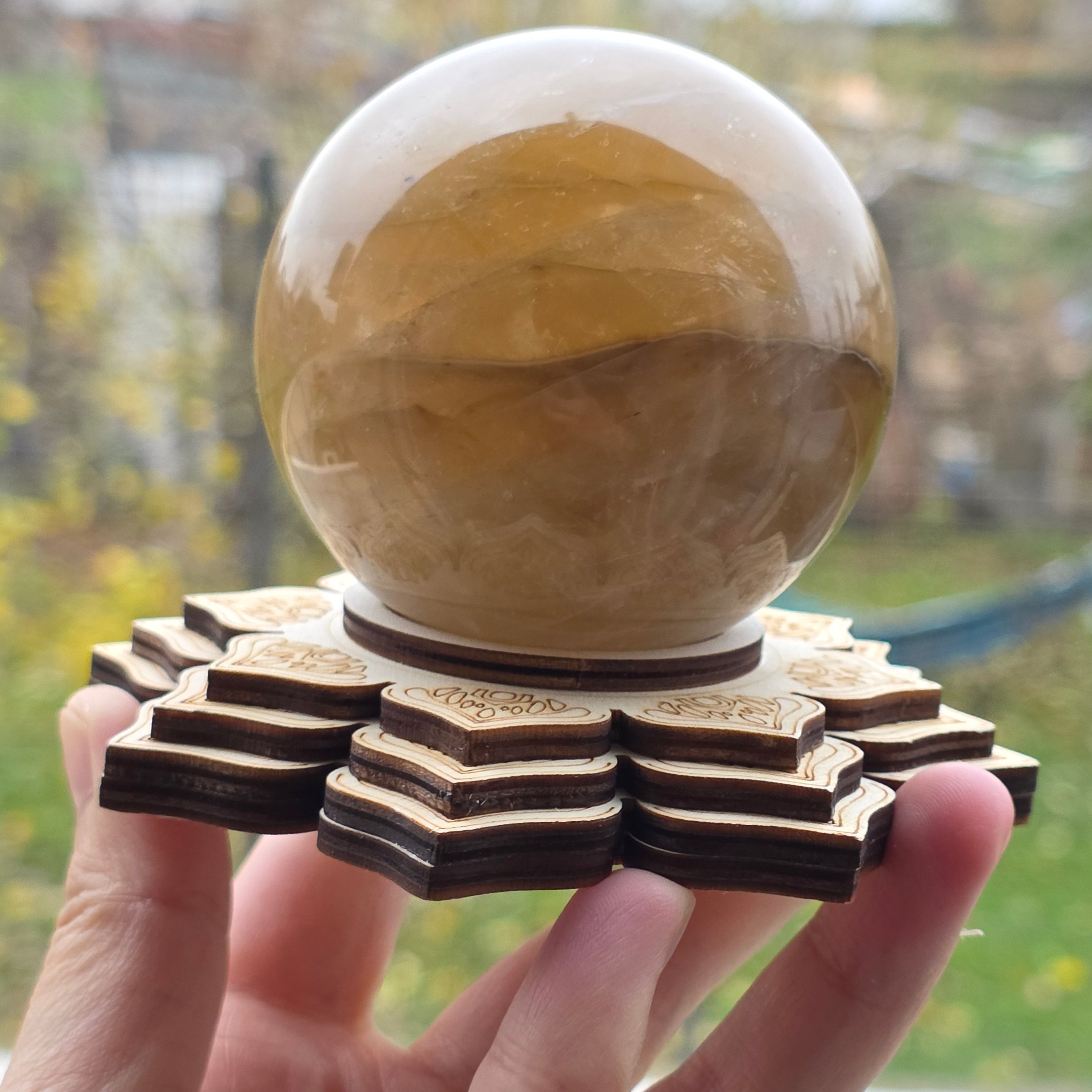 Opis - Suport din lemn Mandala pentru cristale și sfere