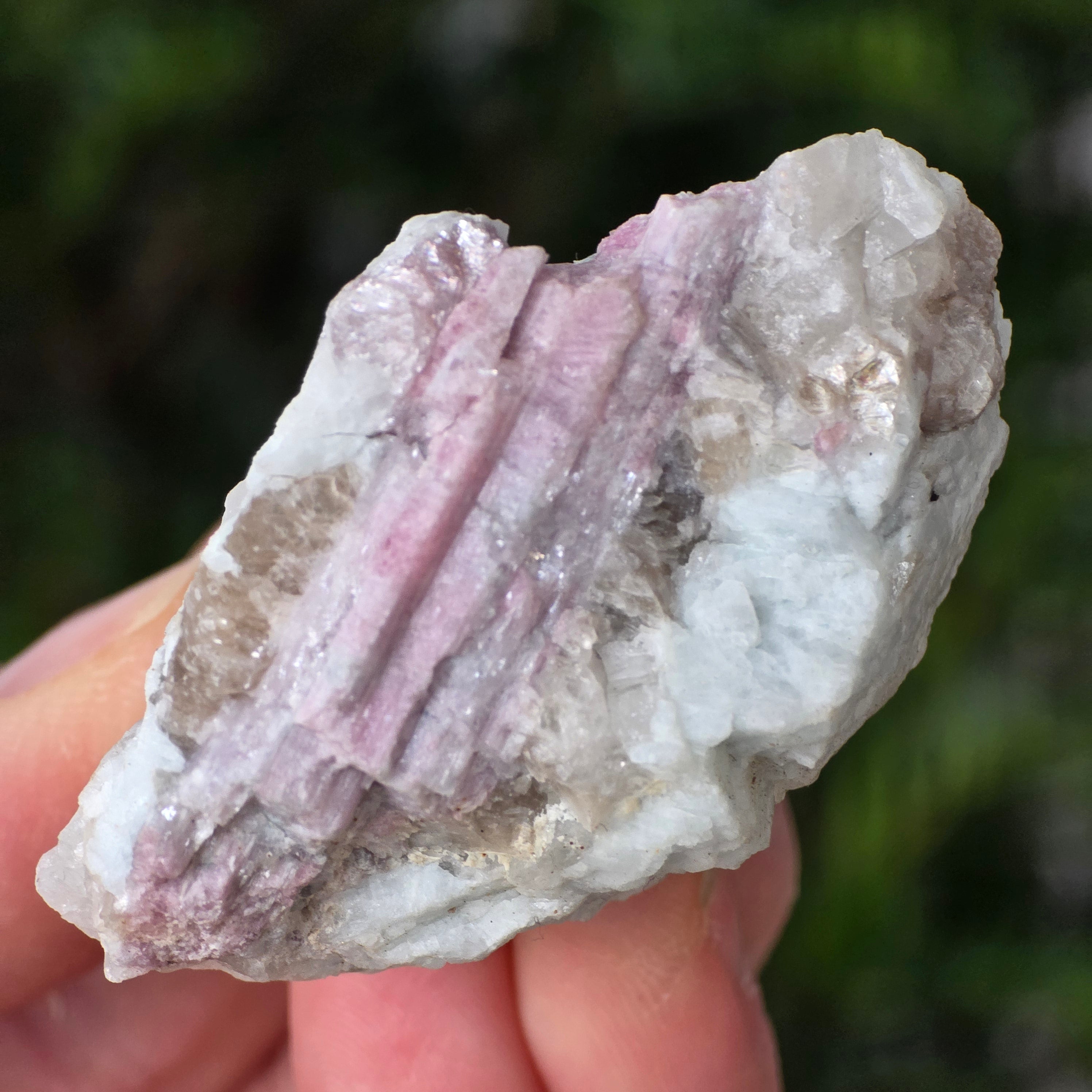 Różowy turmalin jest związany z energiami serca i uważa się, że ma właściwości uspokajające, uzdrawiające emocjonalnie, promujące miłość własną i harmonijne relacje.