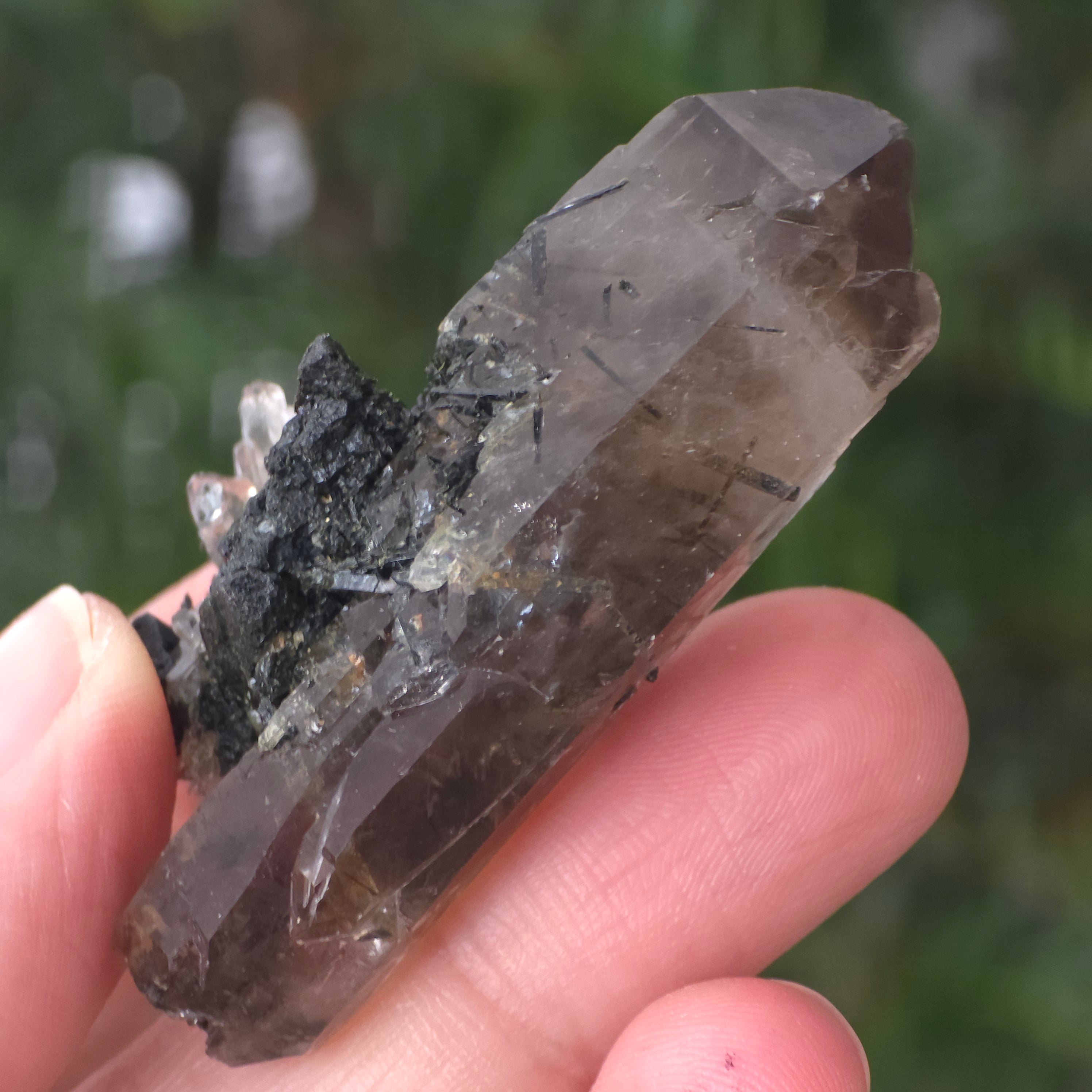 Kwarc dymny jest jedną z najbardziej eleganckich i tajemniczych odmian kwarcu naturalnego, rozpoznawalną dzięki ciepłym odcieniom – od szarego przejrzystego po ciemnobrązowy, czasami prawie czarny. Powstaje on w głębi skorupy ziemskiej, gdzie naturalne promieniowanie zmienia strukturę przezroczystego kryształu kwarcu, dając charakterystyczny dymny ton. Każdy okaz jest świadectwem geologicznej cierpliwości, kryształem powstającym powoli w idealnie zrównoważonych warunkach ciśnienia i temperatury.