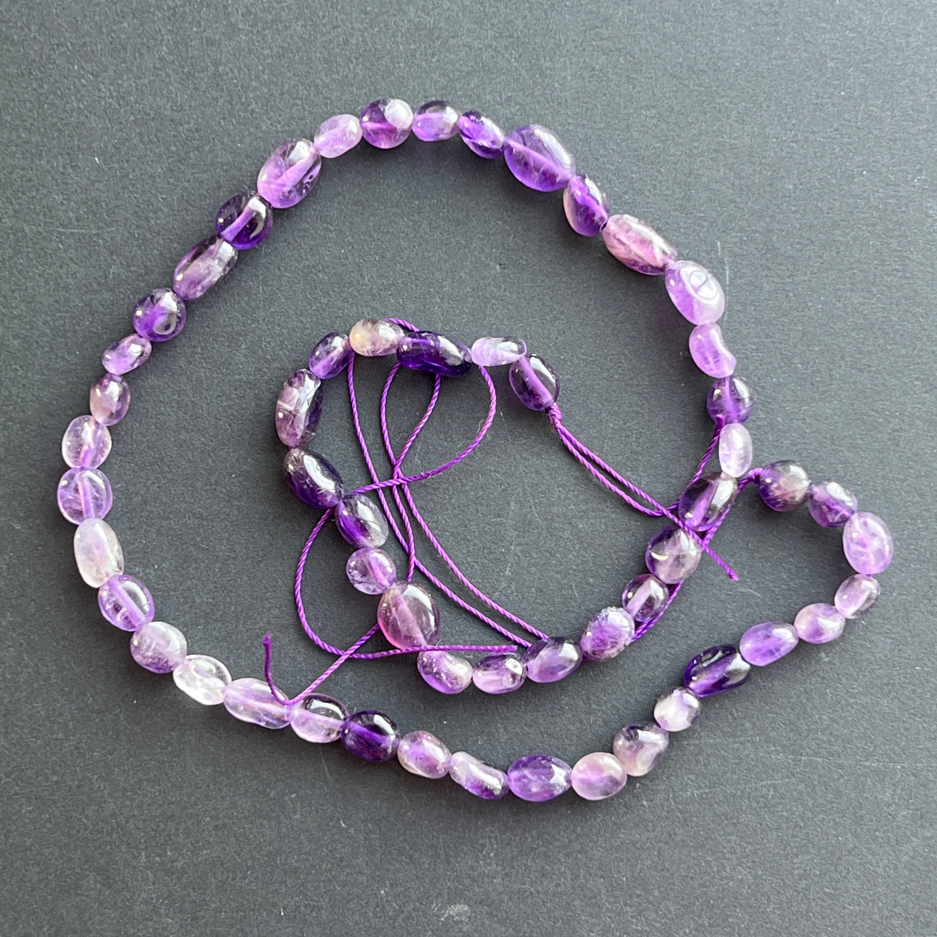Szereg koralików z kamieniami półszlachetnymi, surowymi, obtoczonymi AMETYST | Model 2