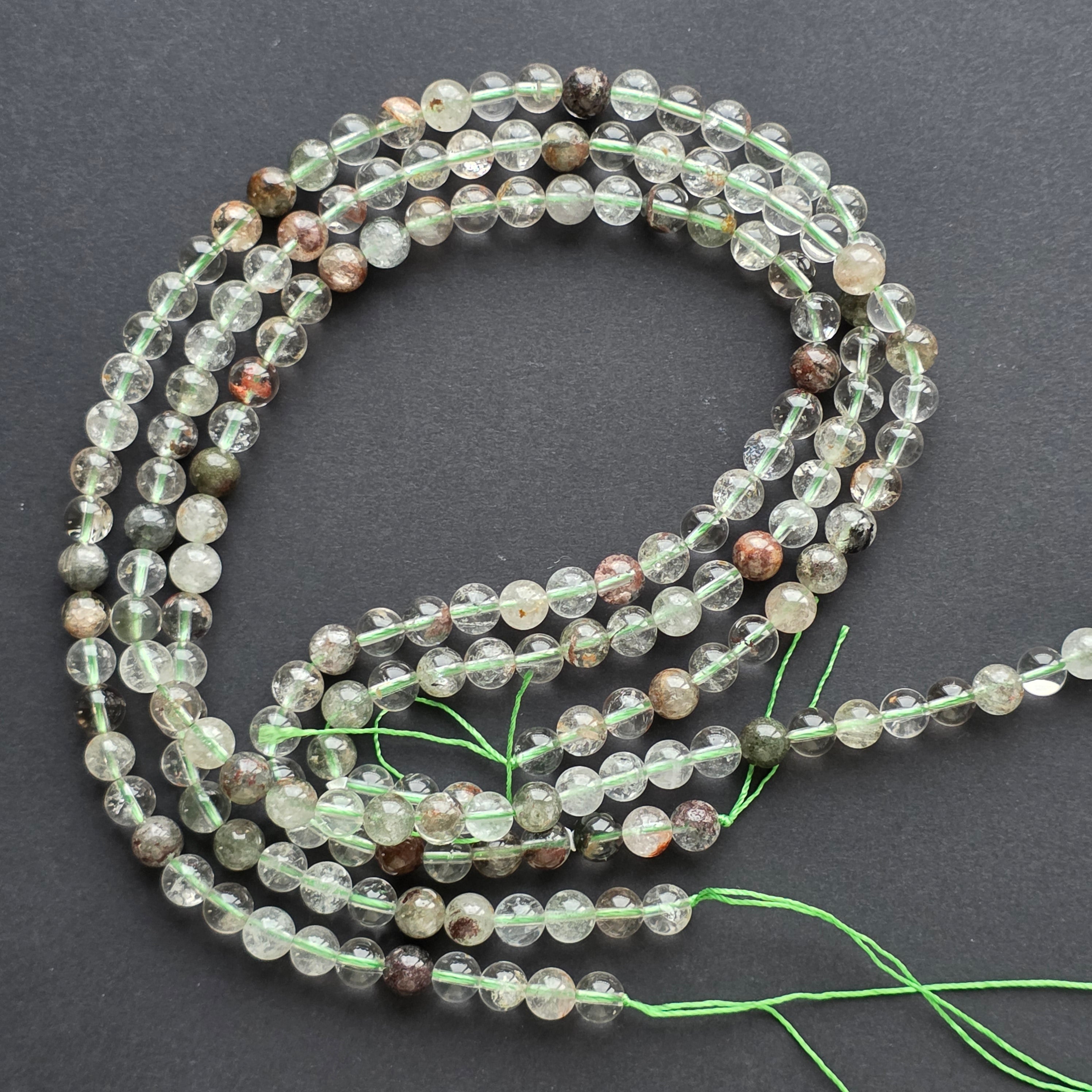 Sznur KWARCU TYBETAŃSKIEGO składający się z naturalnych kulek, idealny do naszyjników, bransoletek lub innych ręcznie robionych biżuterii.