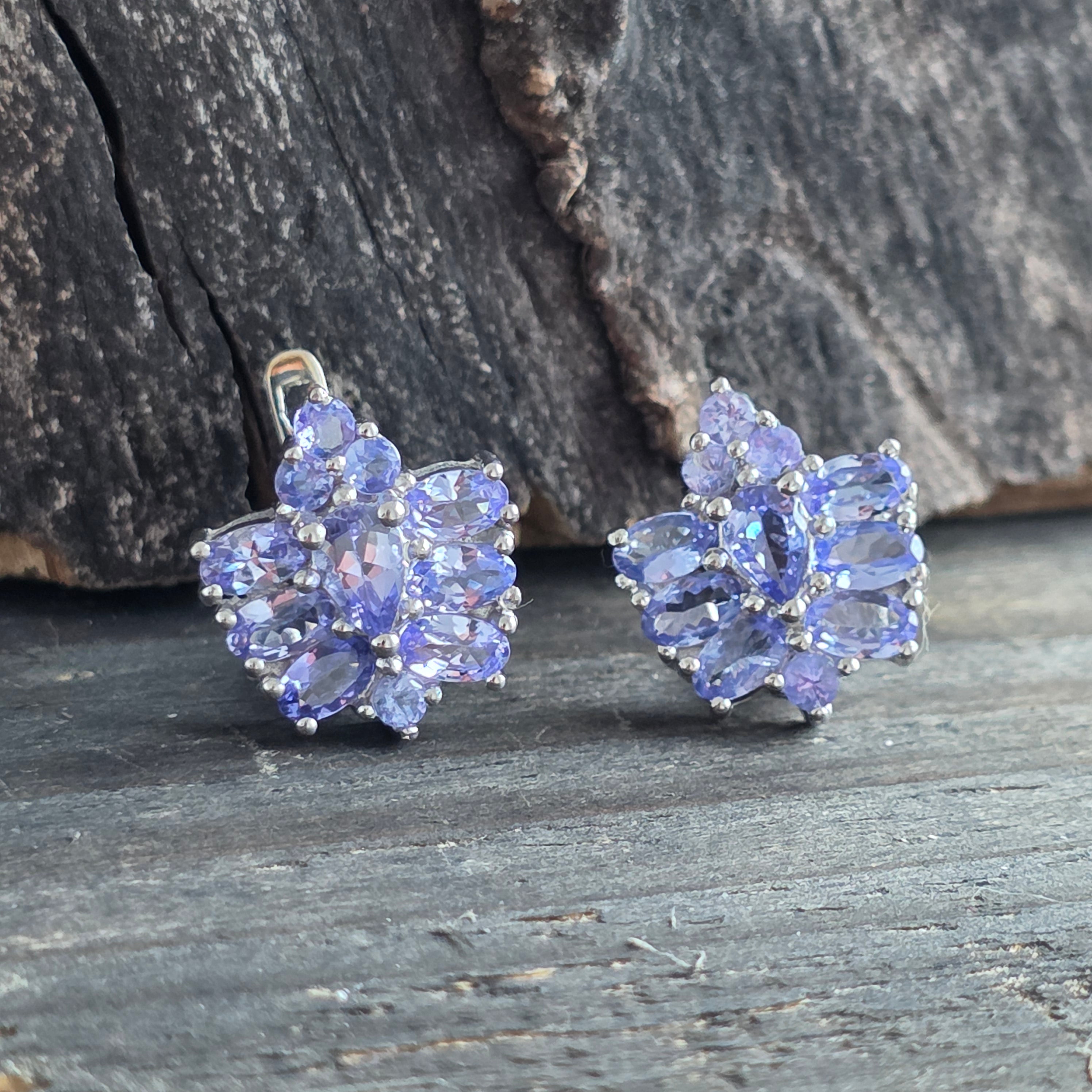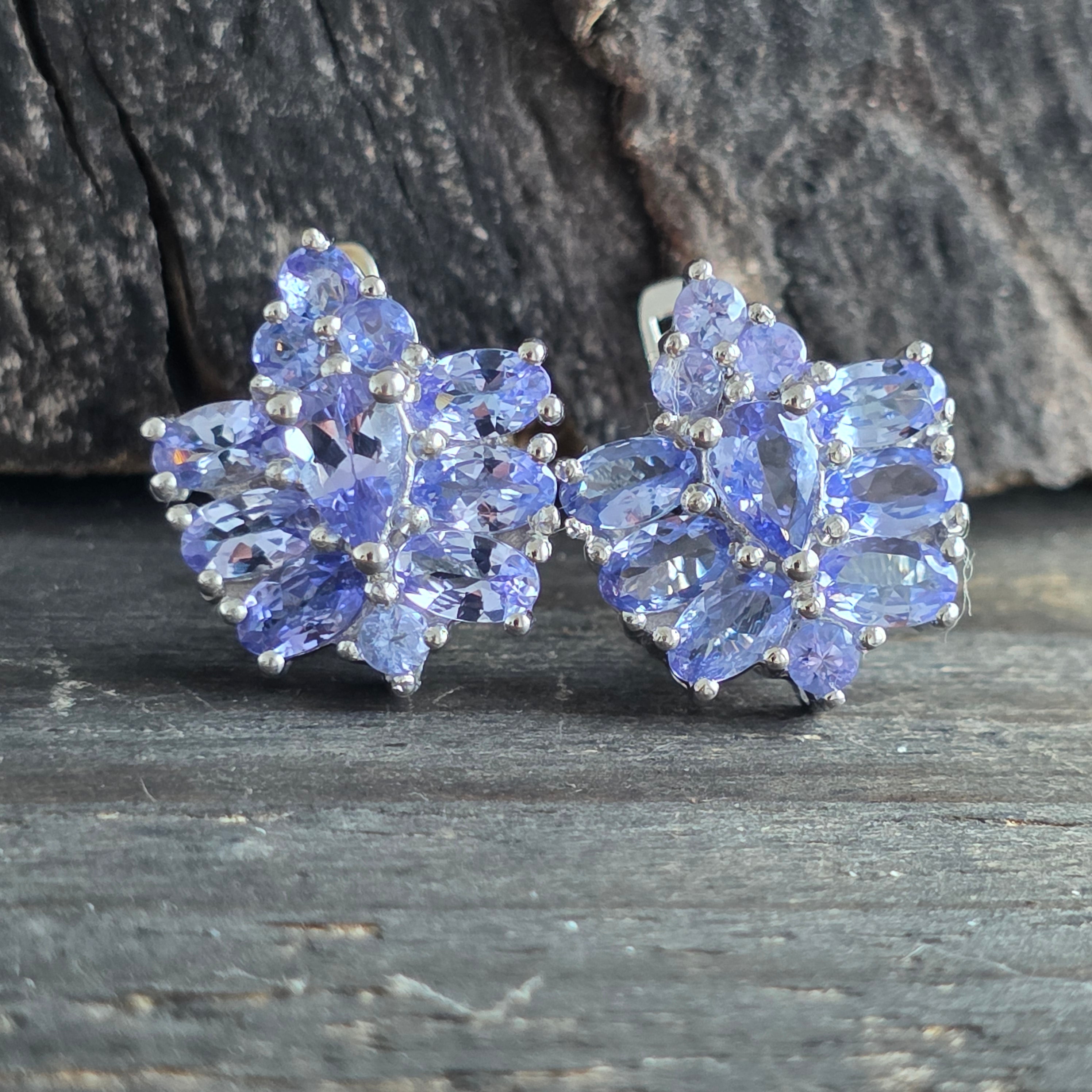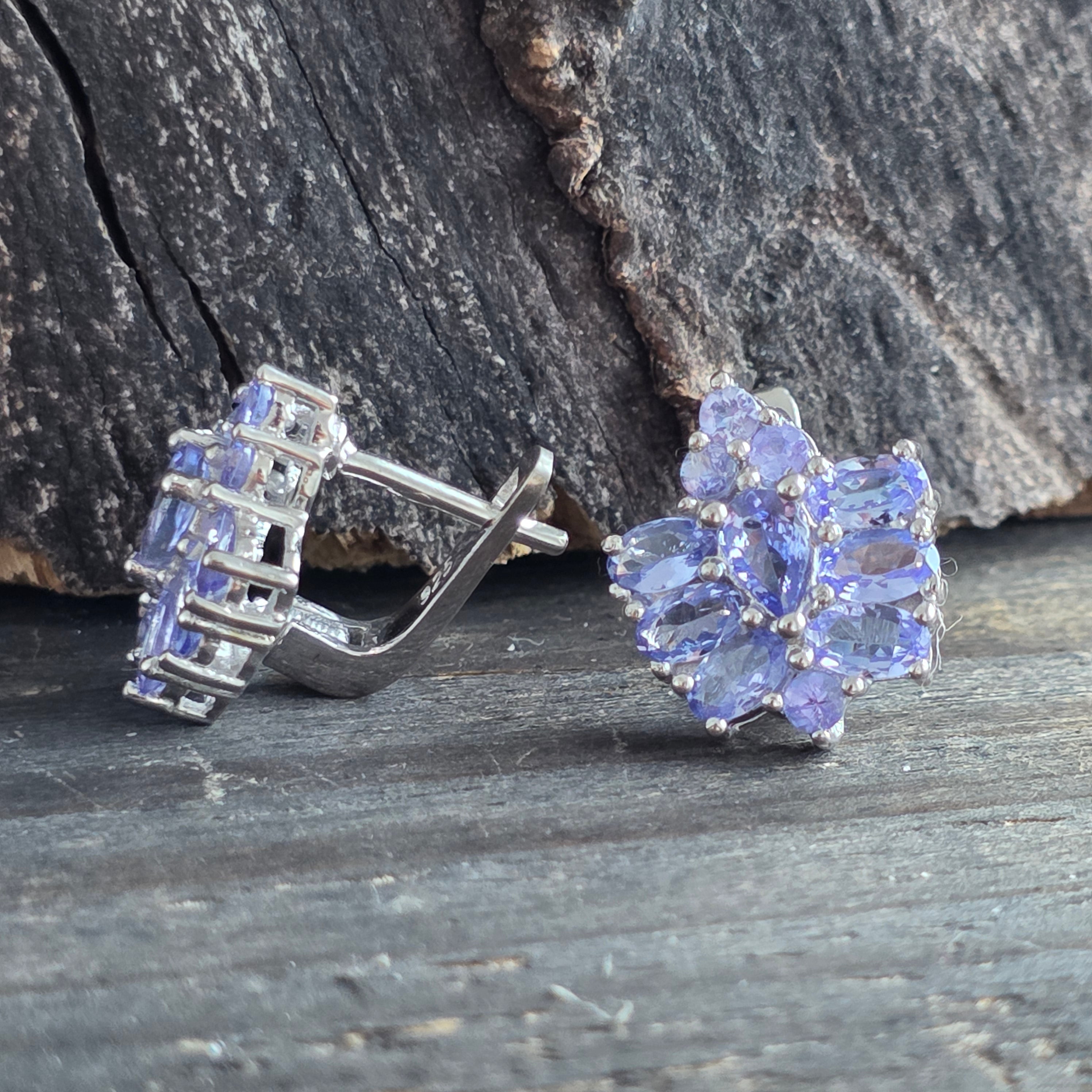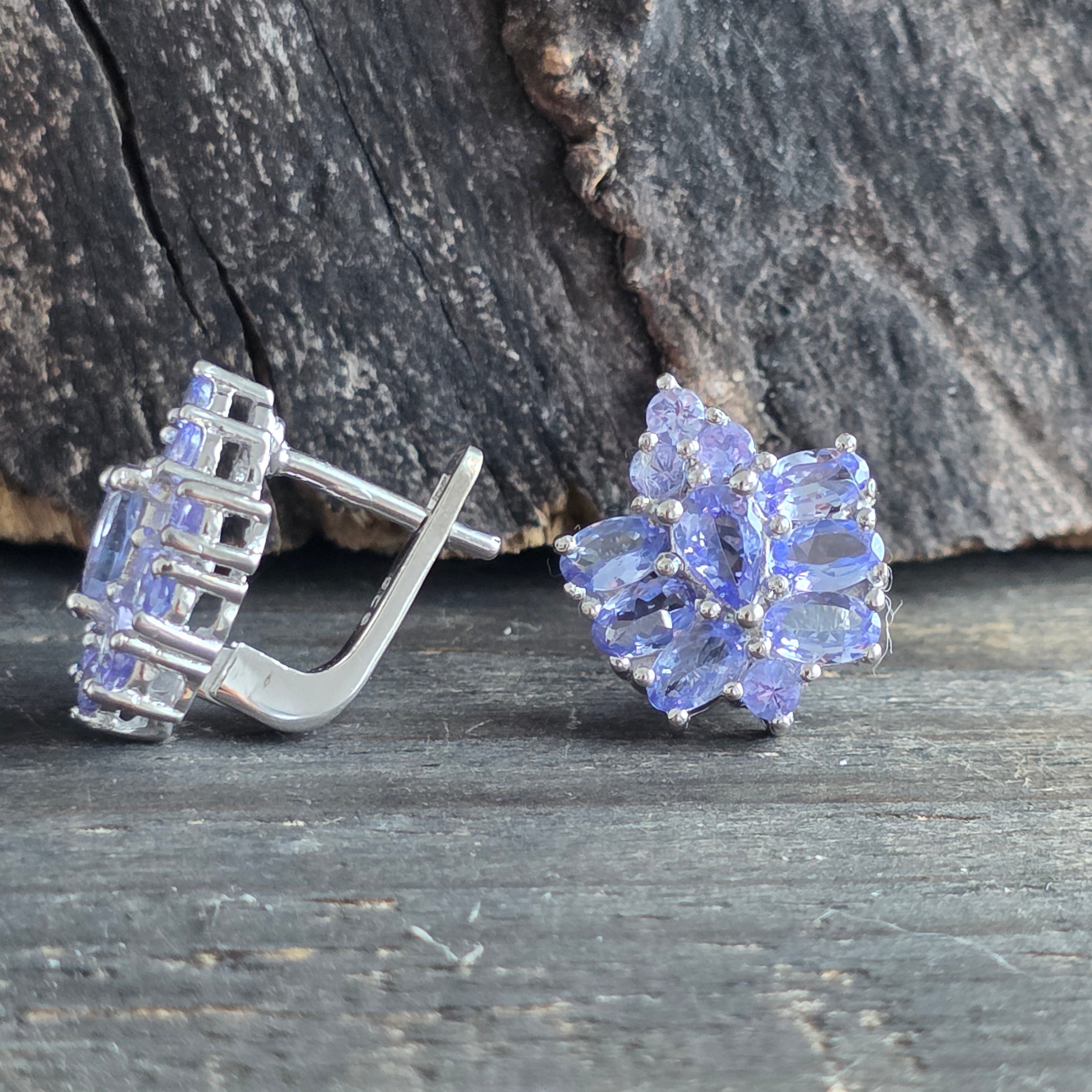 Tanzanickie srebrne kolczyki | Kwiat 2