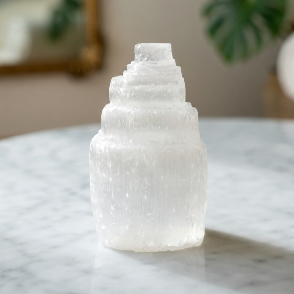 Selenit jest często używany jako kryształ pomocniczy w praktykach duchowych, pomagając otworzyć i aktywować szóstą i siódmą czakrę, które są związane z intuicją, jasnowidzeniem i połączeniem duchowym.