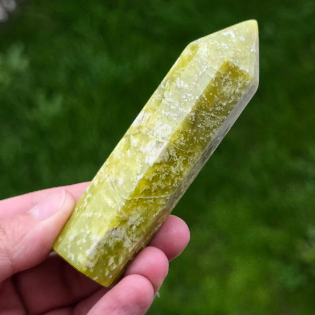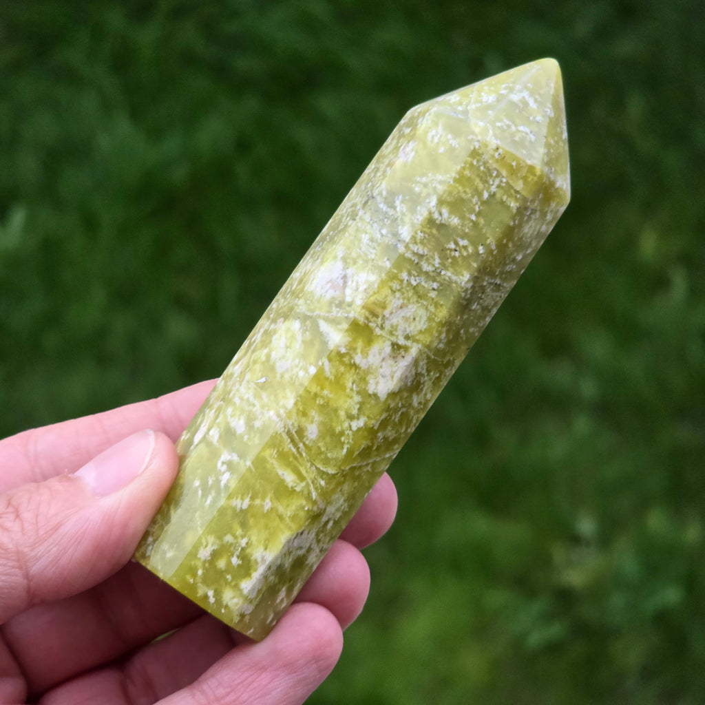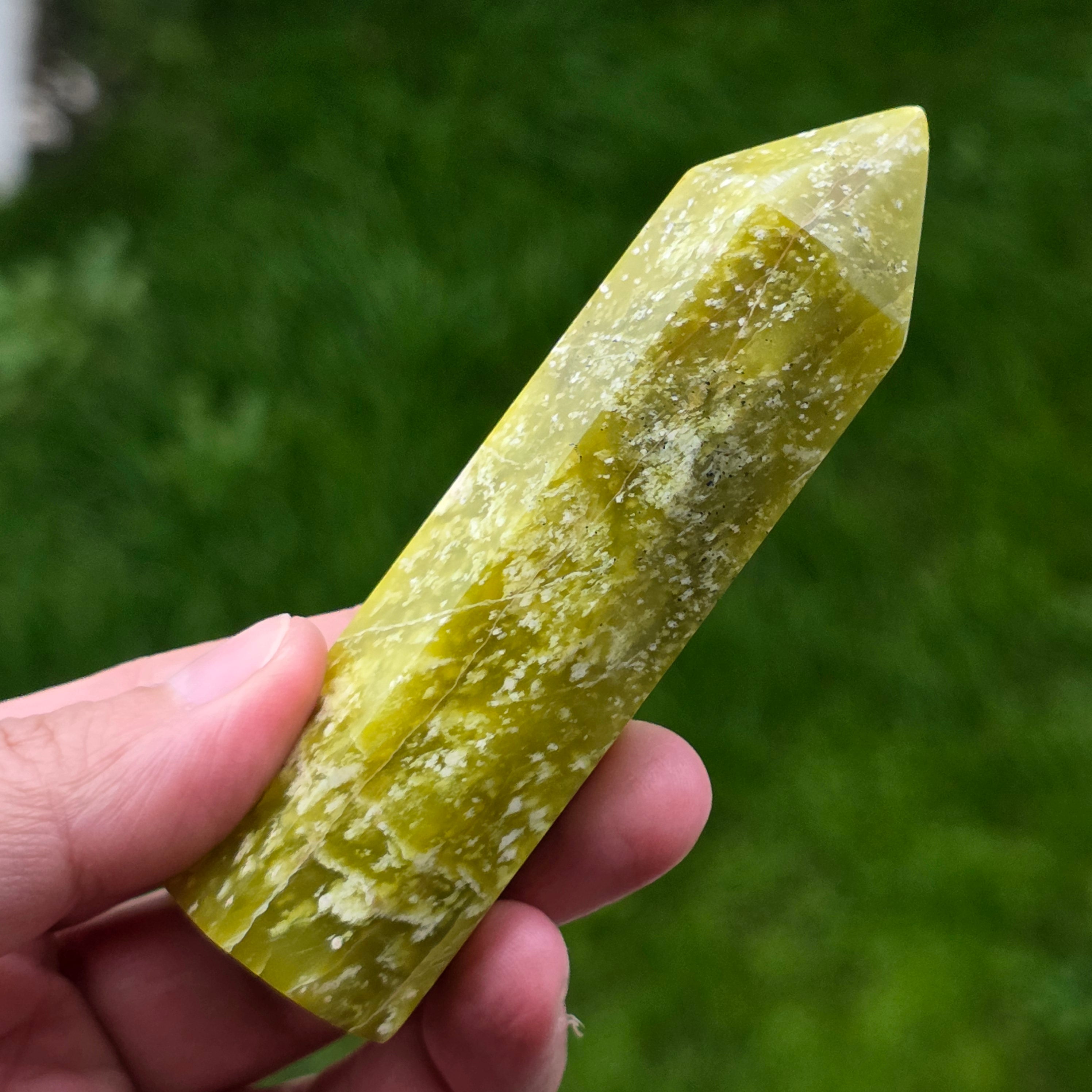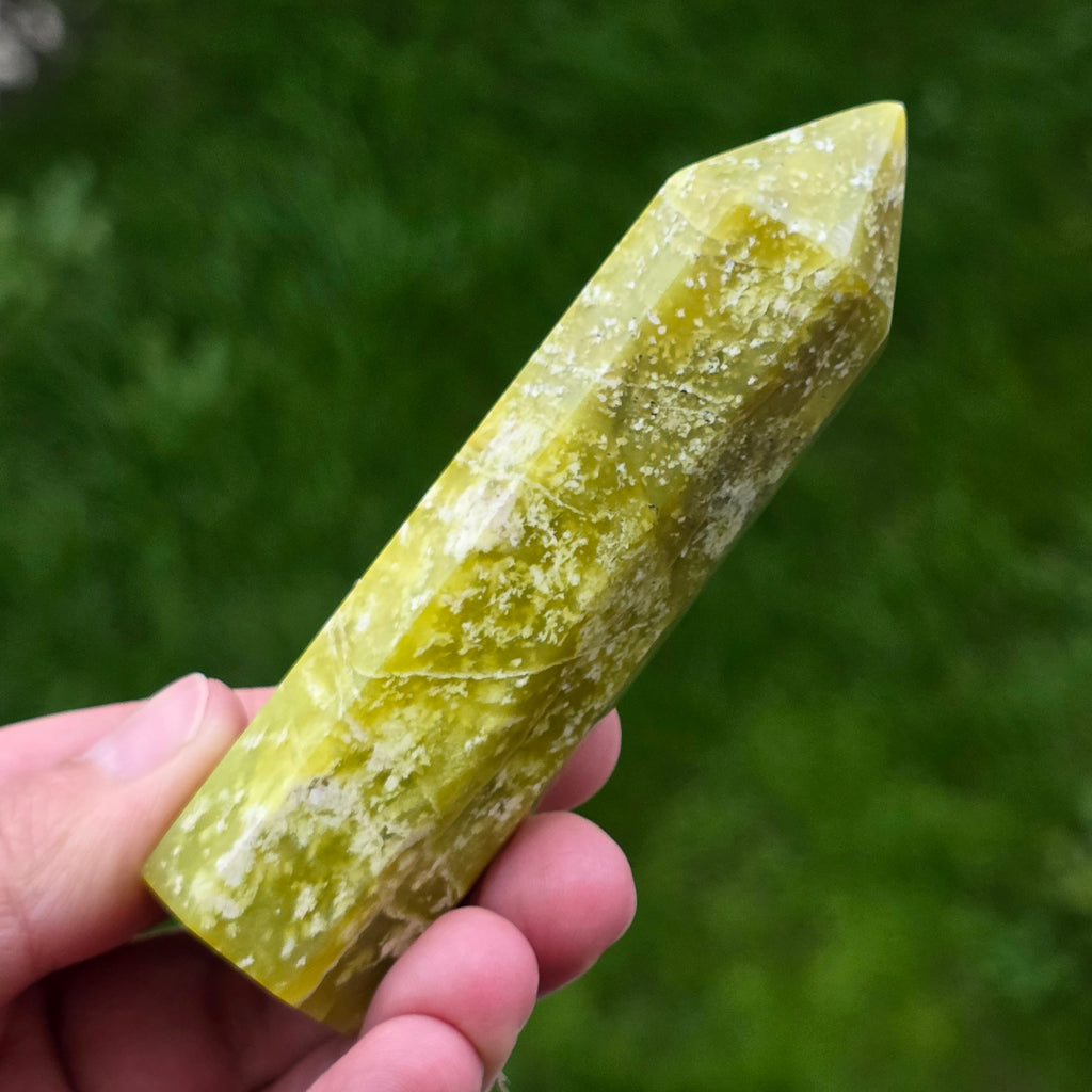Tower/Obelisc serpentyn żółty model 9, rozmiar 8.3 * 2,4 * 2,4 cm