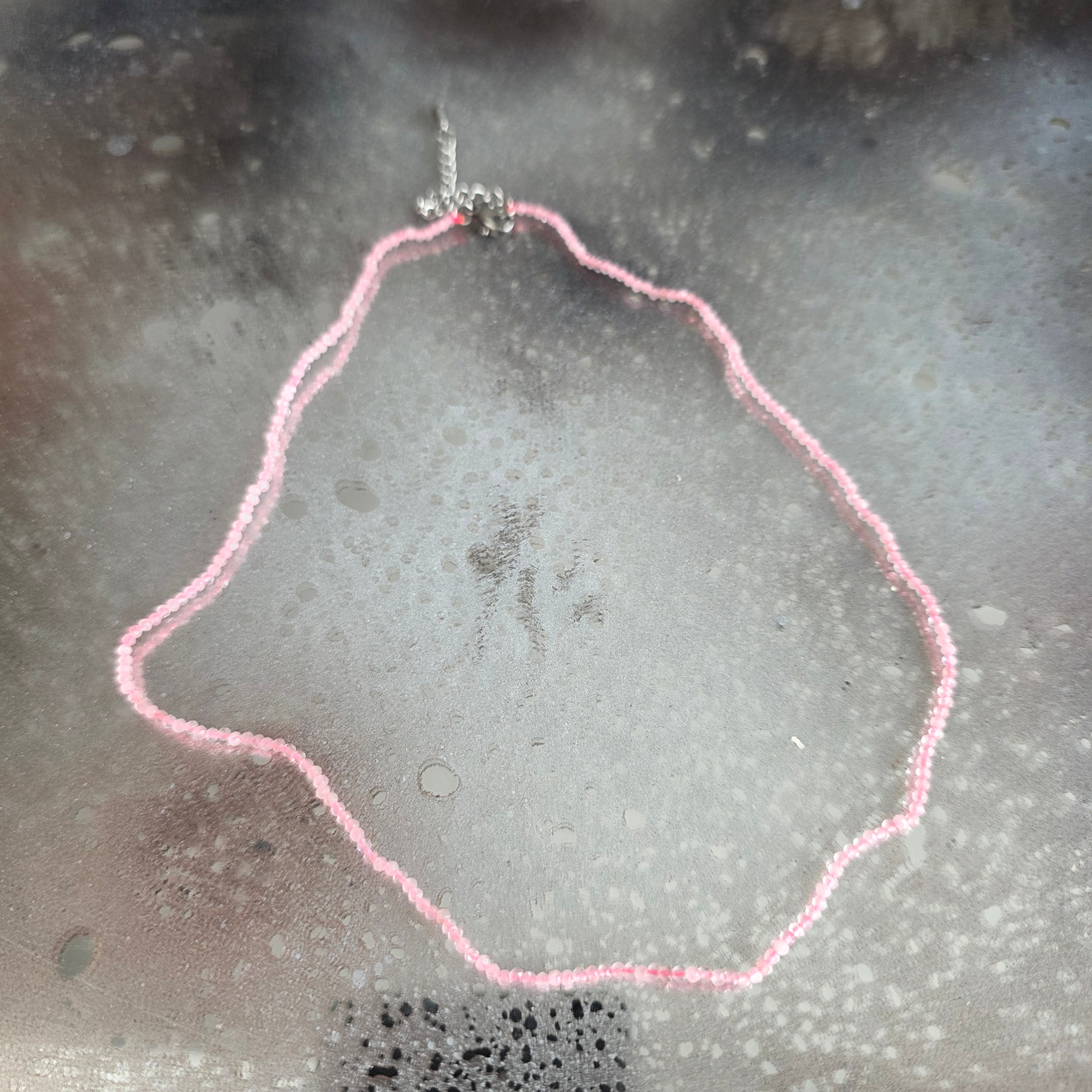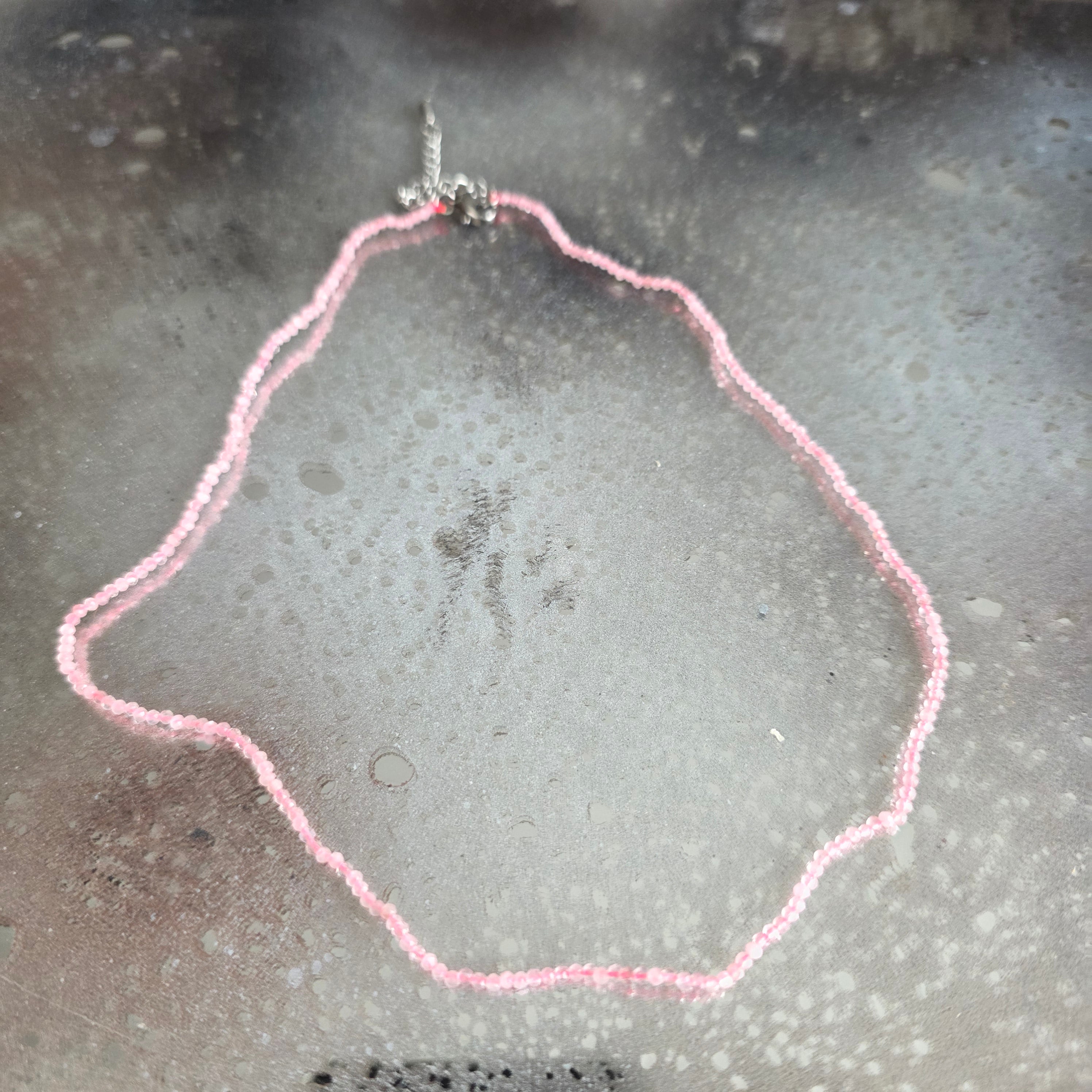 Naszyjnik z różowego kwarcu, kulki 2 mm, rozmiar: 38 + 5 cm (łańcuszek przedłużający)