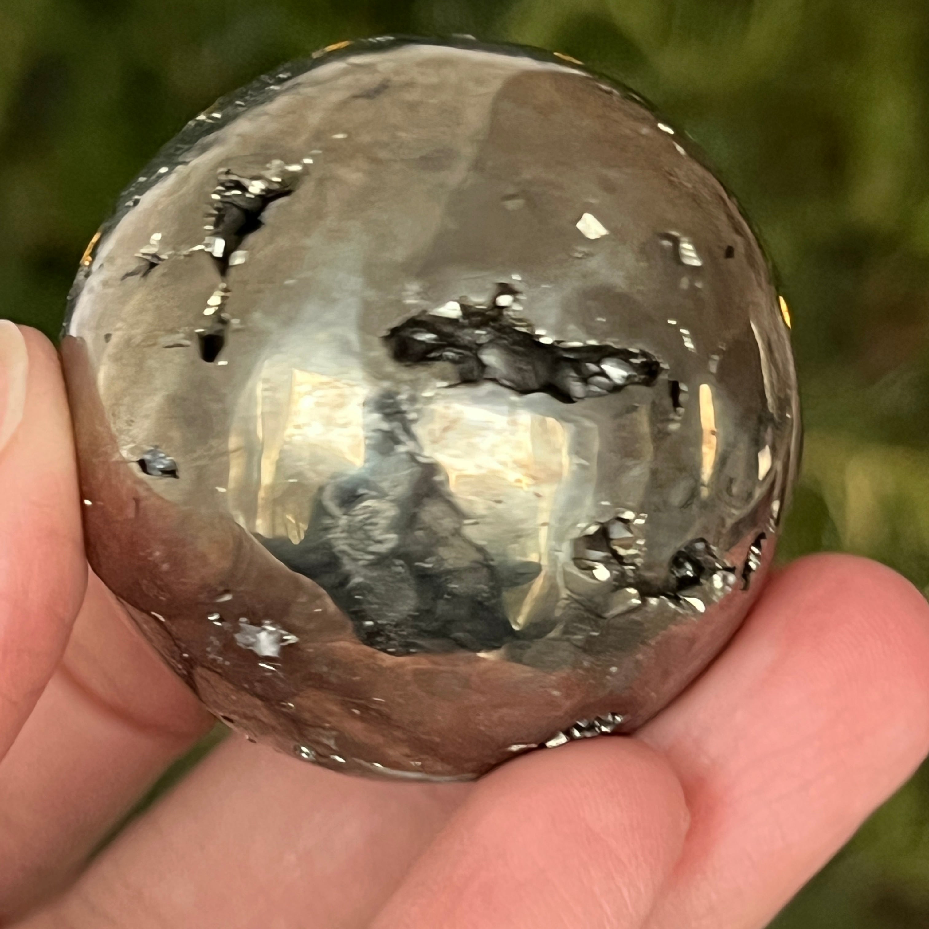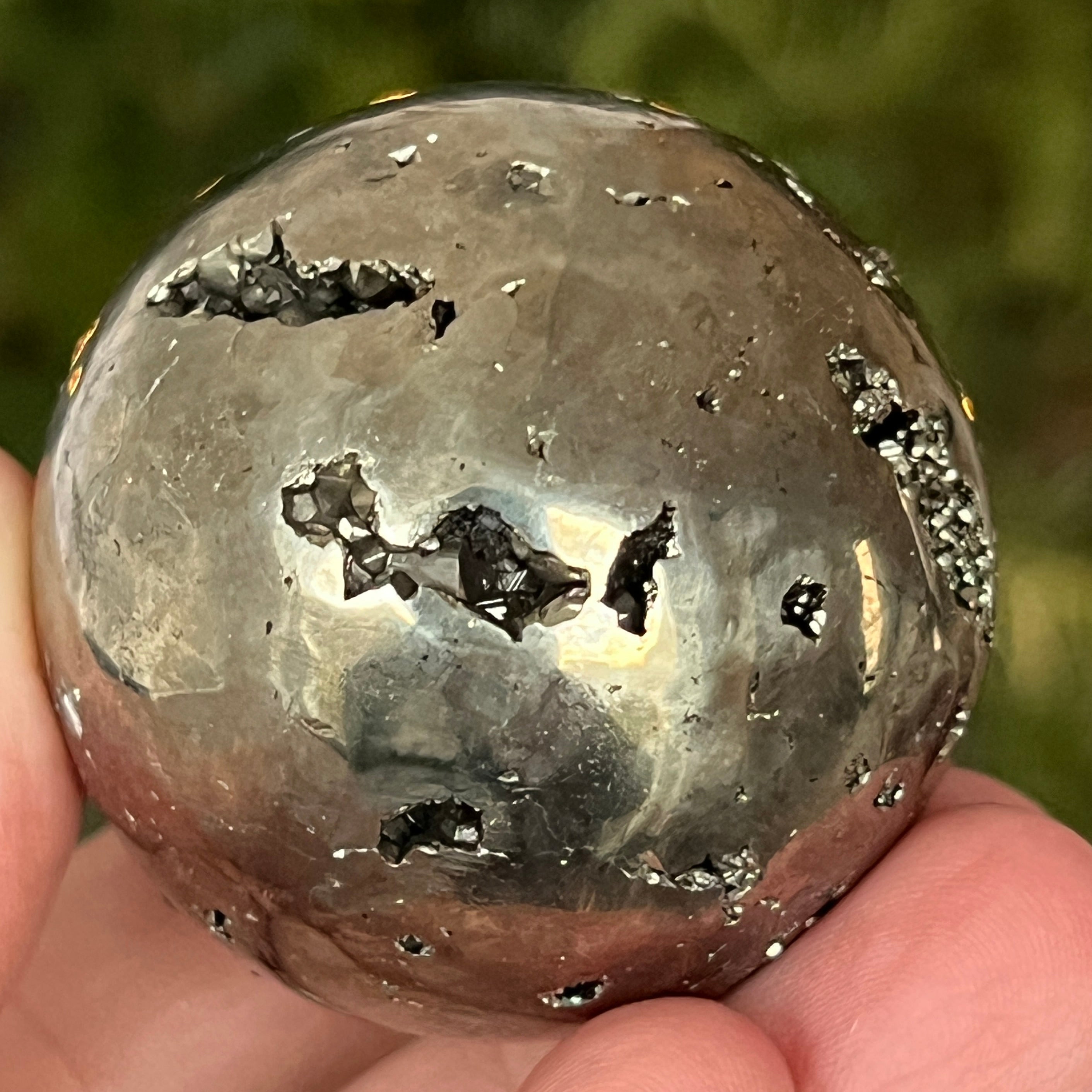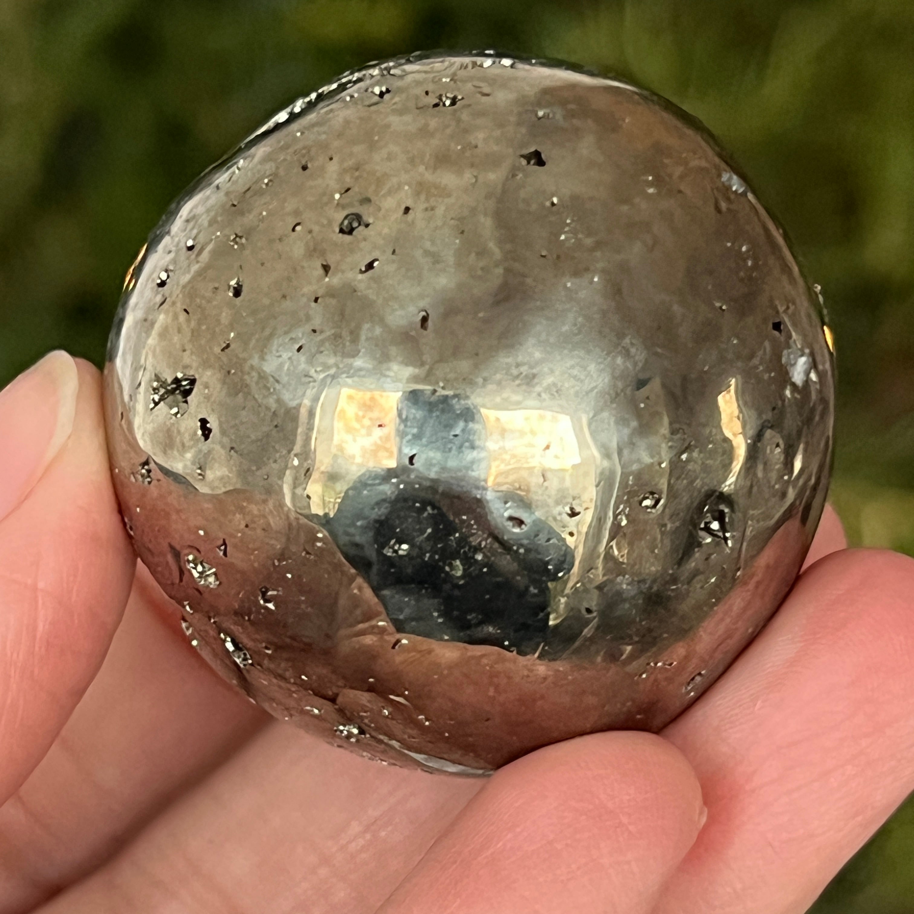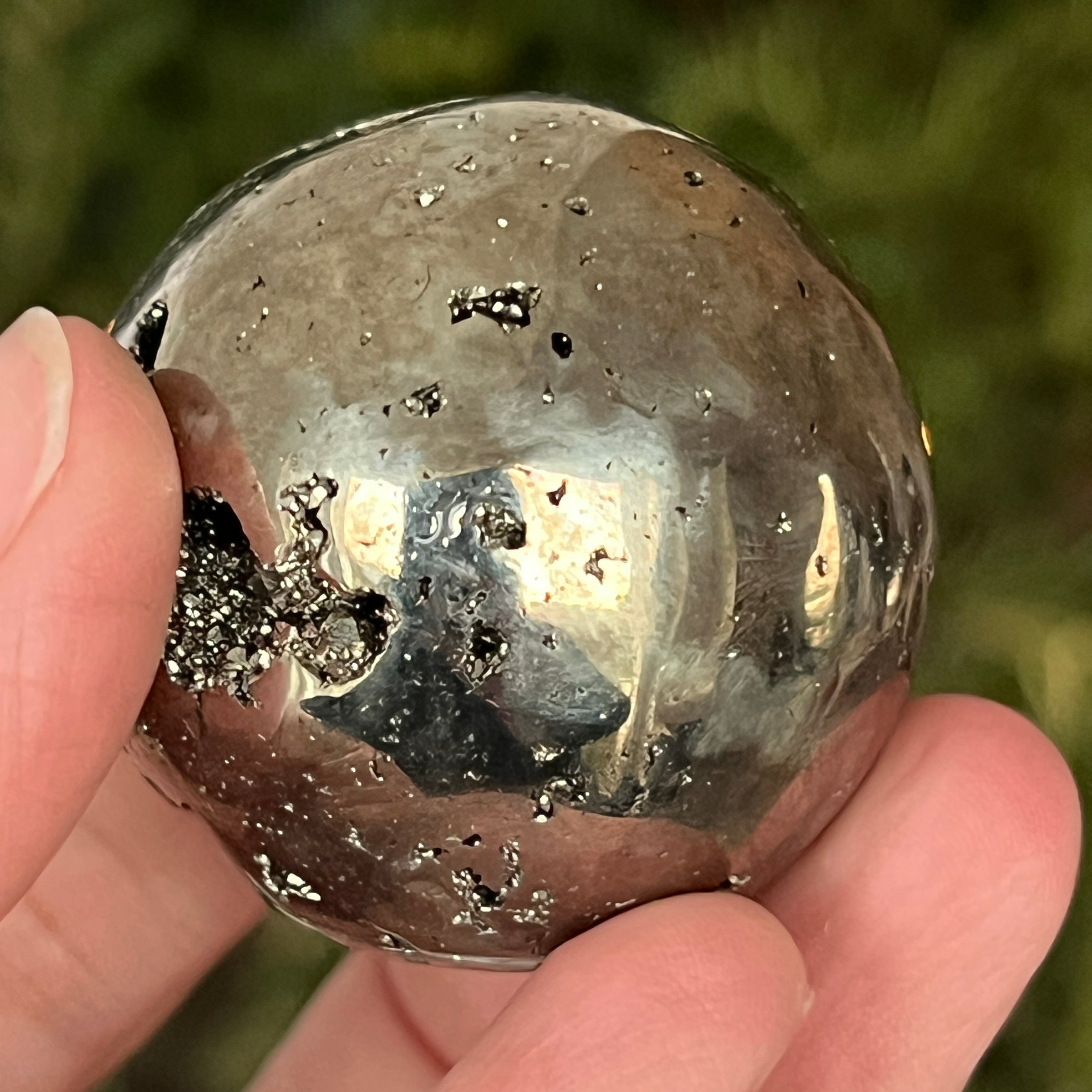 Peruwiańska pirytowa kula emanuje mocą, obfitością i klarownością umysłu. Każdy złoty refleks przypomina o świetle świadomości i wewnętrznej sile, która przekształca intencje w rzeczywistość. Spektakularny egzemplarz, odpowiedni zarówno dla kolekcjonerów, jak i jako dekoracyjny przedmiot z wibrującą energią.