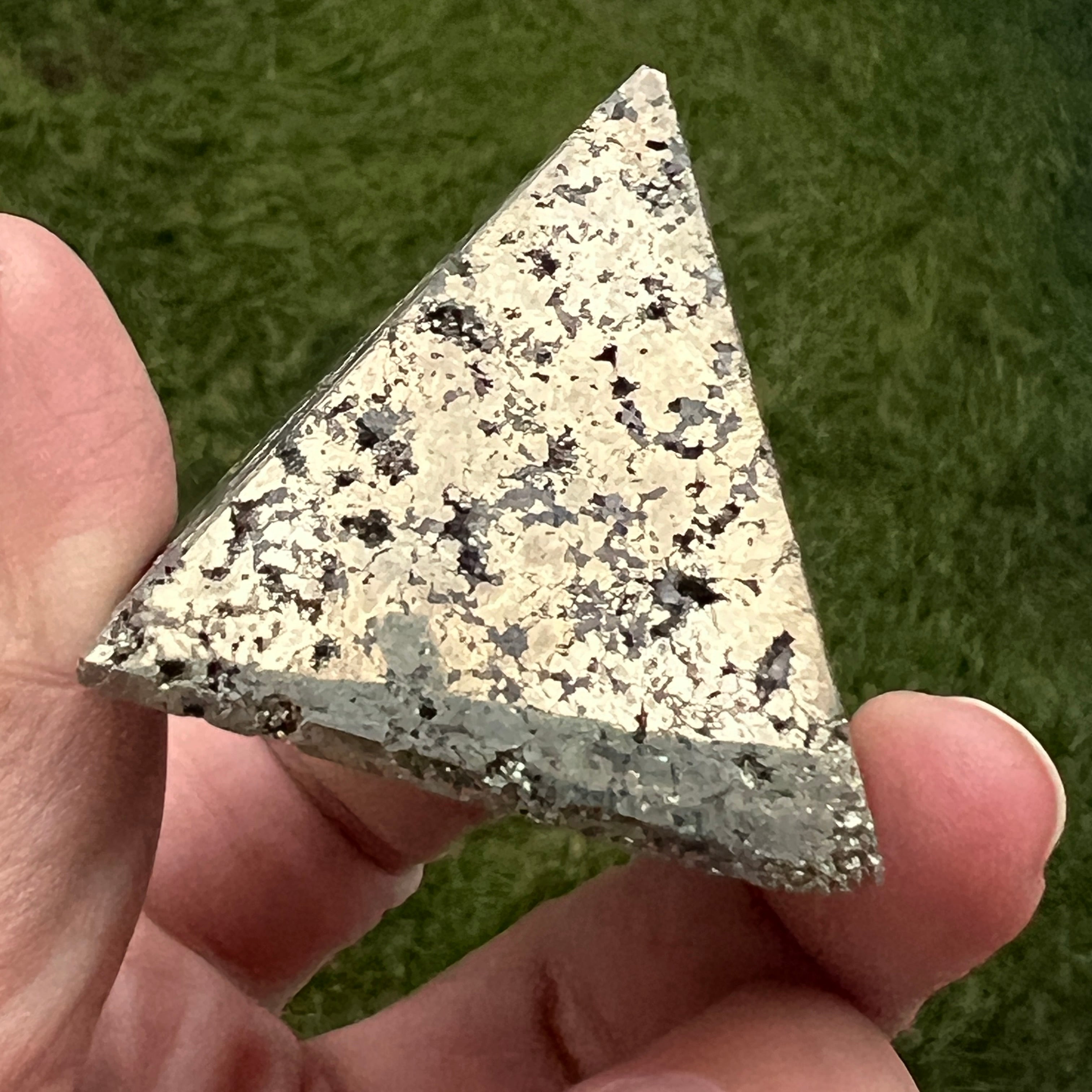 • Kolor: intensywne metaliczne złoto, z naturalnym połyskiem charakterystycznym dla peruwiańskich pirytów