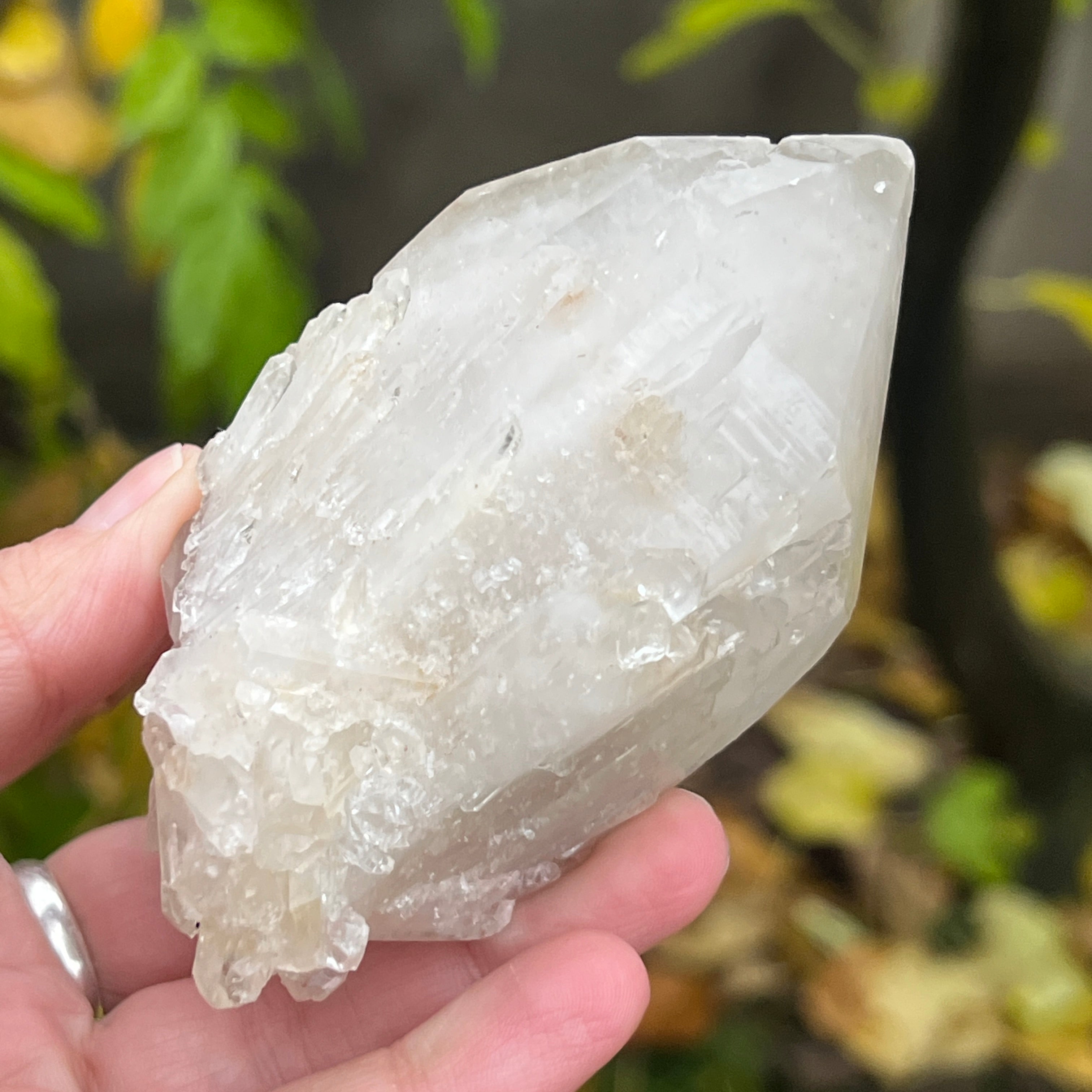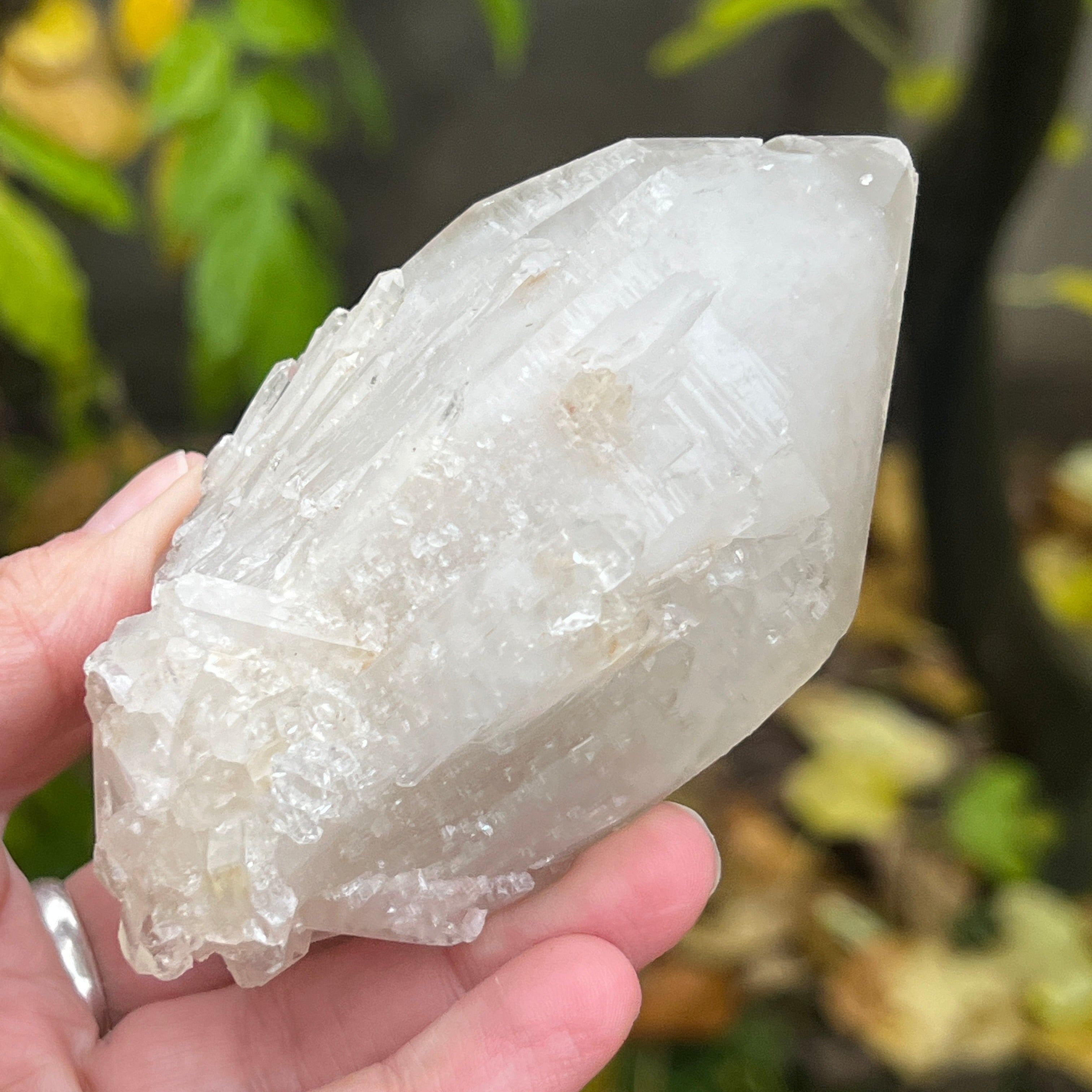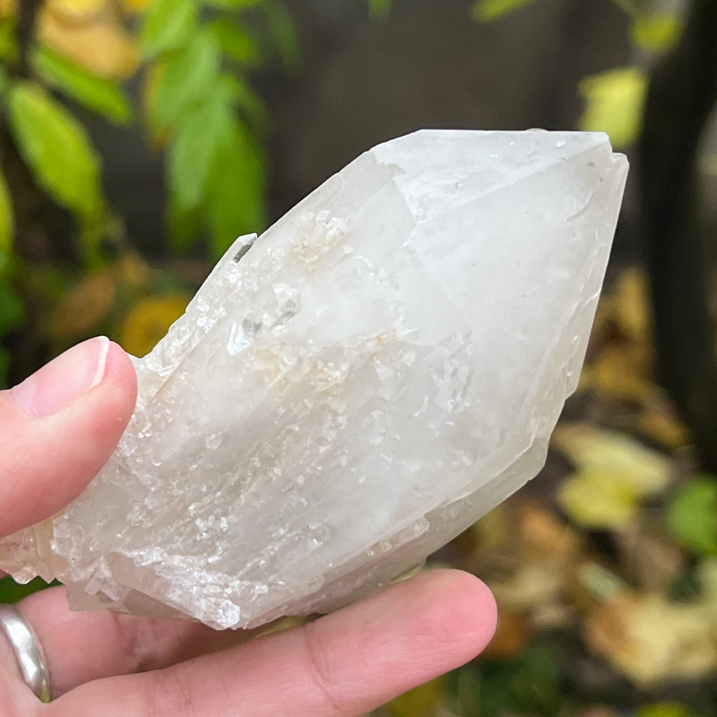 Un vârf care pare sculptat de lumină însăși. Cuartul celest, cunoscut și ca cuart lumânare, îmbină forța unui cristal de cuarț cu blândețea și strălucirea unei flăcări interioare. Forma sa unică, asemănătoare unui ananas cristalin, emană o energie de purificare profundă și de conectare cu planurile superioare ale conștiinței.