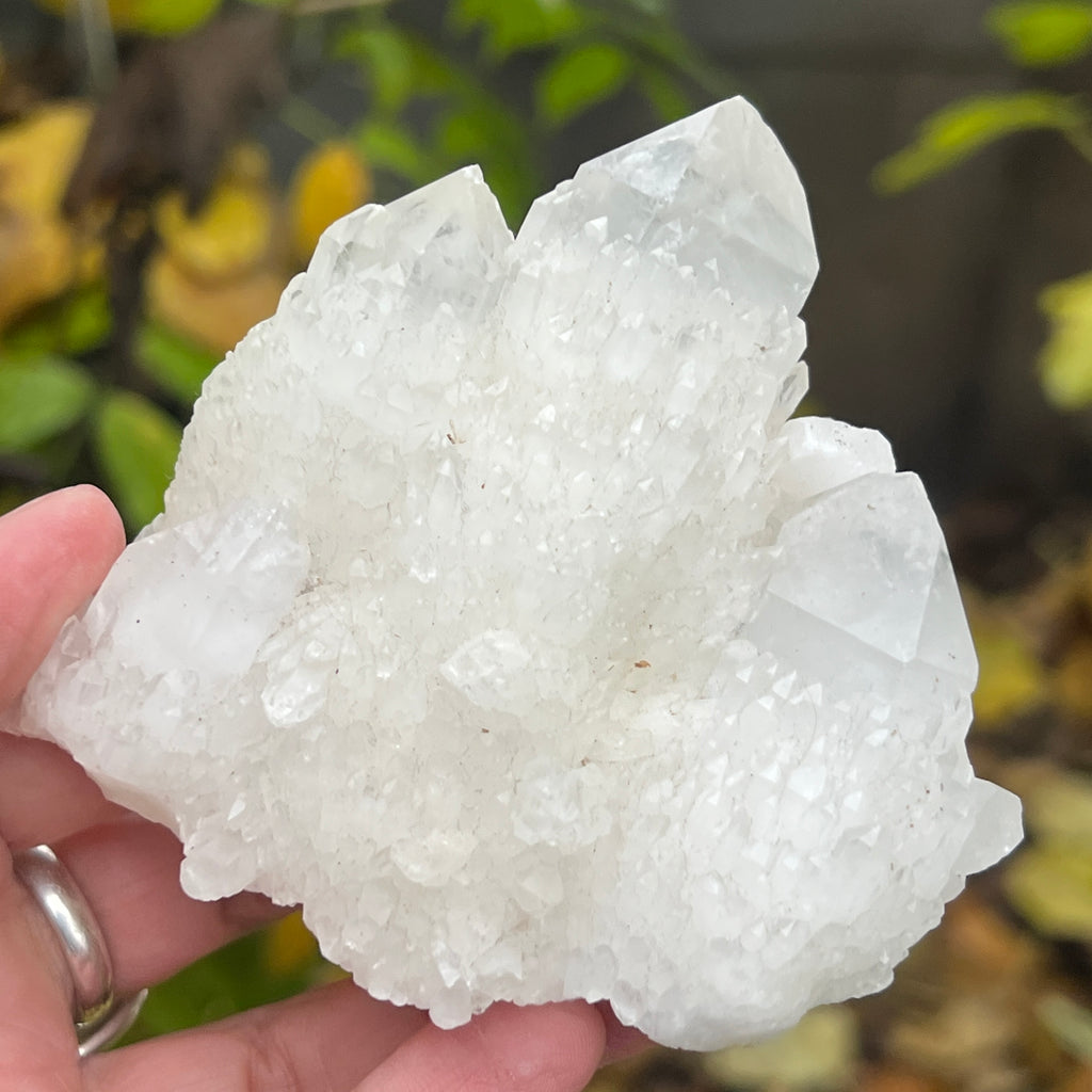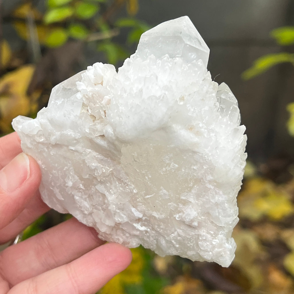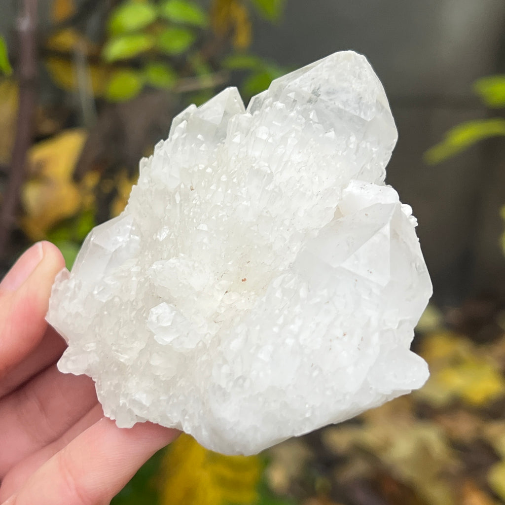 Un vârf care pare sculptat de lumină însăși. Cuartul celest, cunoscut și ca cuart lumânare, îmbină forța unui cristal de cuarț cu blândețea și strălucirea unei flăcări interioare. Forma sa unică, asemănătoare unui ananas cristalin, emană o energie de purificare profundă și de conectare cu planurile superioare ale conștiinței.