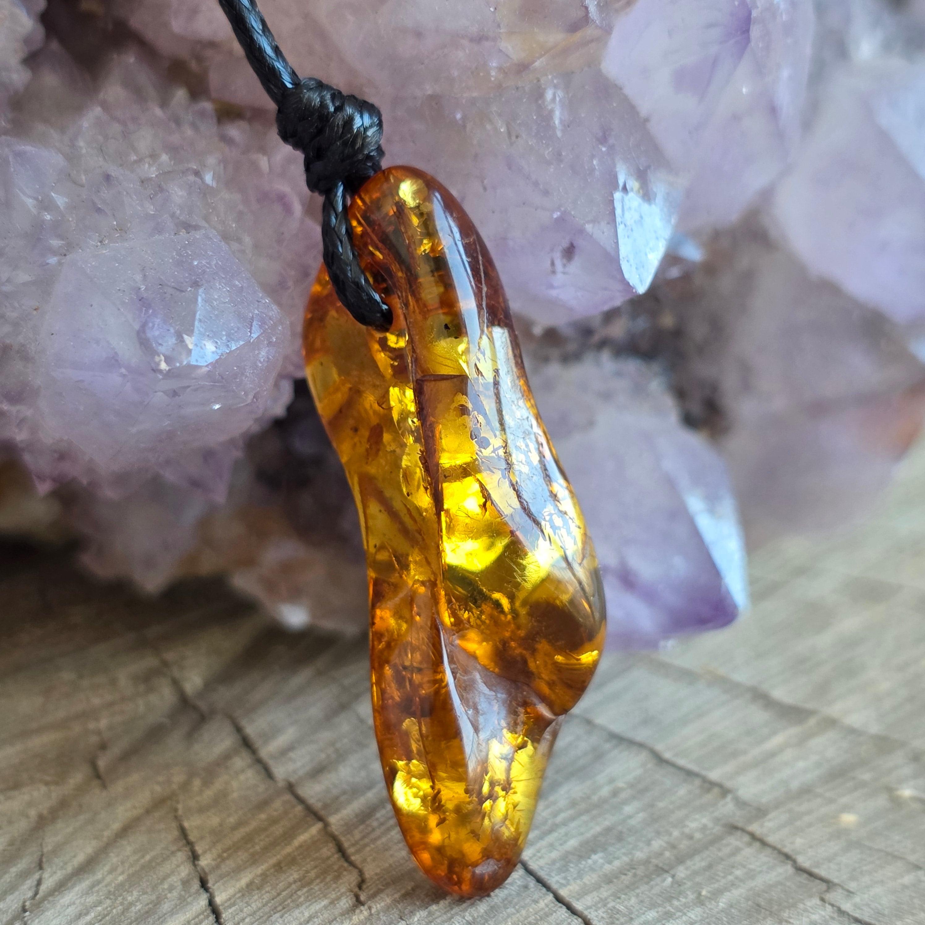 Noś ten wisiorek z naturalnego bursztynu jak promień słońca uwięziony w biżuterii — żywa pamiątka światła, które nigdy nie gaśnie, niezależnie od upływu czasu.