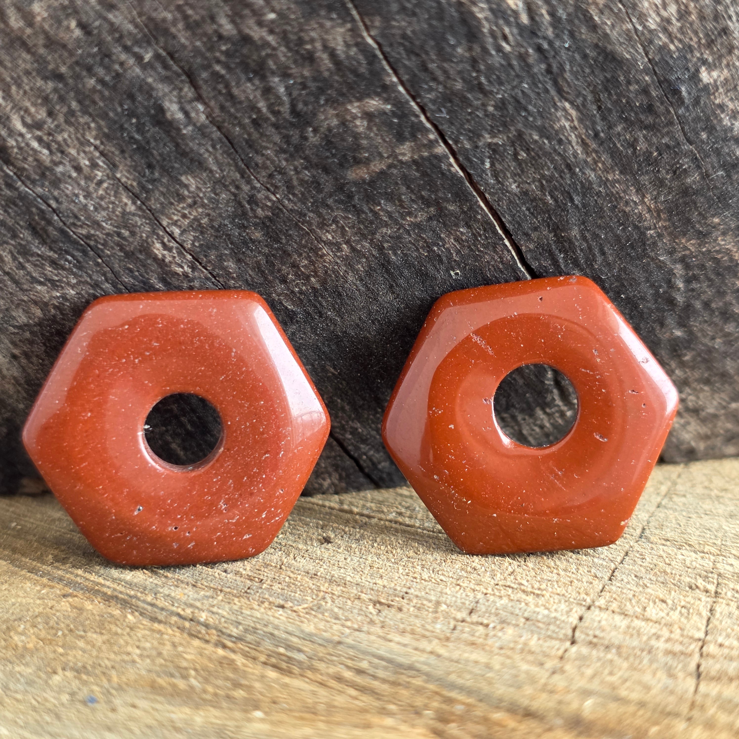 Wisiorek z kamieniem w kształcie sześciokąta z czerwonym jaspisem
