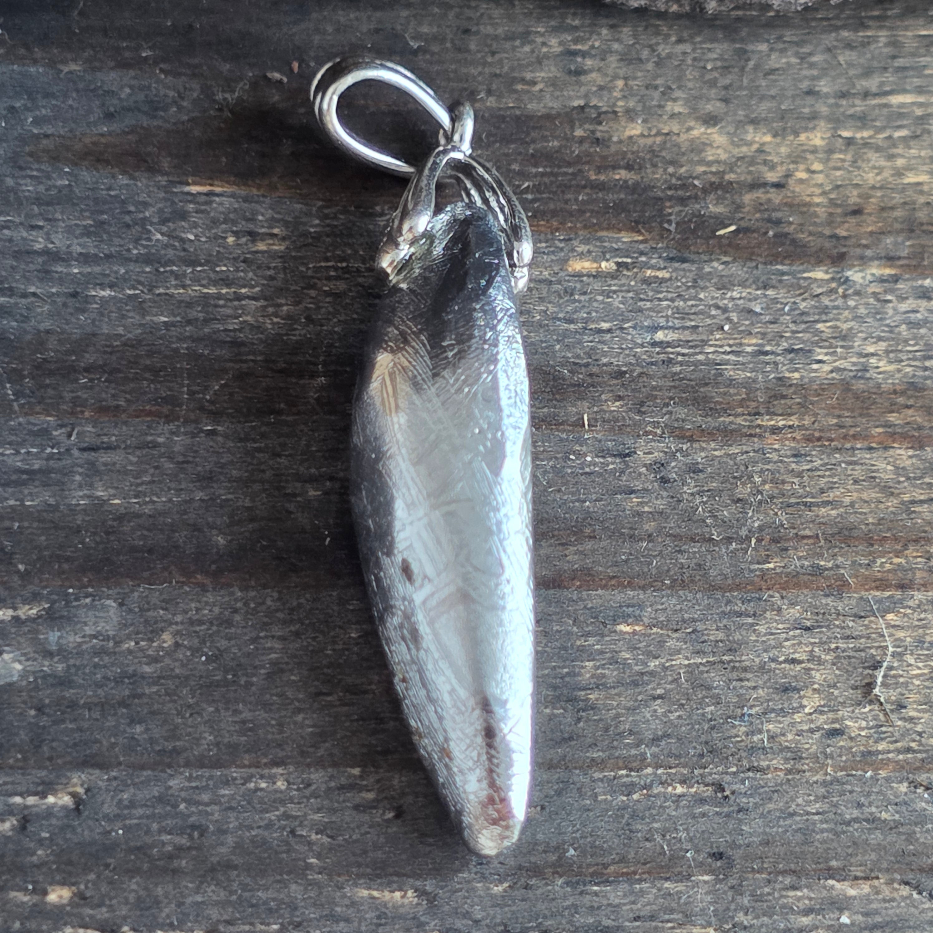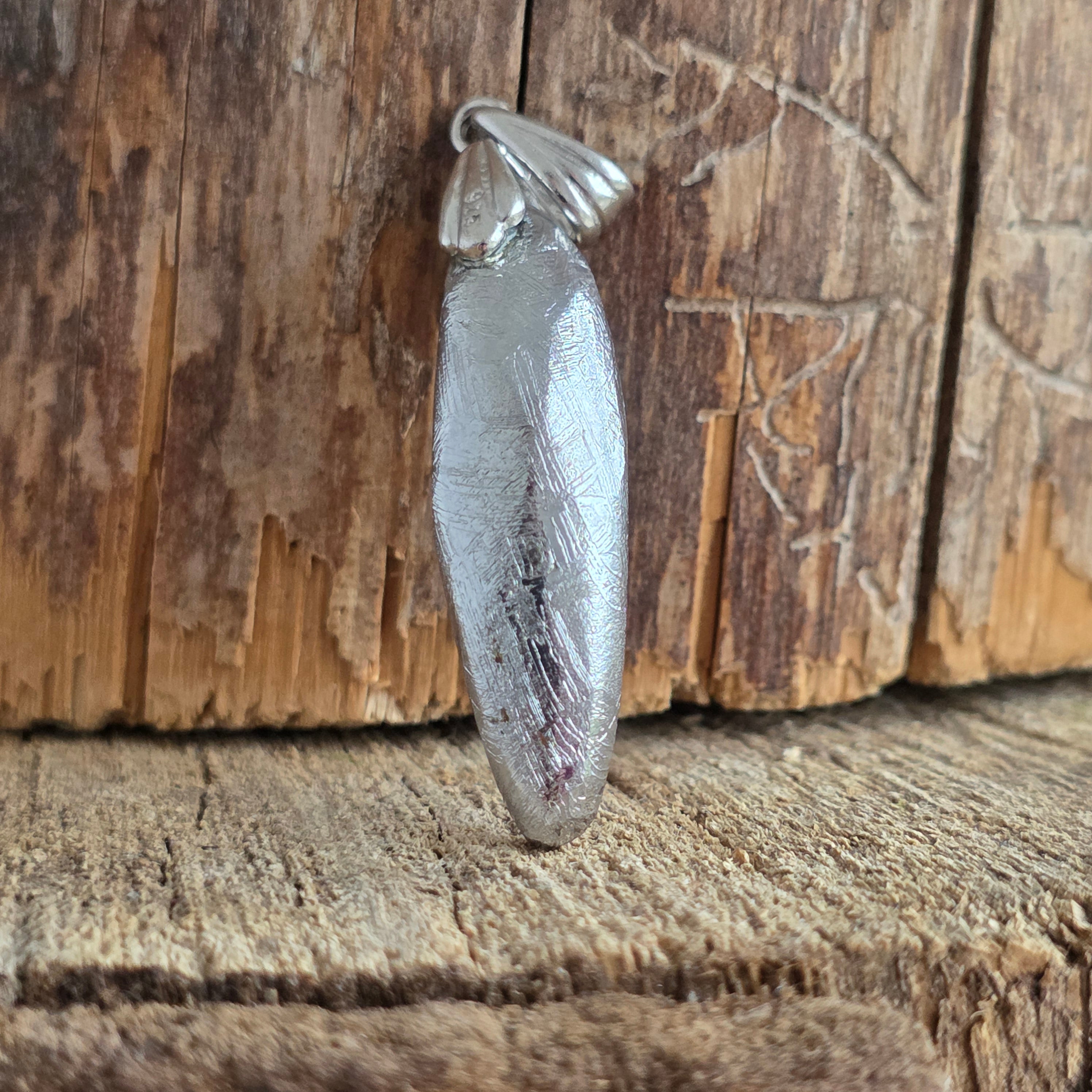 - Materiały: naturalny meteoryt Muonionalusta, oprawa ze srebra lub metalu