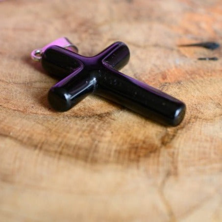 Wisiorek z krzyżem obsydianowym o wymiarach 4,5*2,7cm