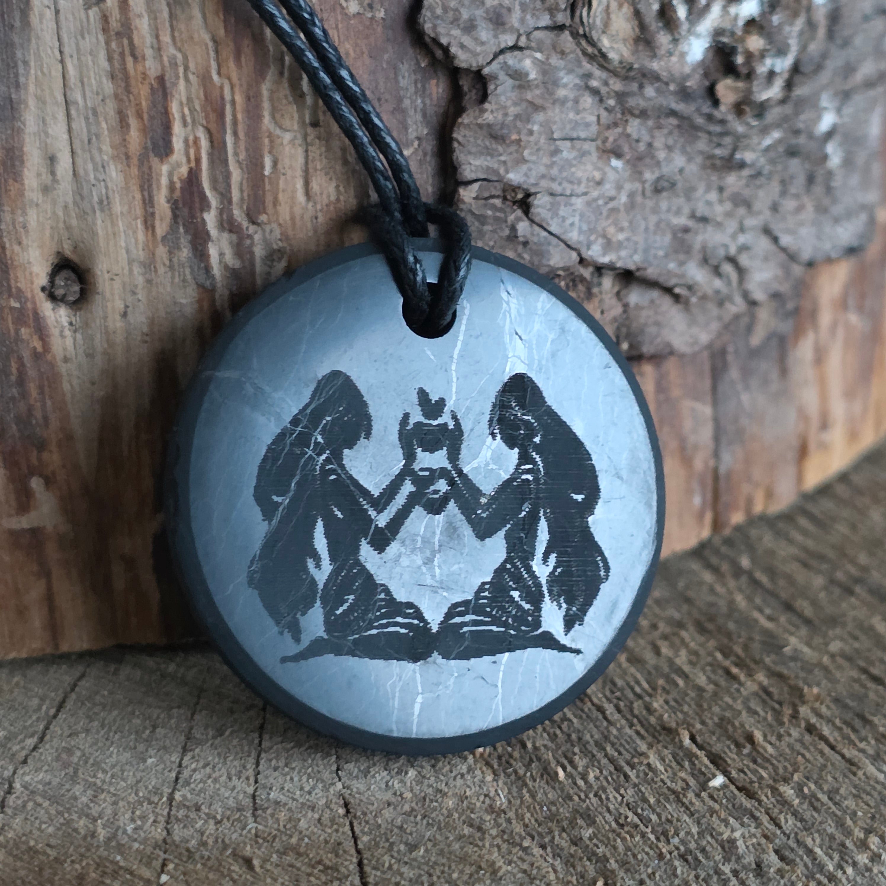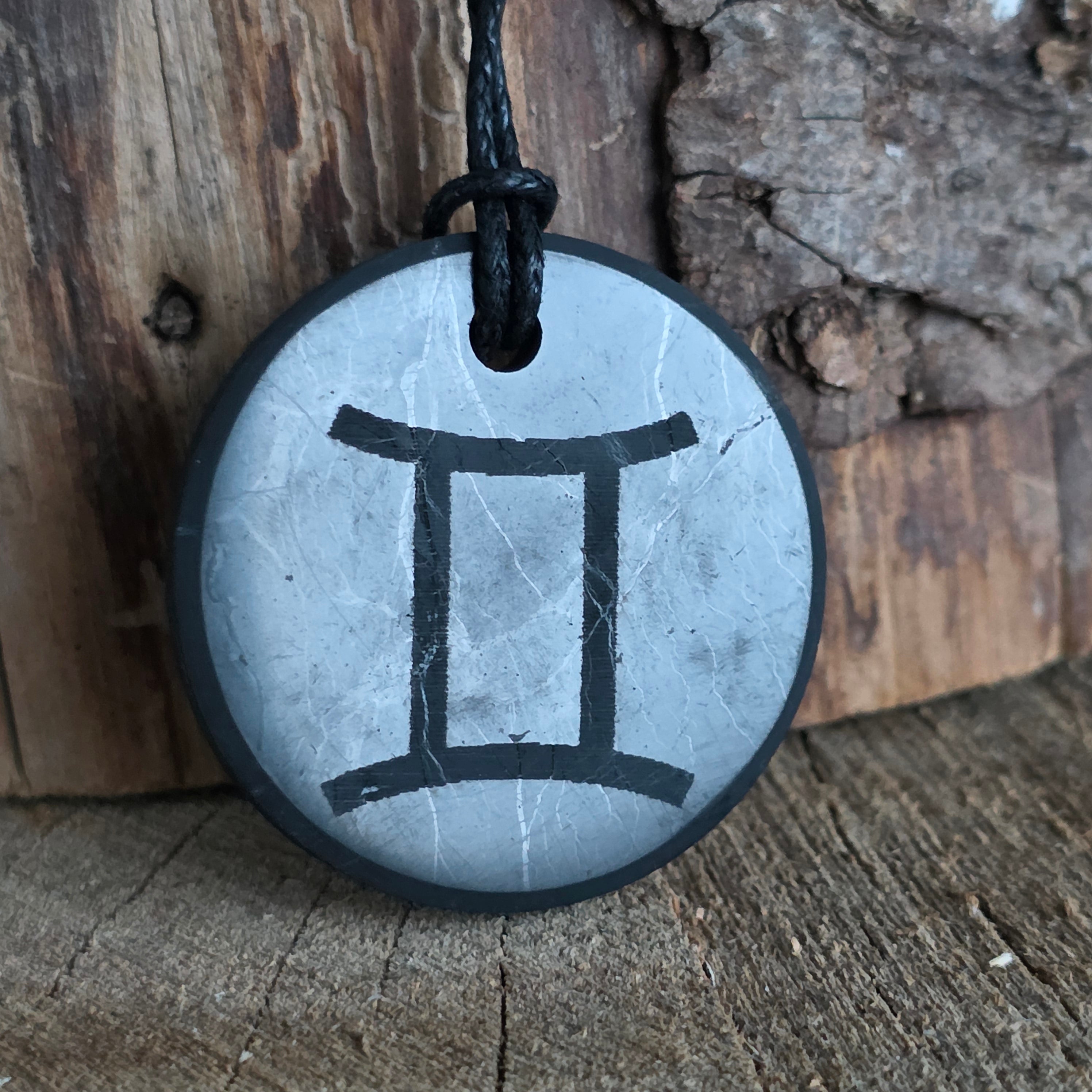 Opis - Wisiorek ze szungitu znak zodiaku Bliźnięta