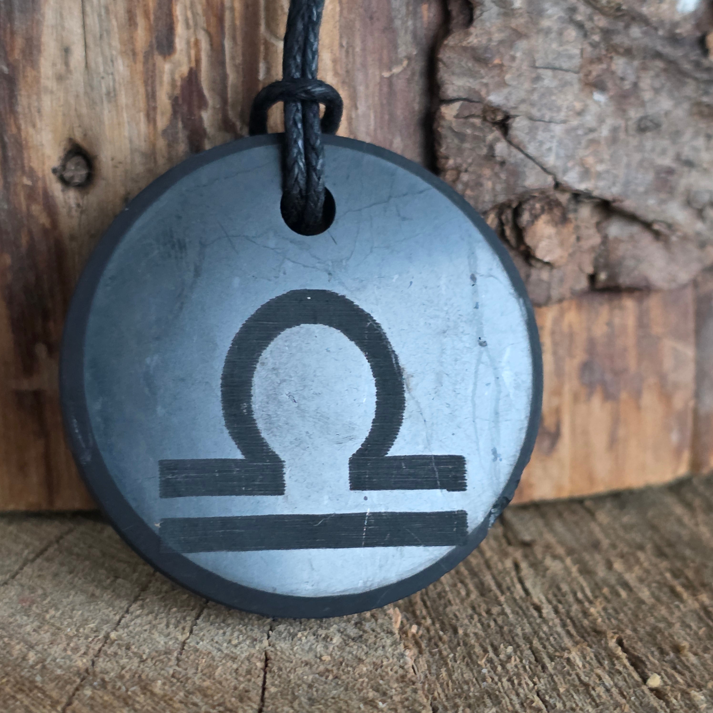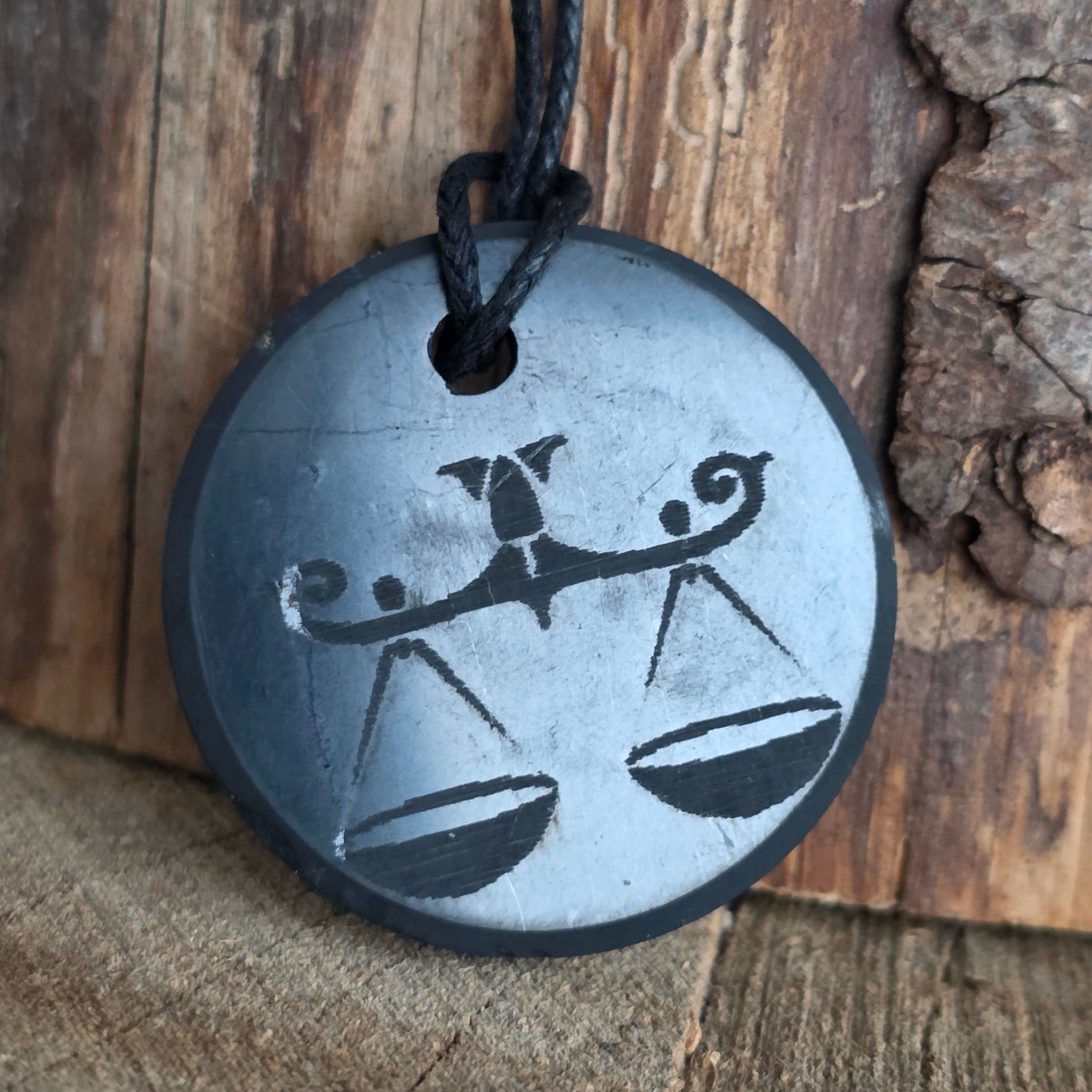 Opis - Wisiorek ze szungitu znak zodiaku Waga